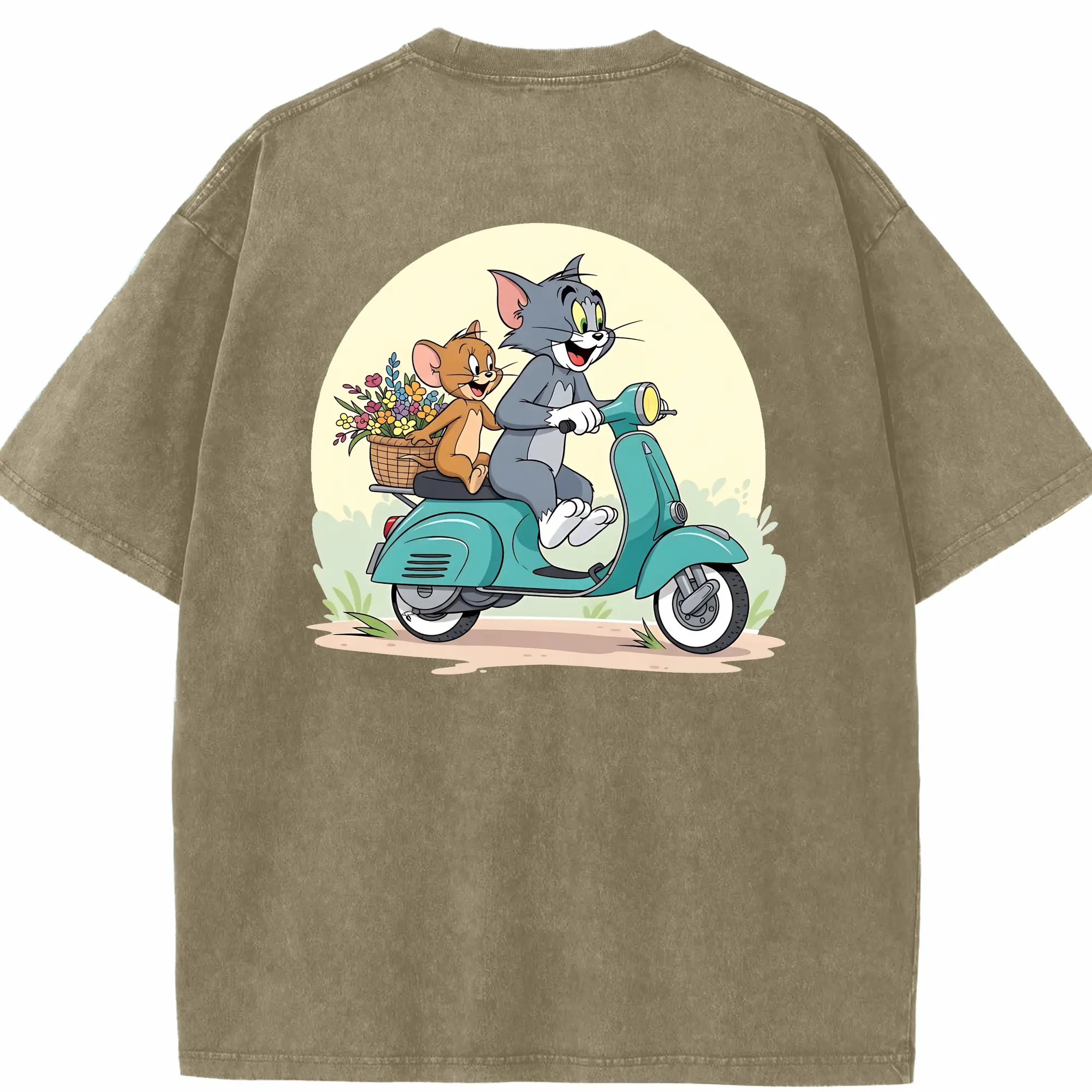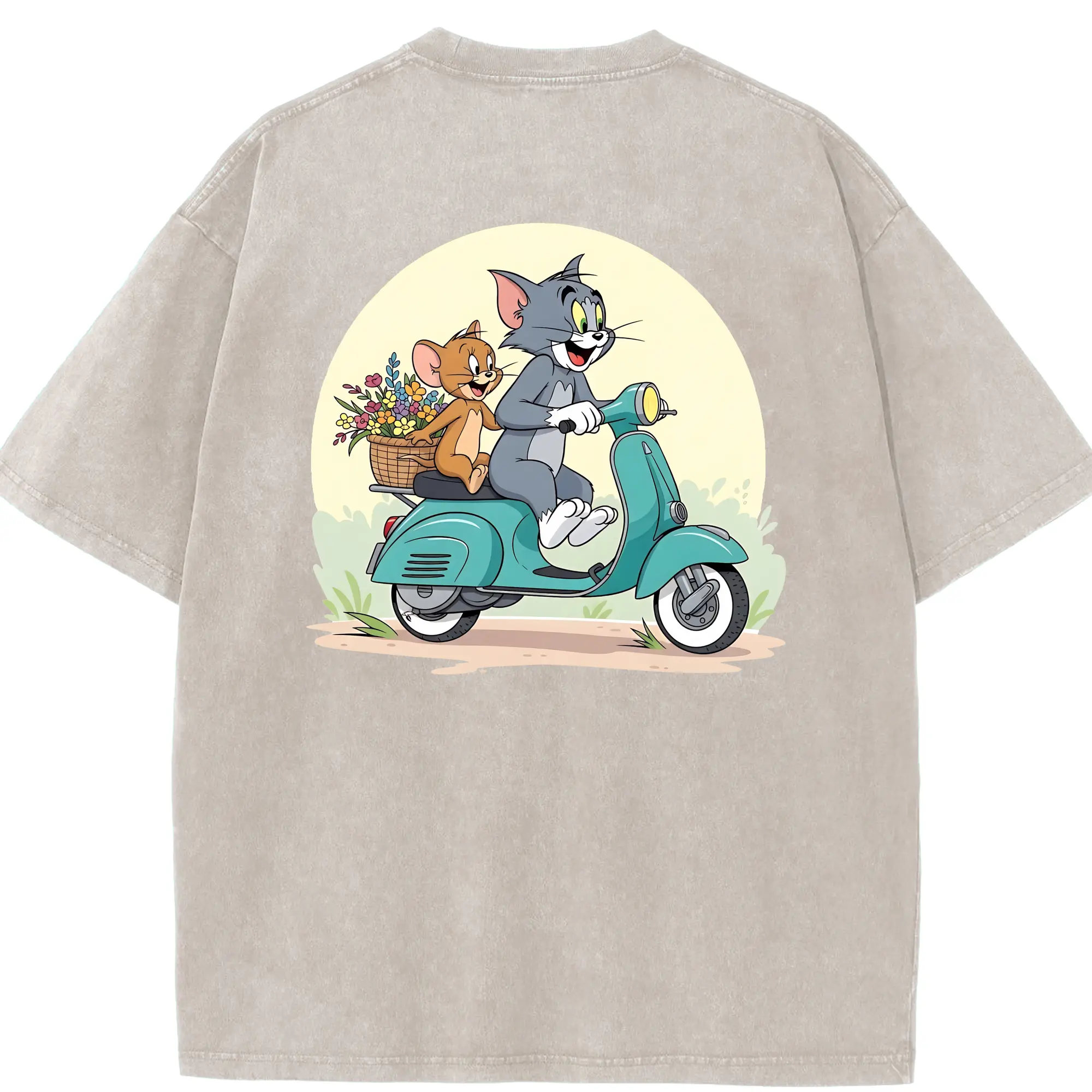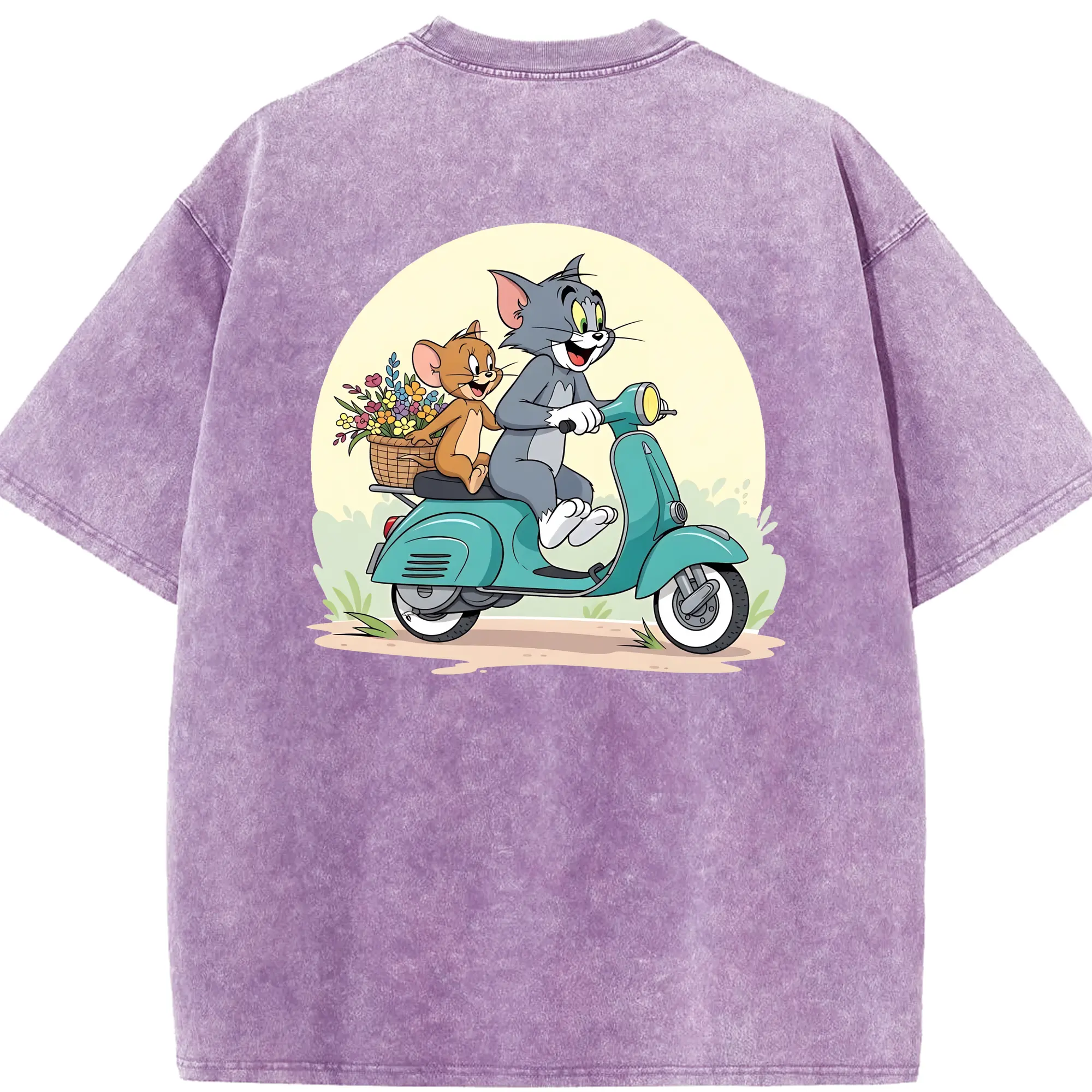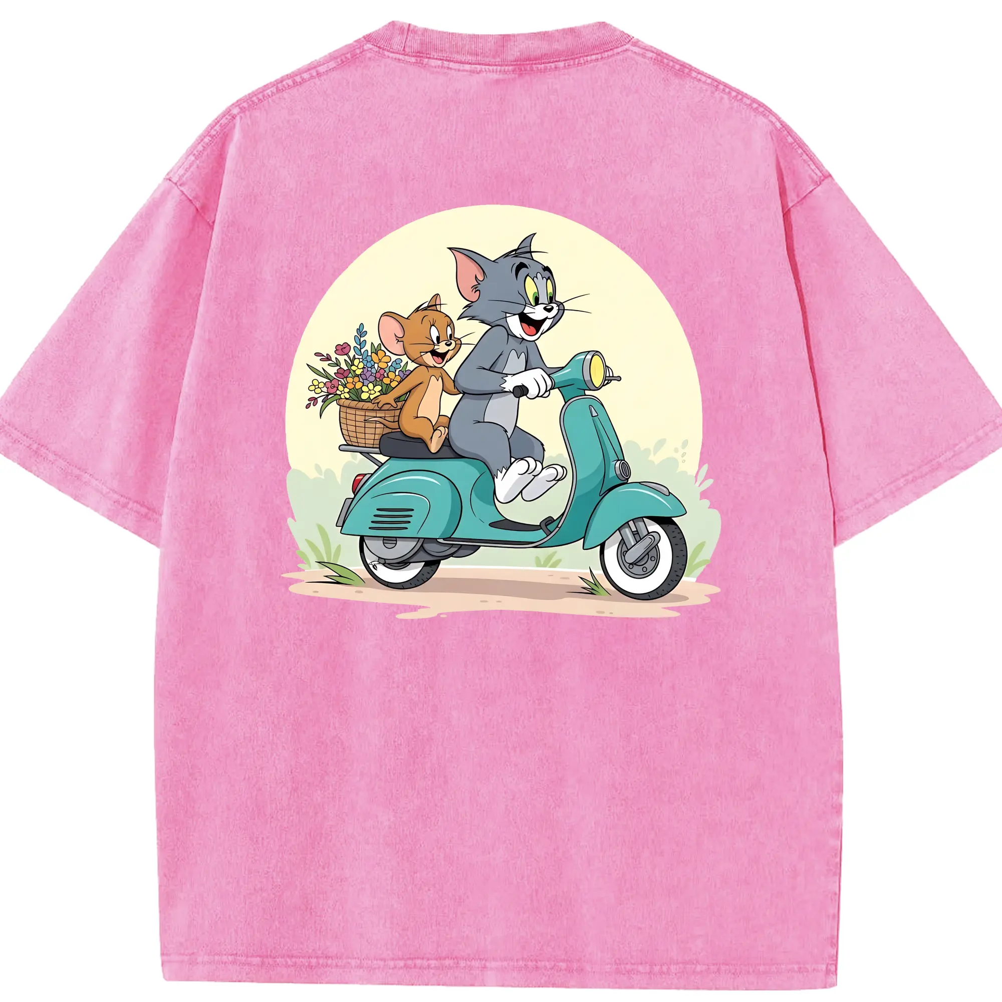 トムとジェリー グッズ トム - 綿100% 半袖Tシャツ ・ バックプリント ・ 快適 通気性 ・ 日常使い 散歩 スポーツ用