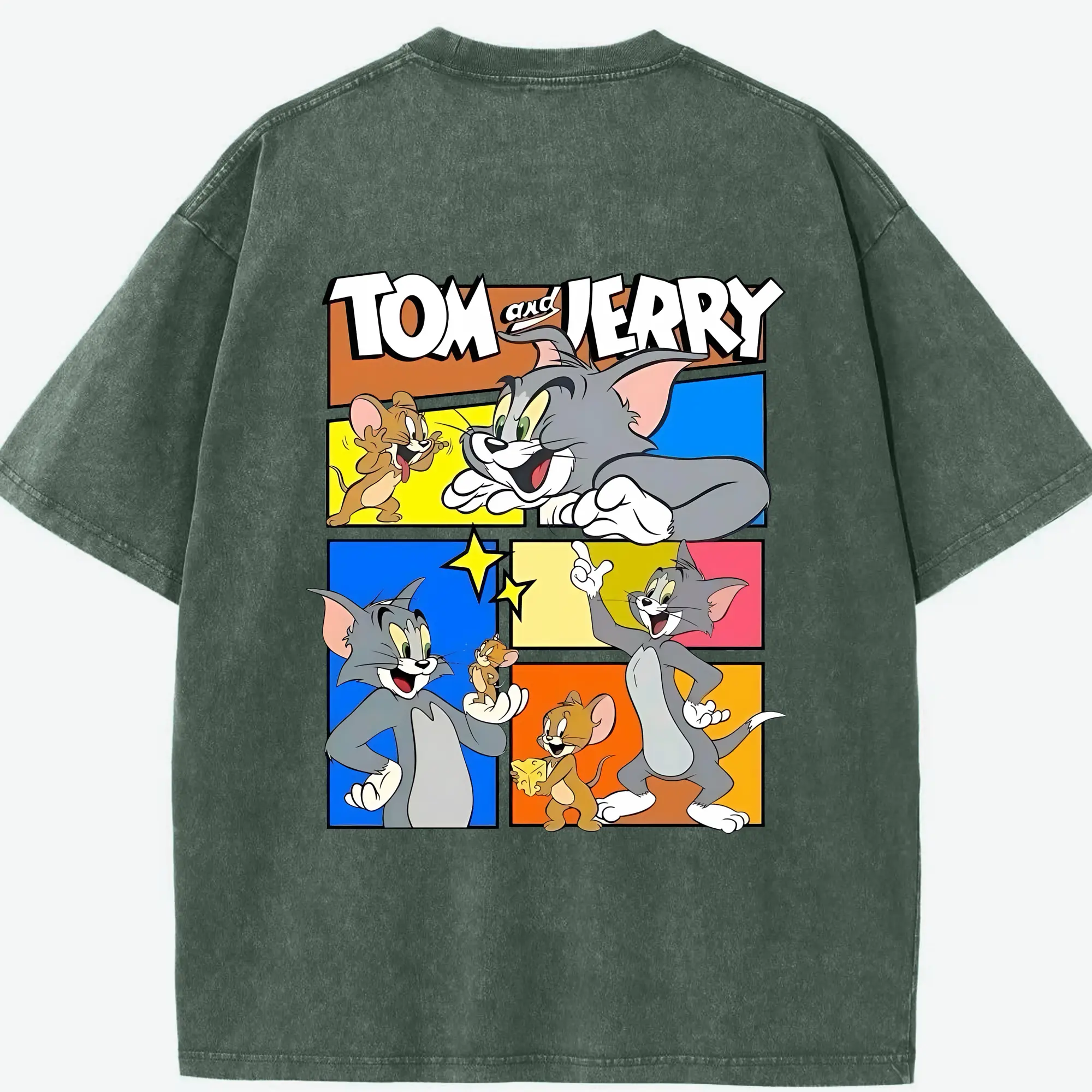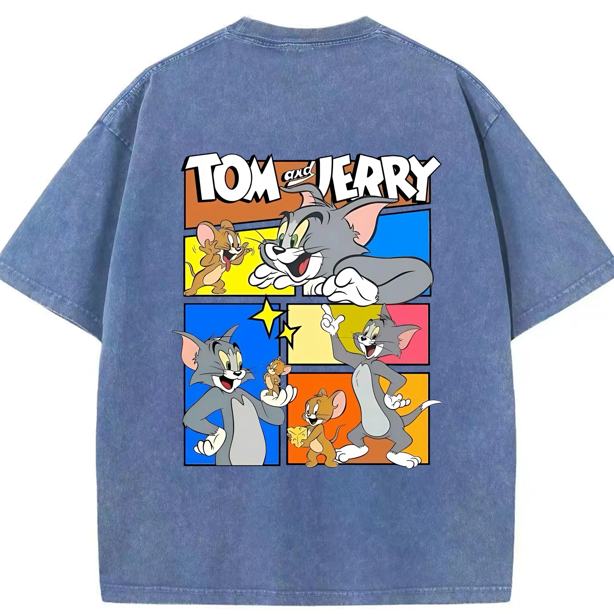トムとジェリー グッズ トム - 綿100% ヴィンテージ風 半袖Tシャツ ・ フロントプリント ・ 柔らか肌触り ・ 通気性 快適 ・ スポーツ カジュアル 外出用