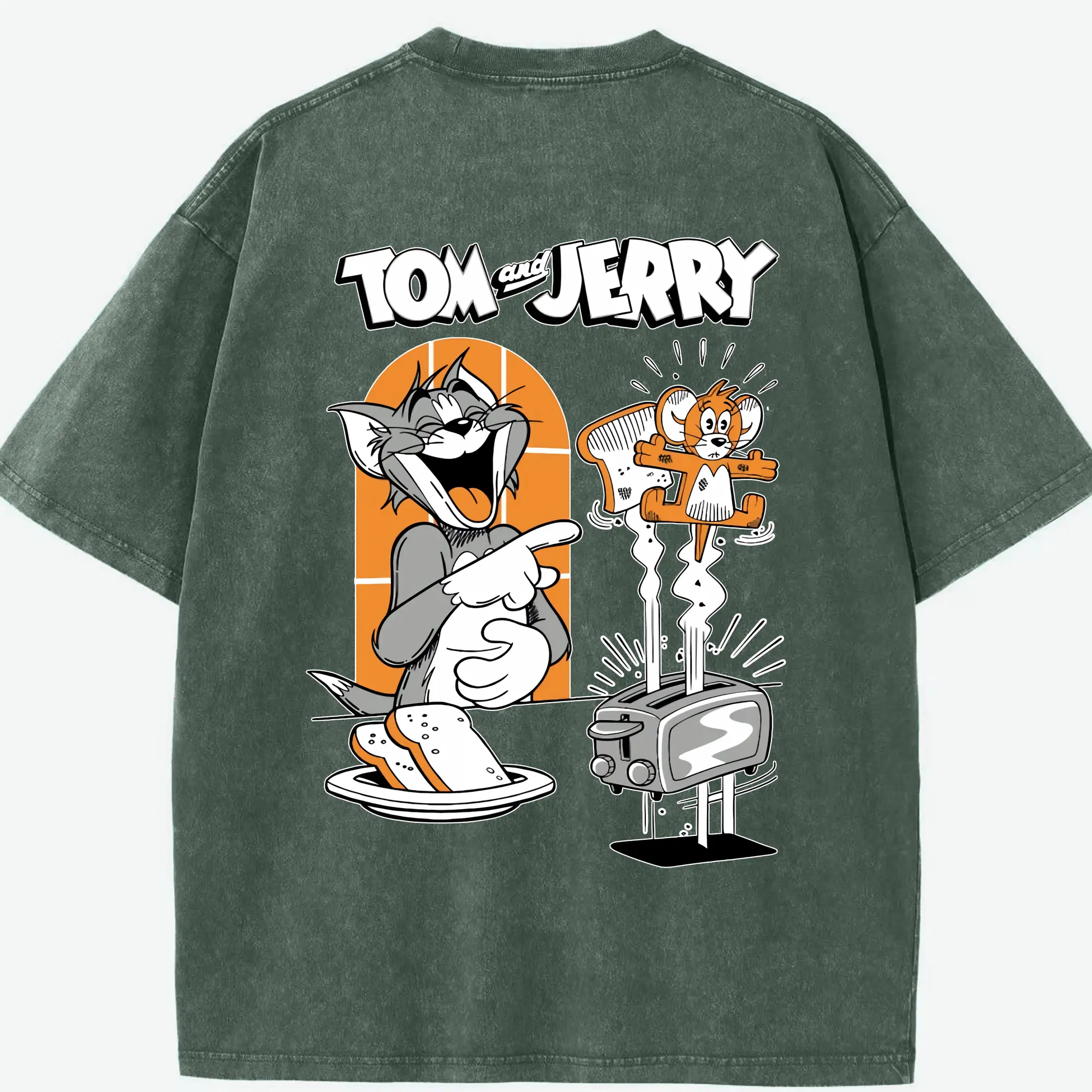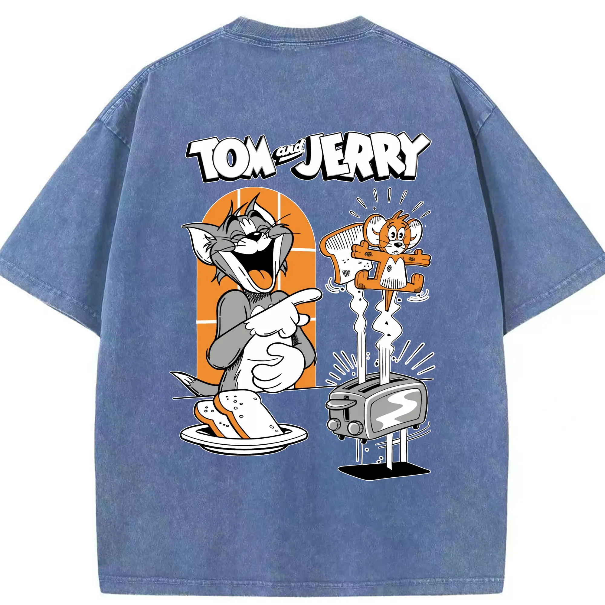トムとジェリー グッズ トム - 綿100% ヴィンテージ風 半袖Tシャツ ・ フロントプリント ・ 柔らか肌触り ・ 通気性 快適 ・ スポーツ カジュアル 外出用