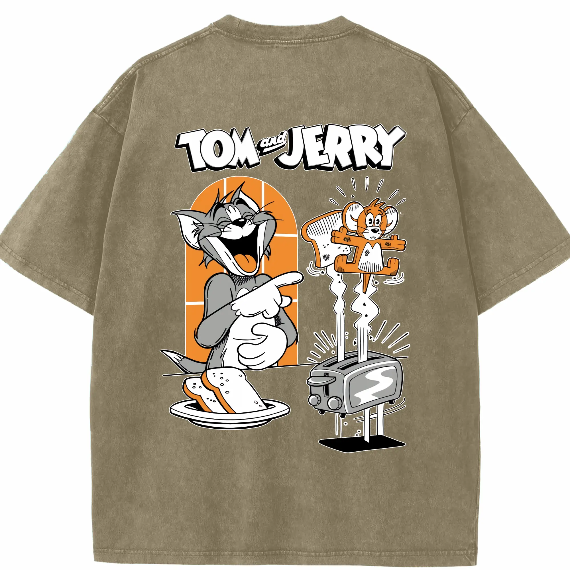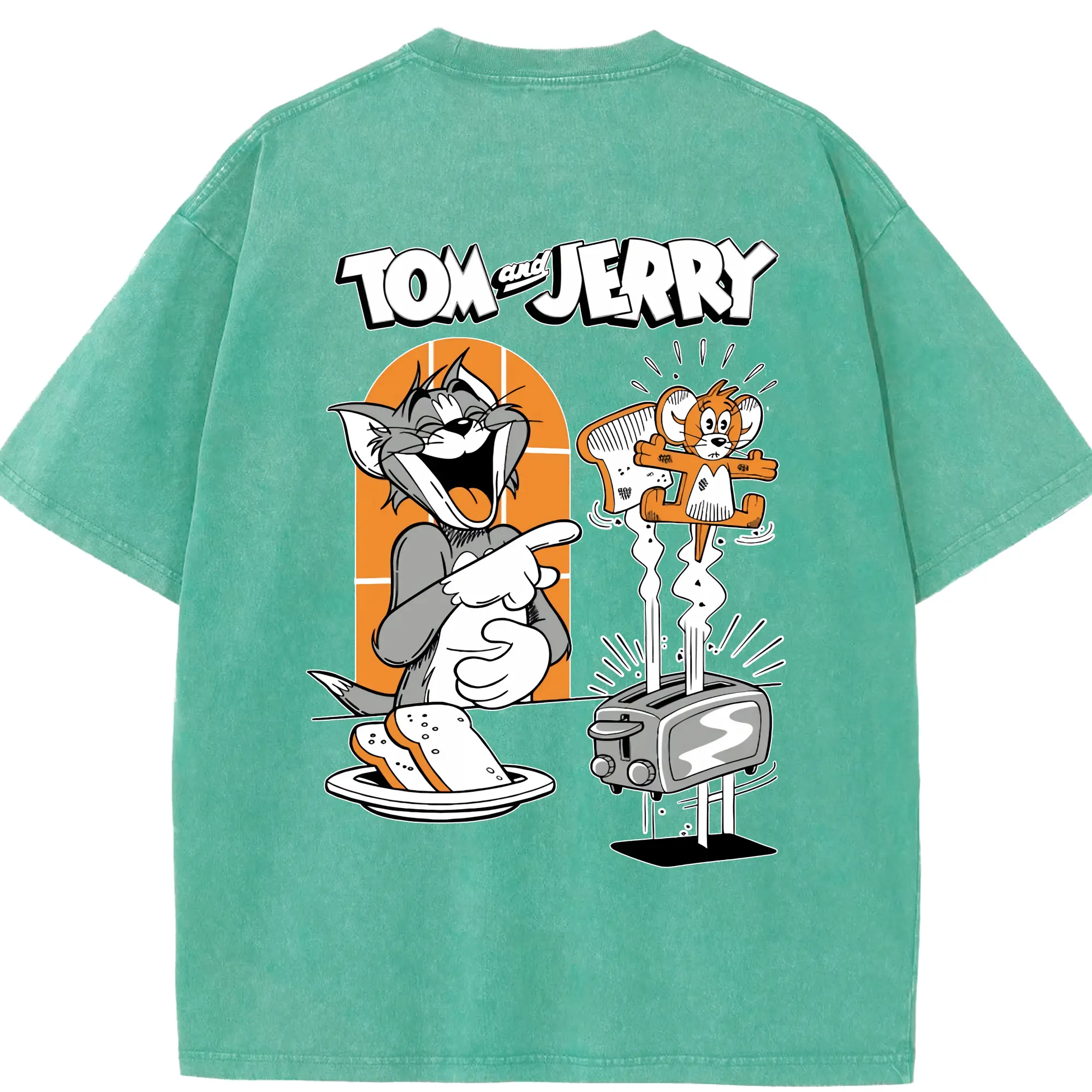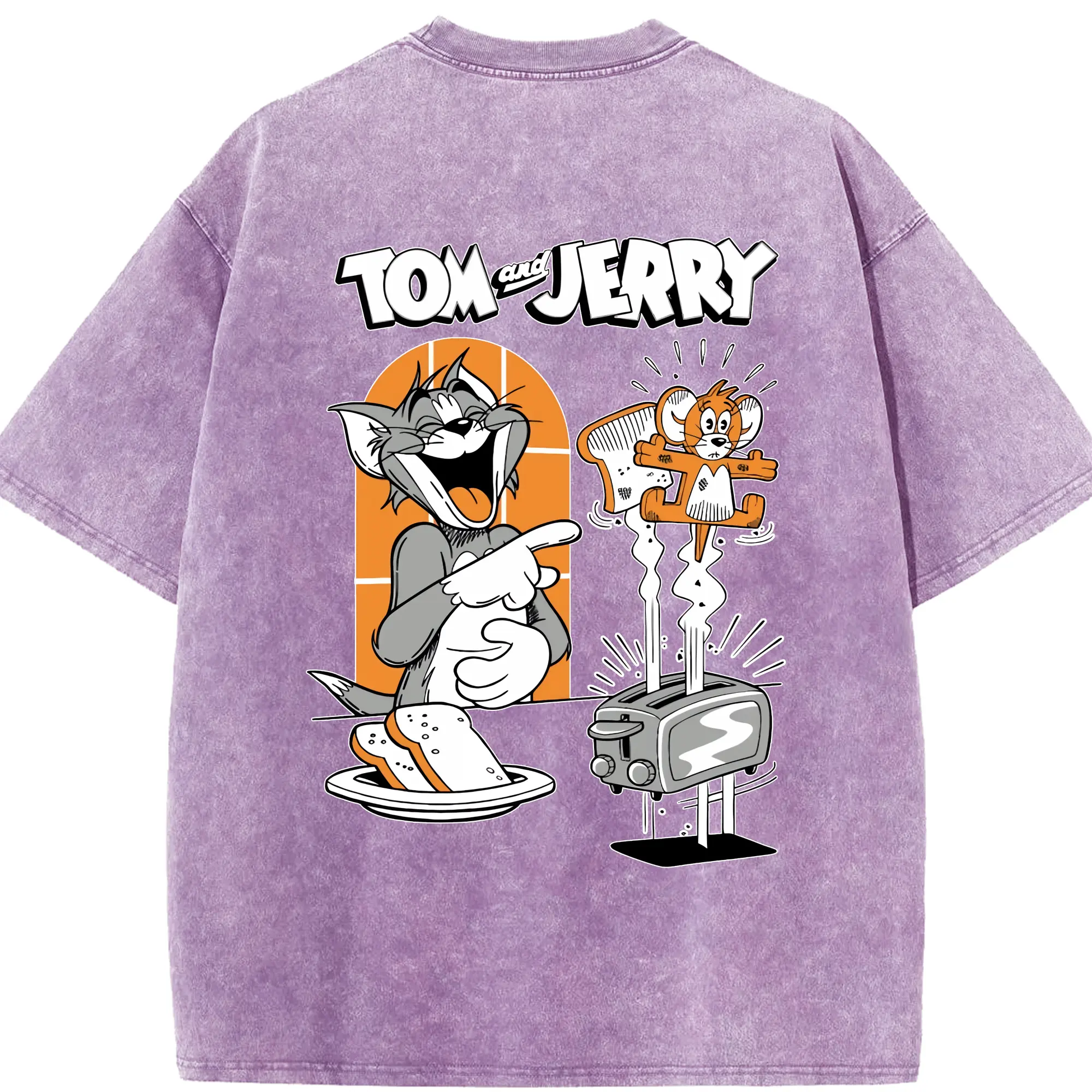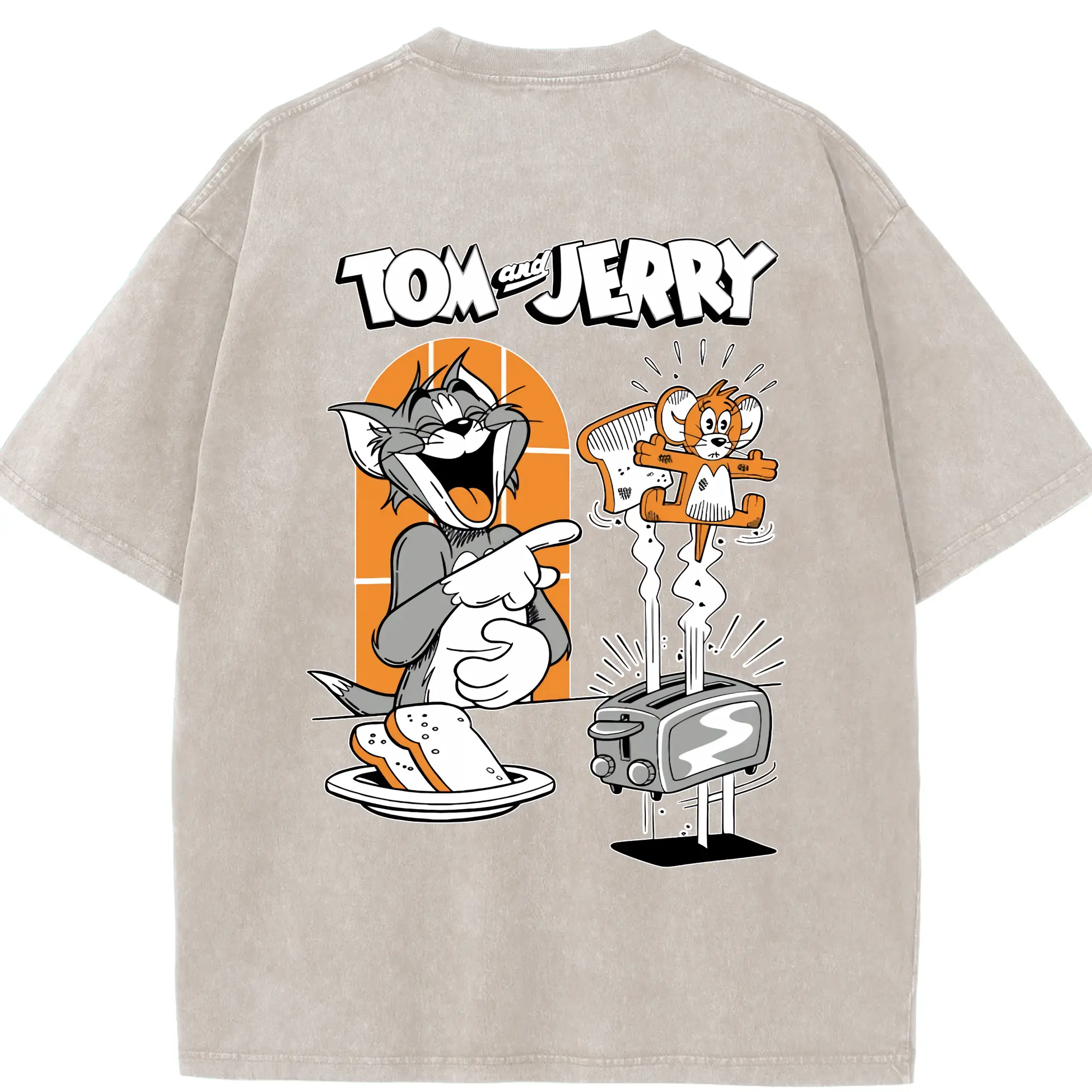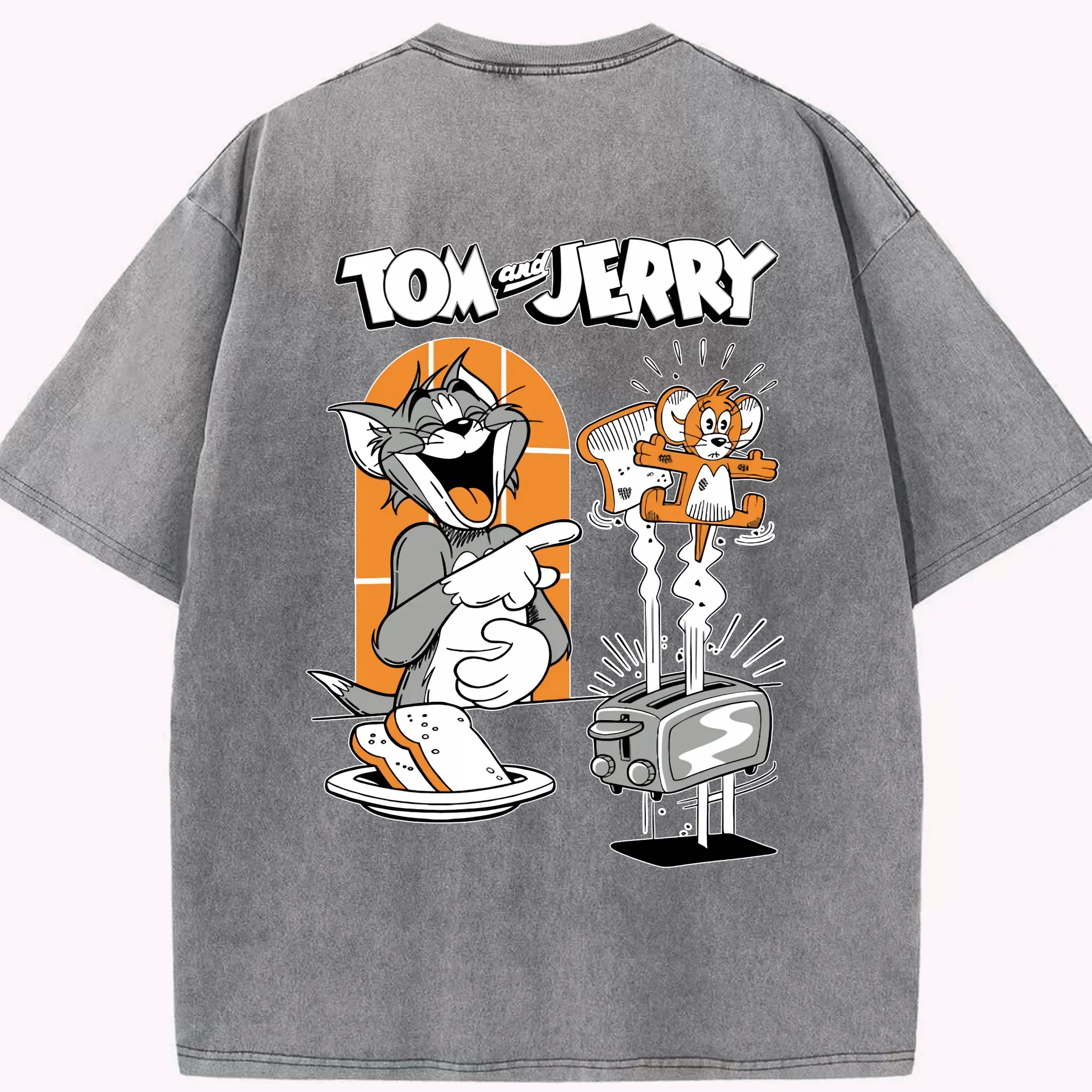 トムとジェリー グッズ トム - 綿100% ヴィンテージ風 半袖Tシャツ ・ 背面プリント ・ 柔らか肌触り ・ 通気性 快適 ・ スポーツ カジュアル 外出用
