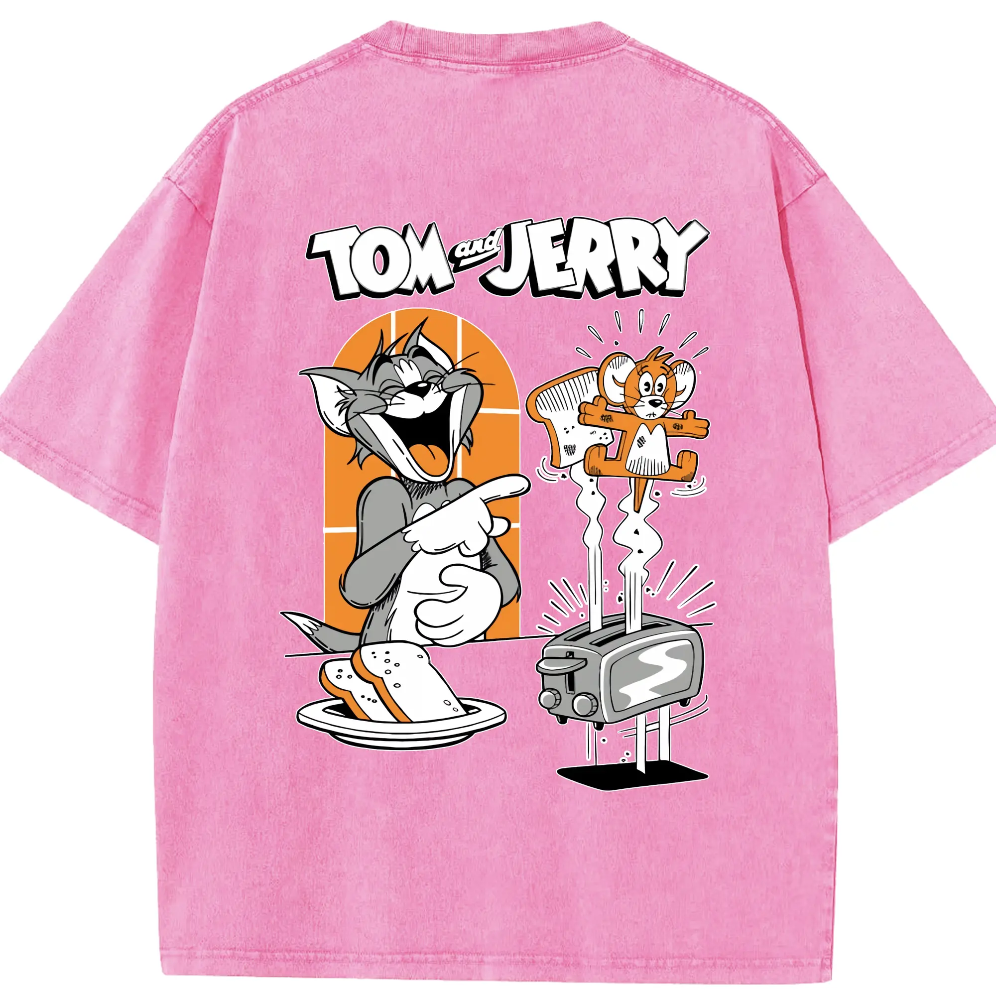 トムとジェリー グッズ トム - 綿100% 半袖Tシャツ ・ バックプリント ・ 快適 通気性 ・ 日常使い 散歩 スポーツ用