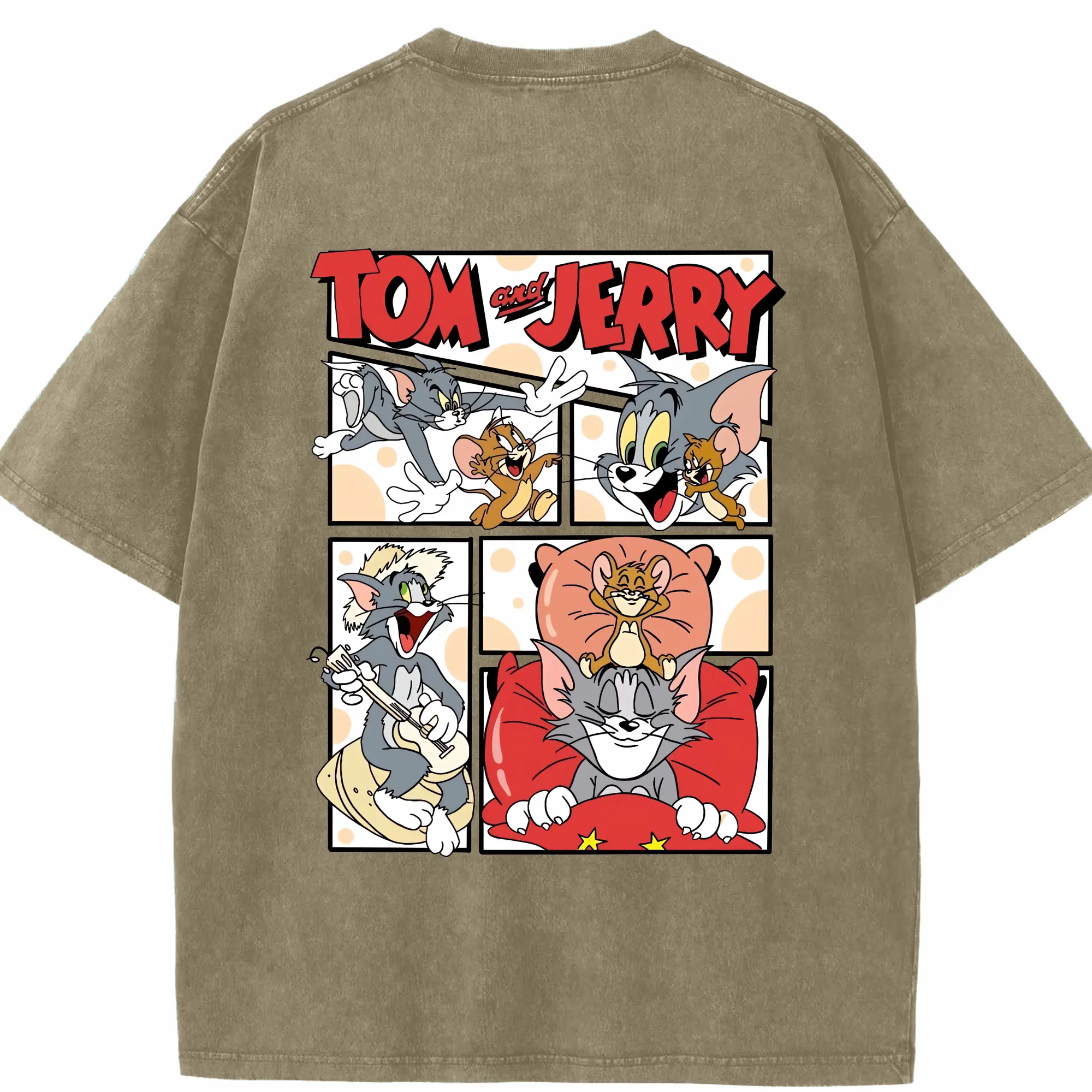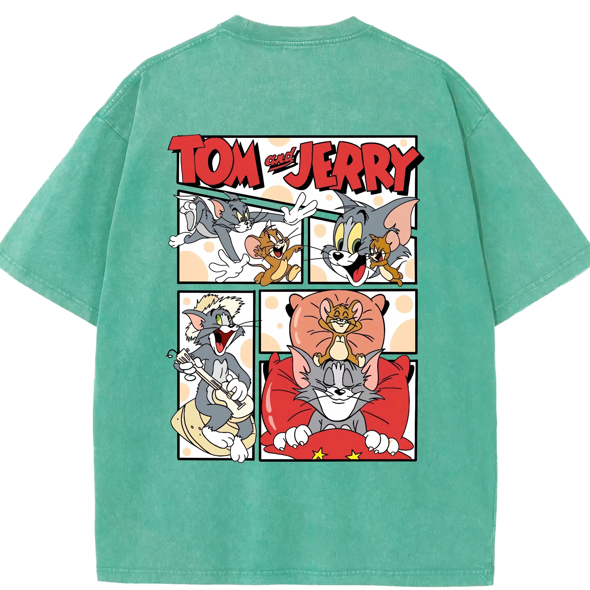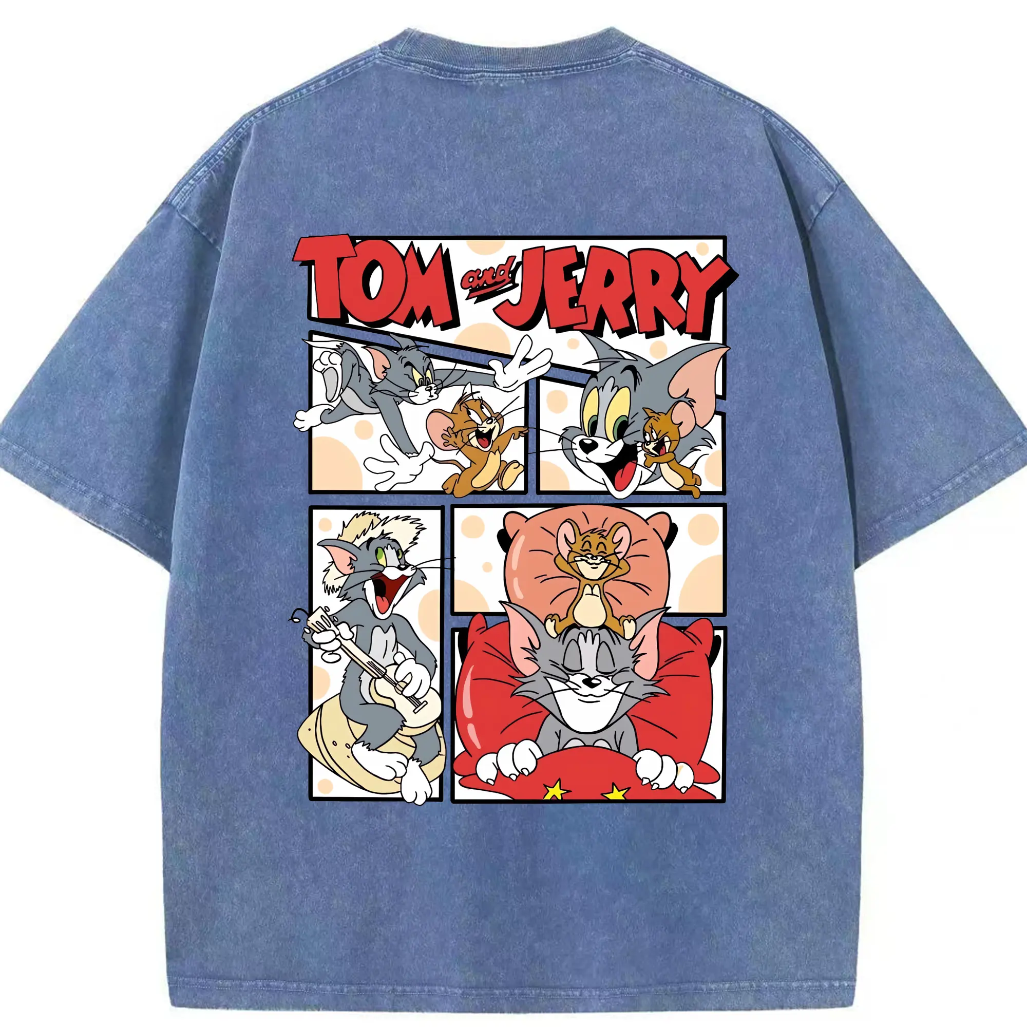 トムとジェリー グッズ トム - 綿100% ヴィンテージ風 半袖Tシャツ ・ フロントプリント ・ 柔らか肌触り ・ 通気性 快適 ・ スポーツ カジュアル 外出用