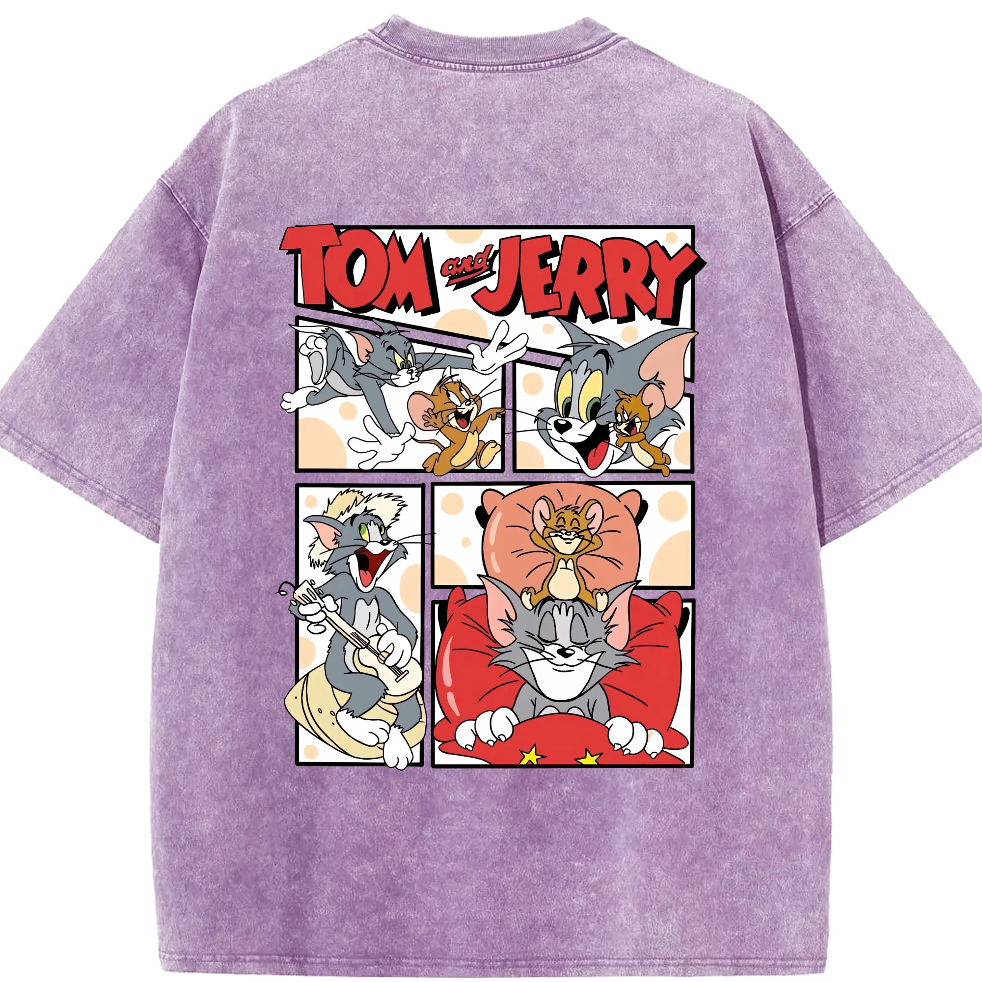 トムとジェリー グッズ トム - 綿100% 半袖Tシャツ ・ バックプリント ・ 快適 通気性 ・ 日常使い 散歩 スポーツ用