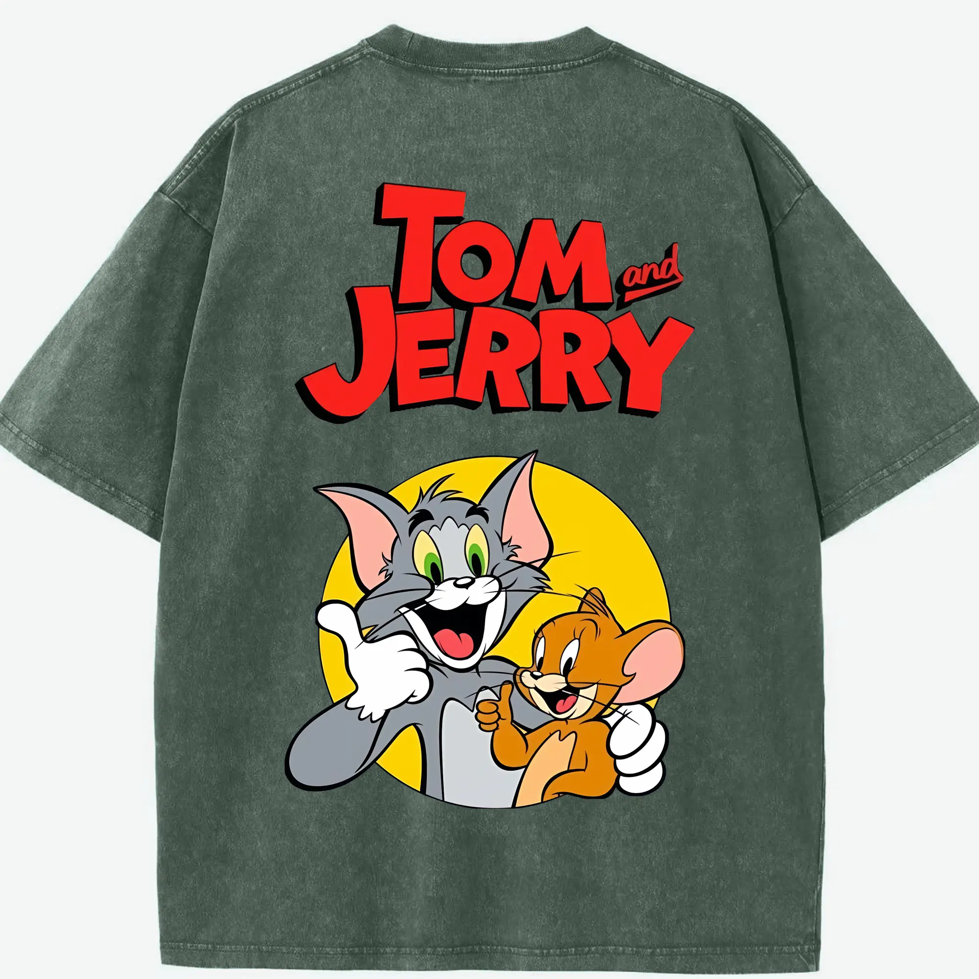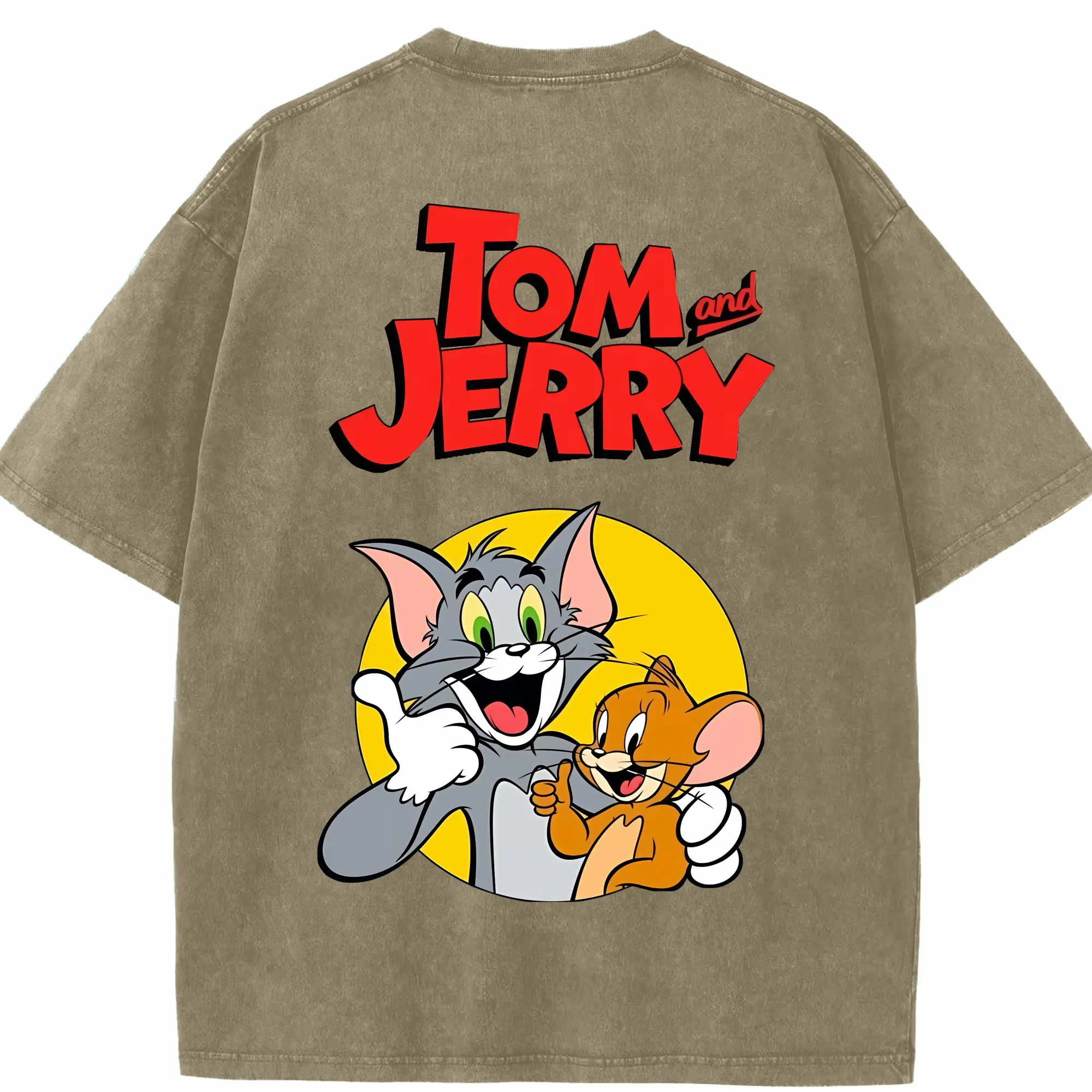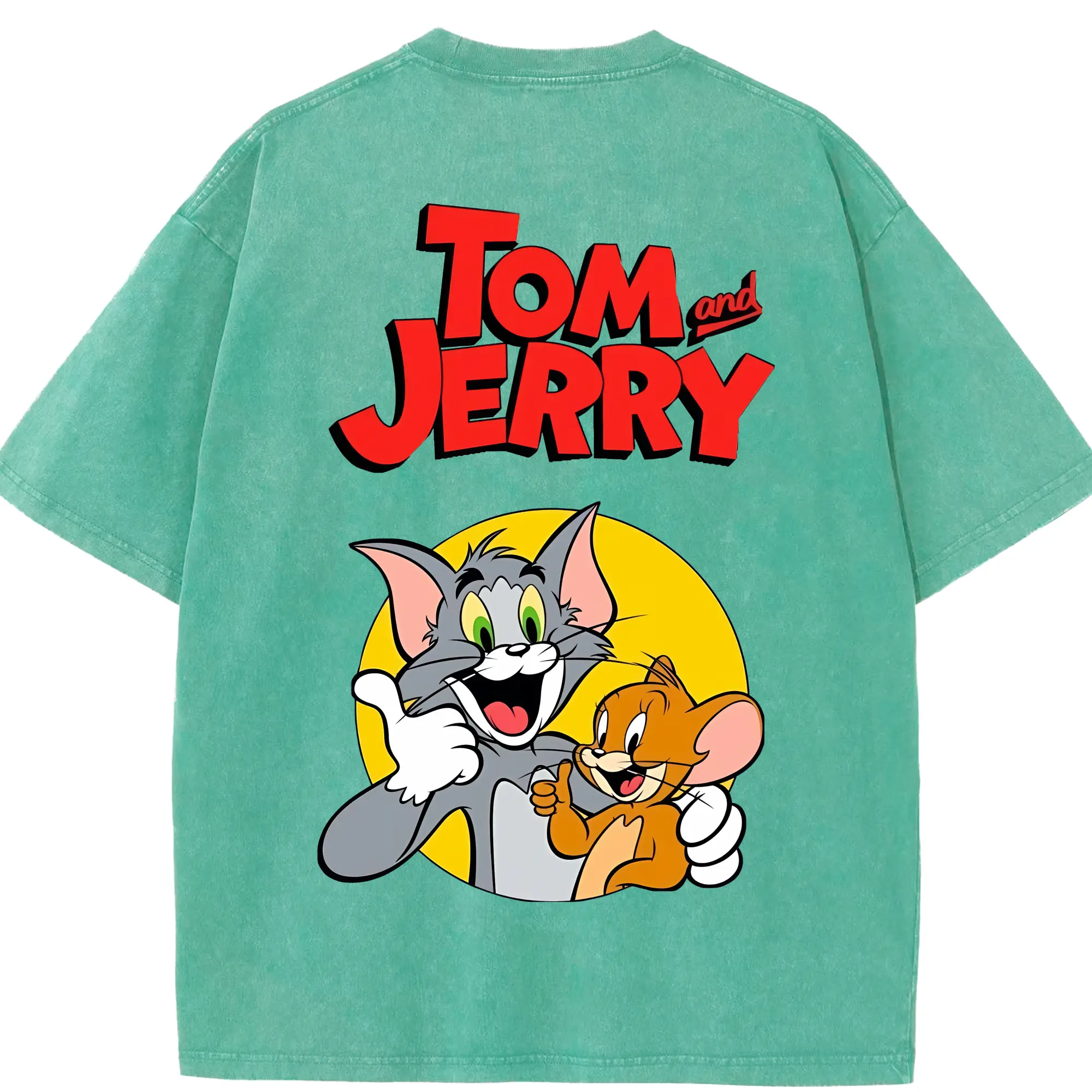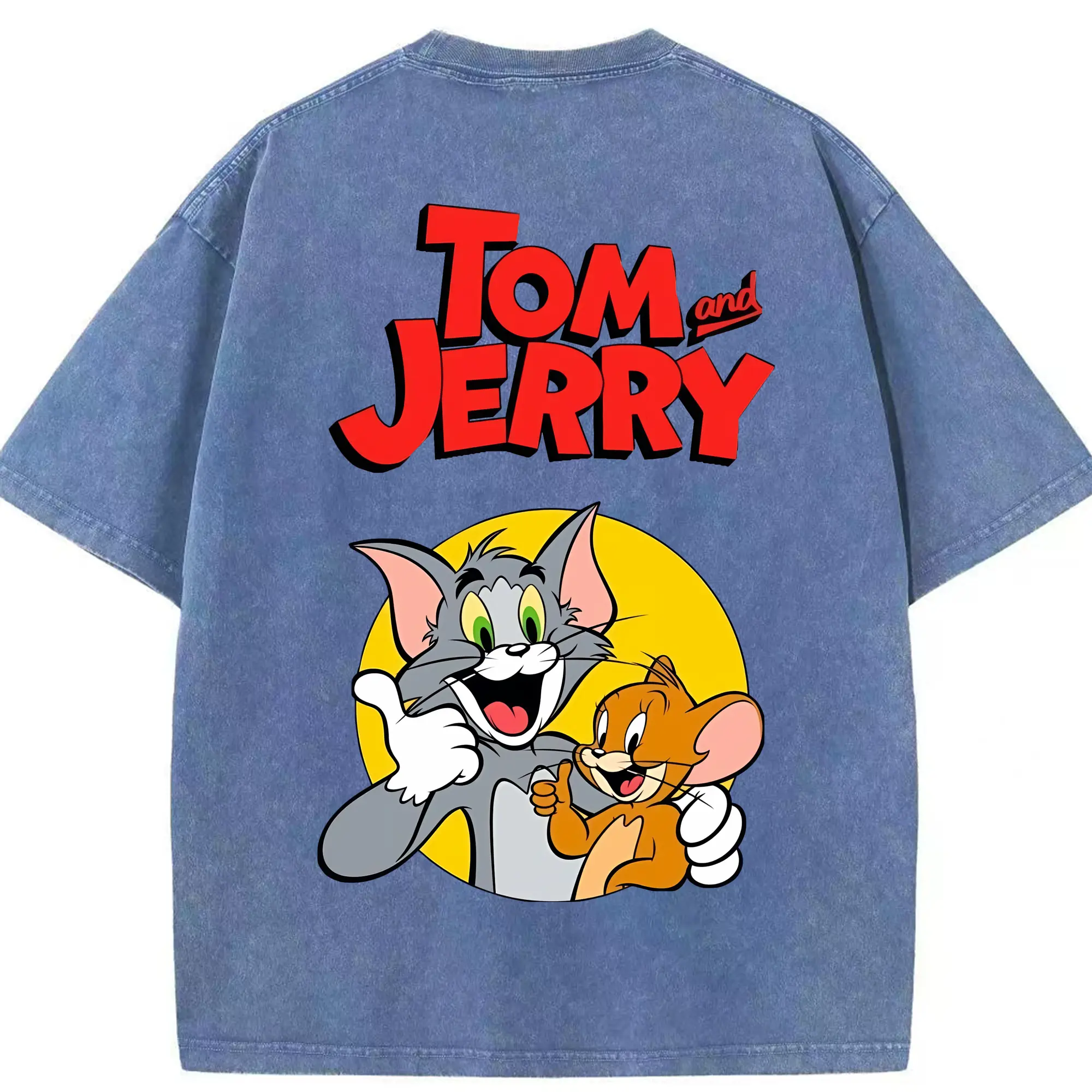 トムとジェリー グッズ トム - 綿100% ヴィンテージ風 半袖Tシャツ ・ フロントプリント ・ 柔らか肌触り ・ 通気性 快適 ・ スポーツ カジュアル 外出用