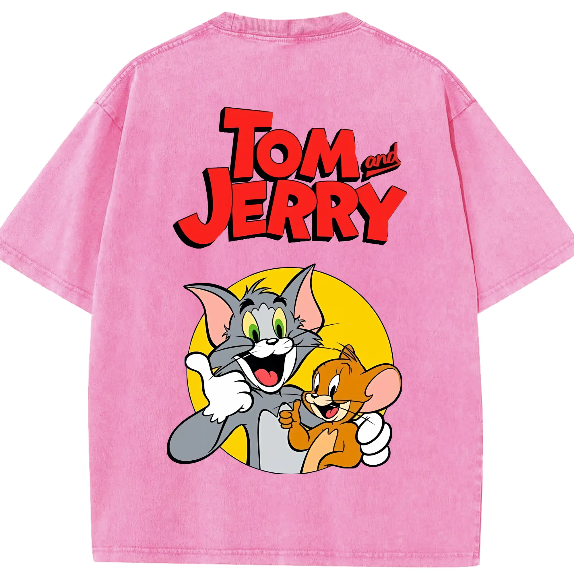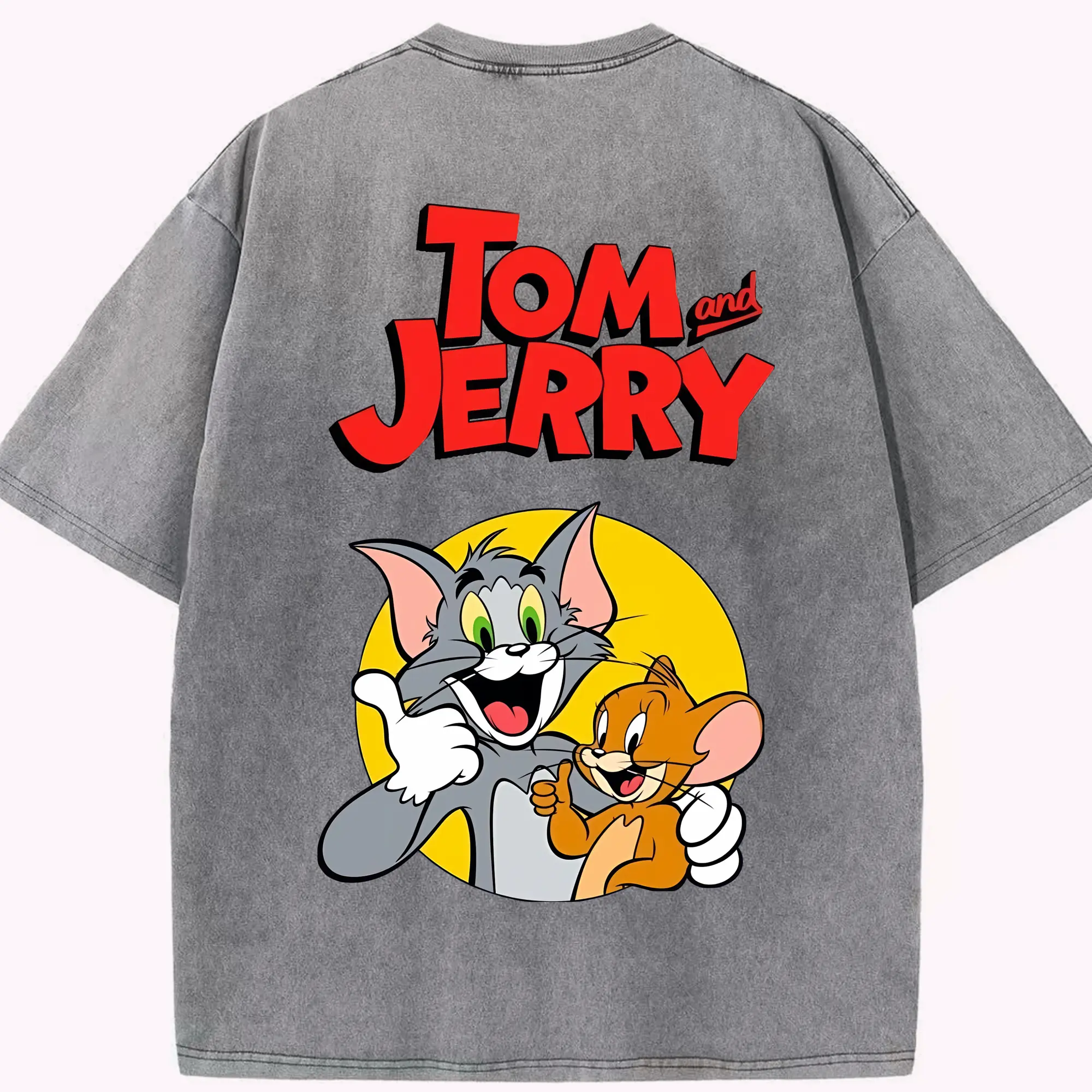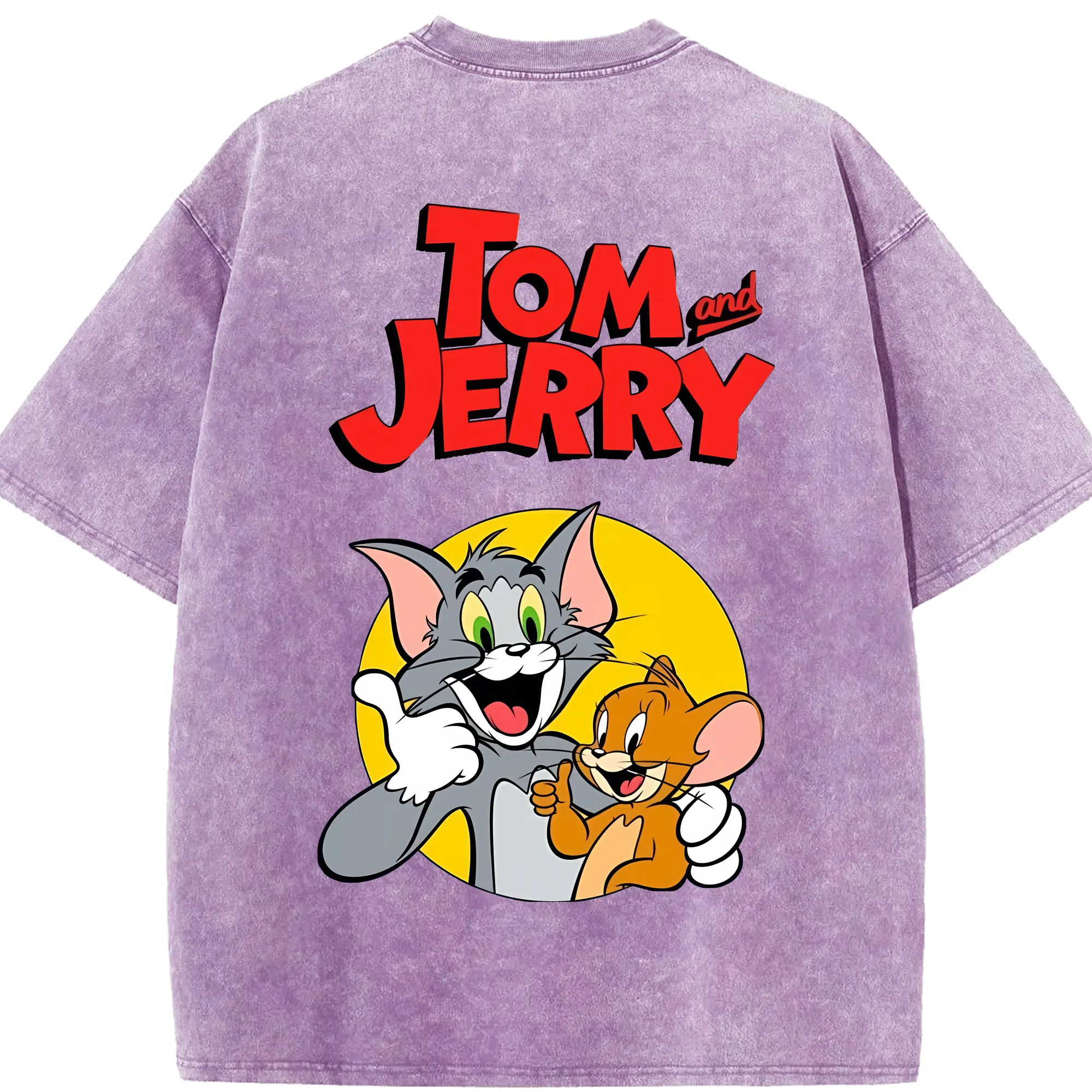 トムとジェリー グッズ トム - 綿100% 半袖Tシャツ ・ バックプリント ・ 快適 通気性 ・ 日常使い 散歩 スポーツ用
