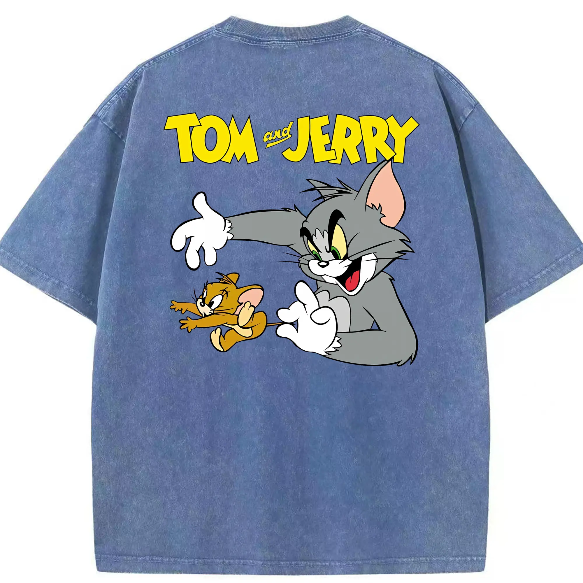 トムとジェリー グッズ トム - 綿100% ヴィンテージ風 半袖Tシャツ ・ フロントプリント ・ 柔らか肌触り ・ 通気性 快適 ・ スポーツ カジュアル 外出用