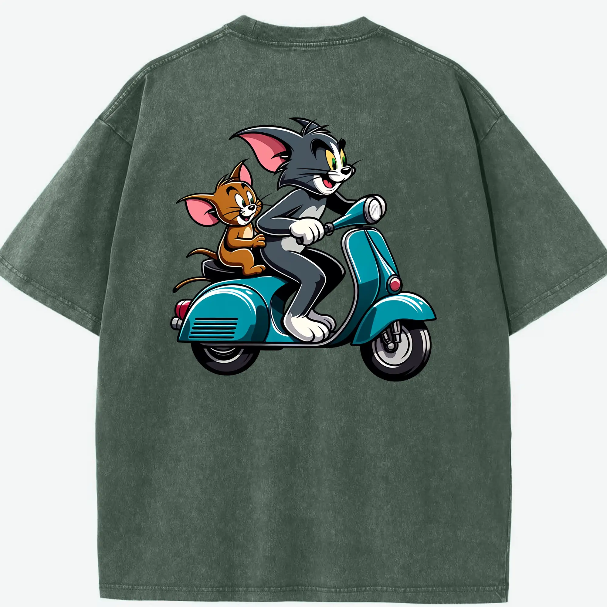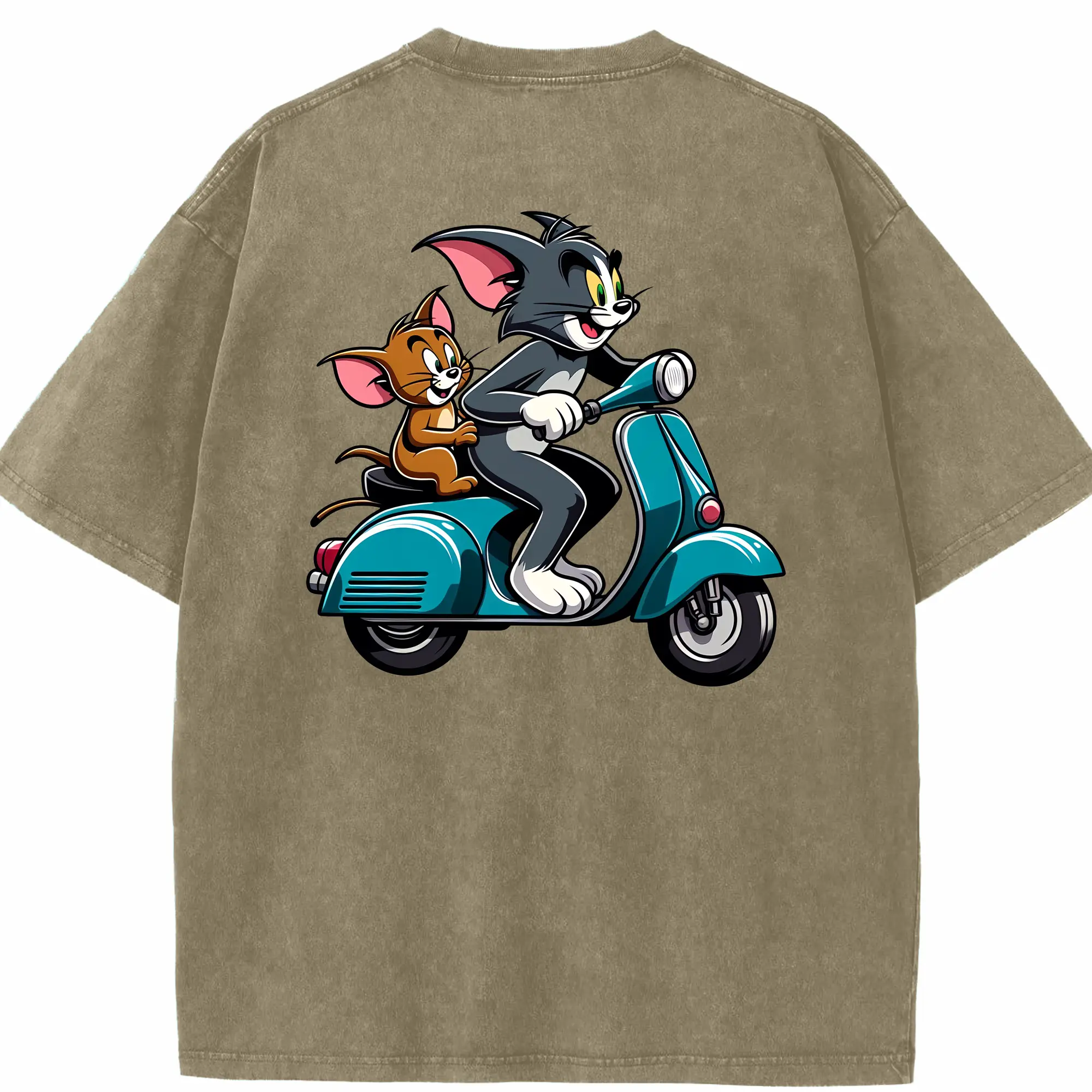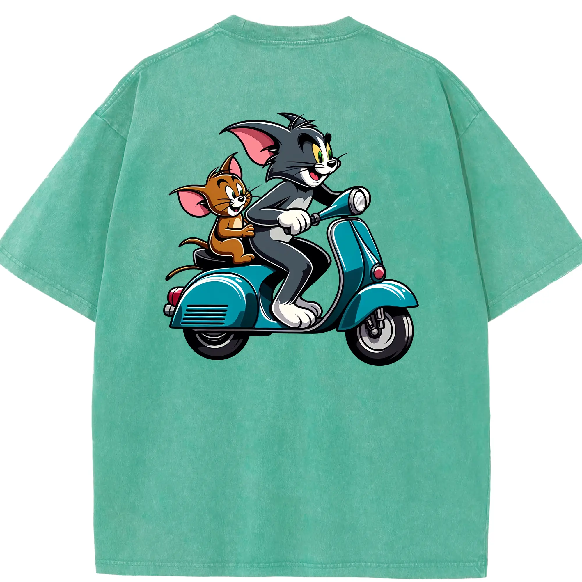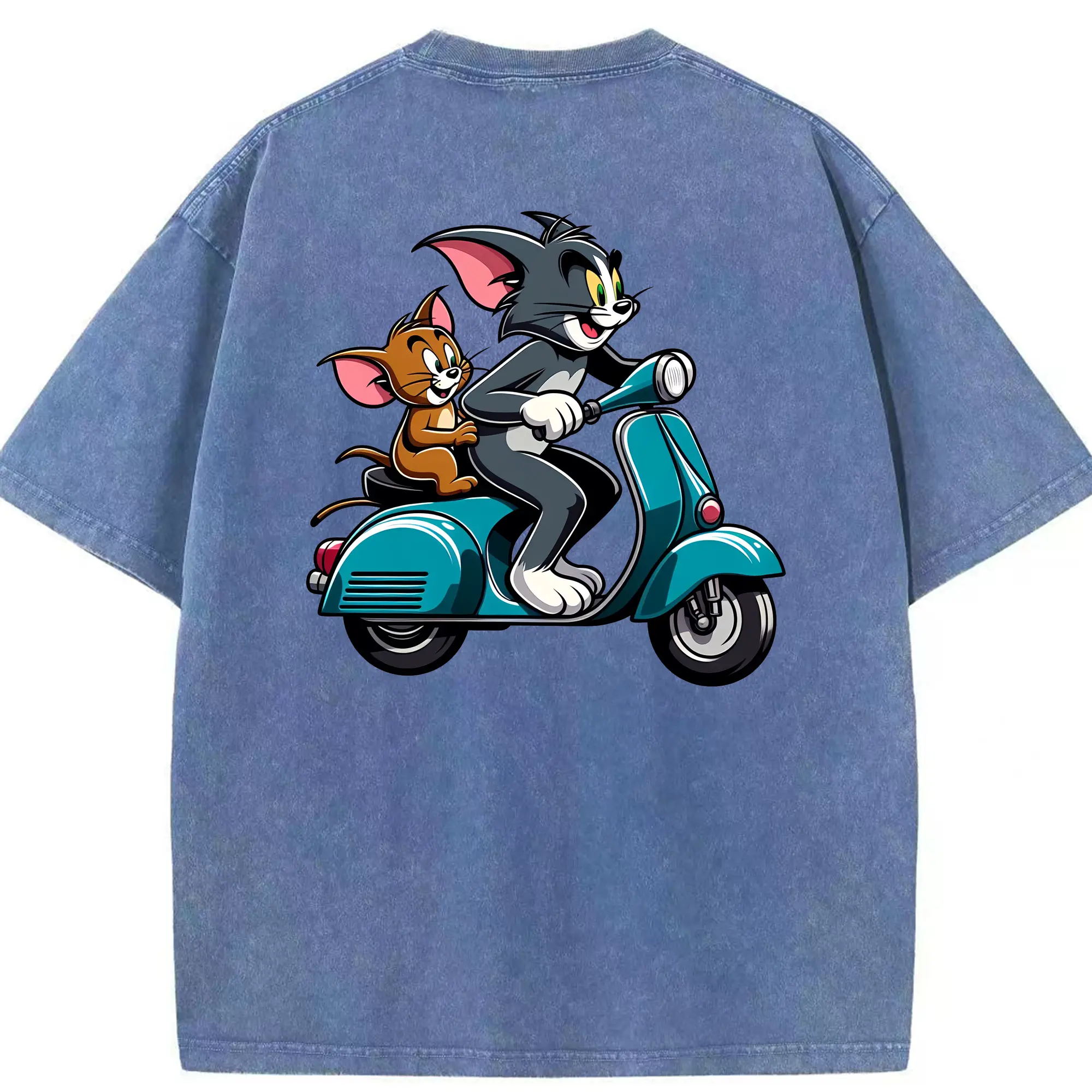 トムとジェリー グッズ トム - 綿100% ヴィンテージ風 半袖Tシャツ ・ フロントプリント ・ 柔らか肌触り ・ 通気性 快適 ・ スポーツ カジュアル 外出用