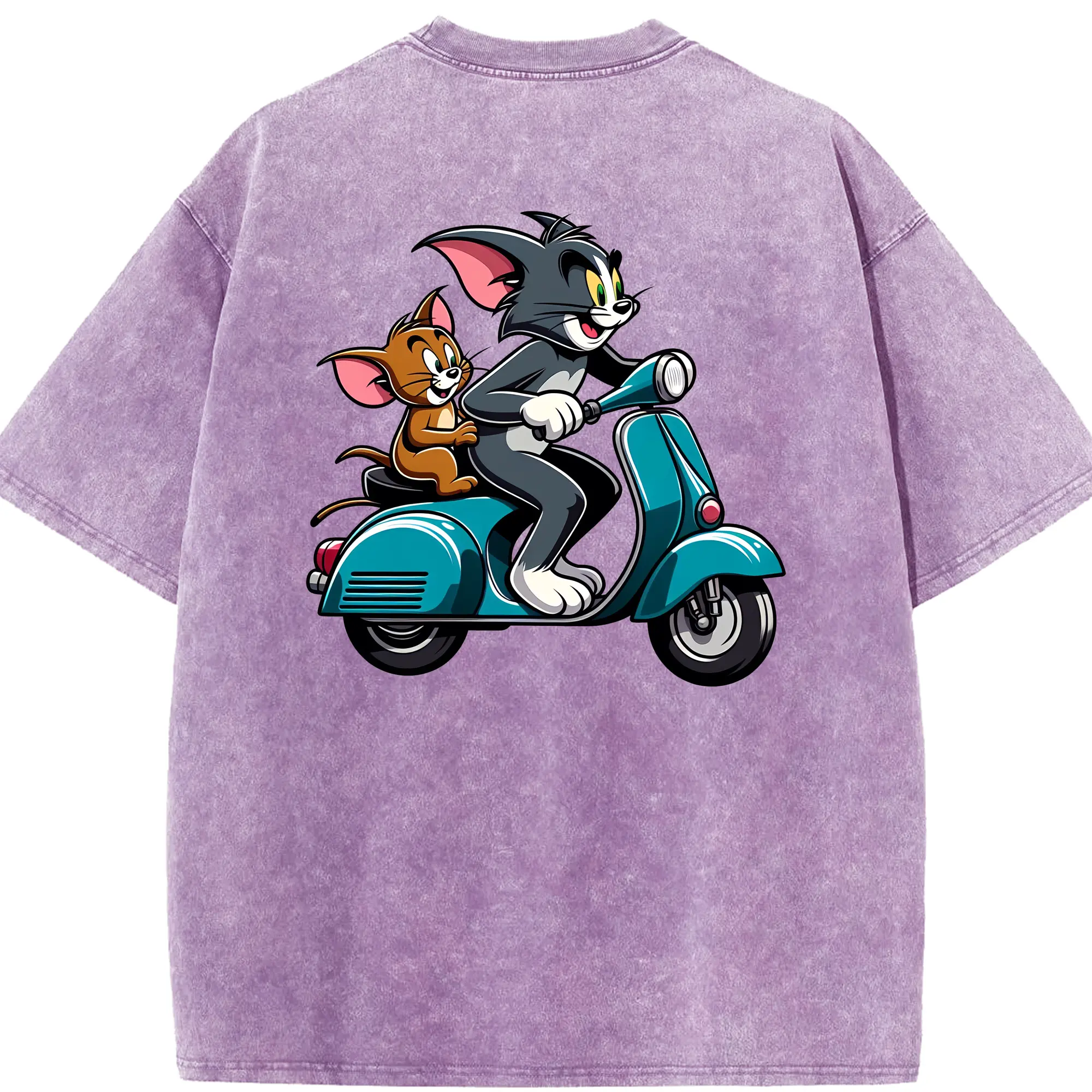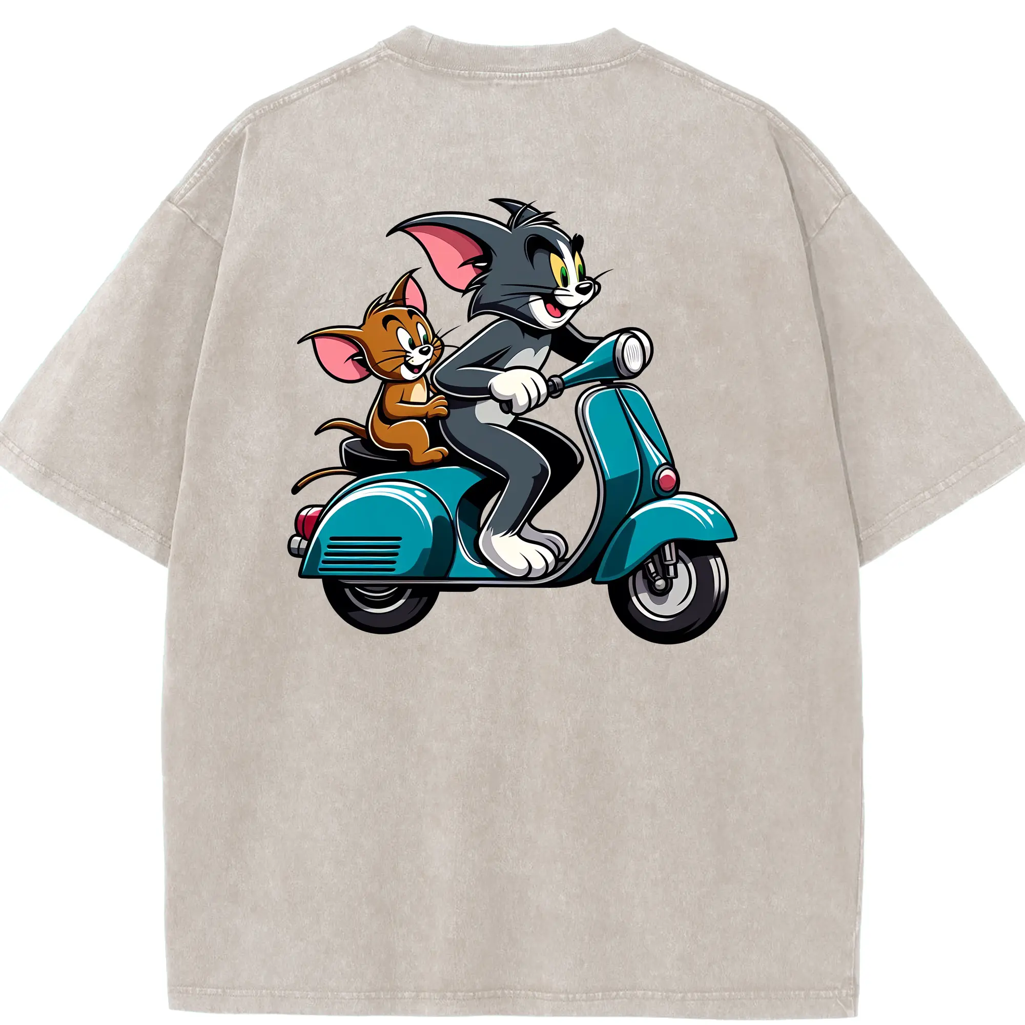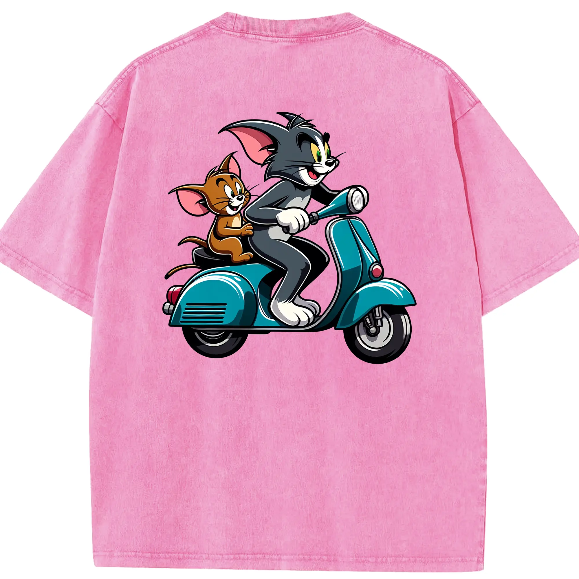 トムとジェリー グッズ トム - 綿100% 半袖Tシャツ ・ バックプリント ・ 快適 通気性 ・ 日常使い 散歩 スポーツ用