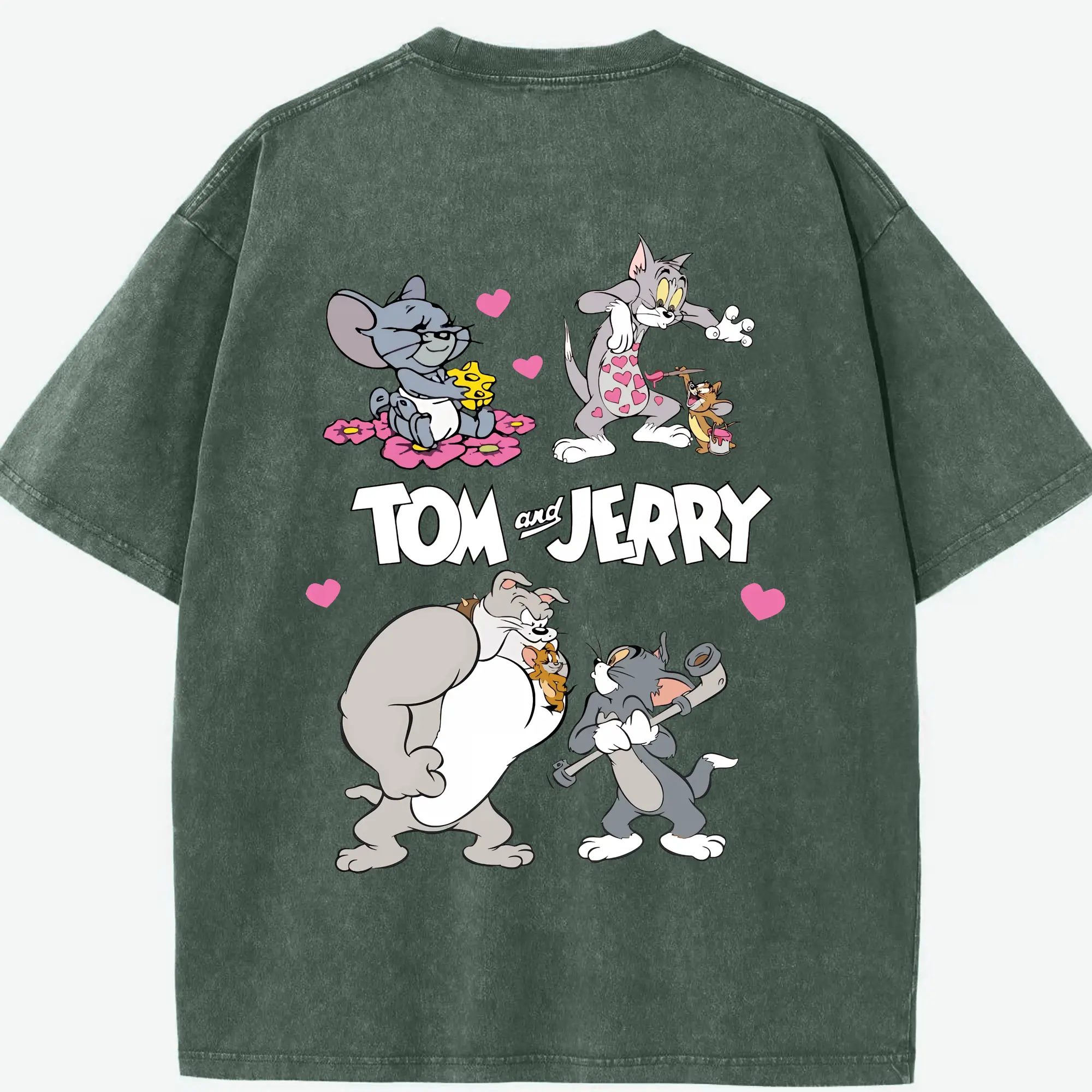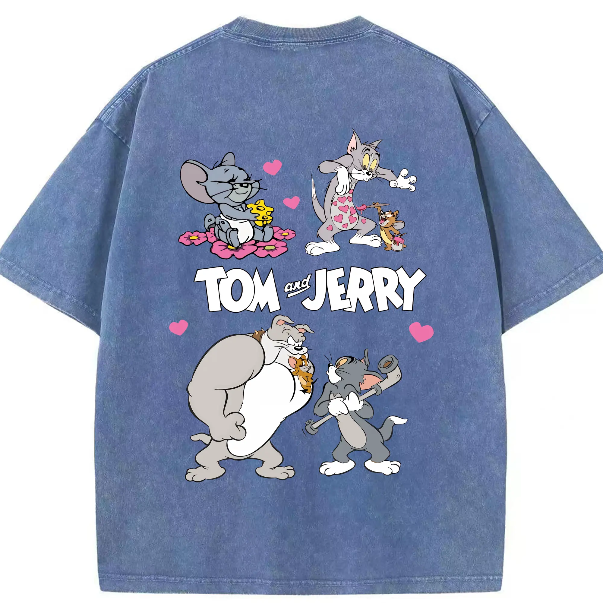 トムとジェリー グッズ トム - 綿100% ヴィンテージ風 半袖Tシャツ ・ フロントプリント ・ 柔らか肌触り ・ 通気性 快適 ・ スポーツ カジュアル 外出用