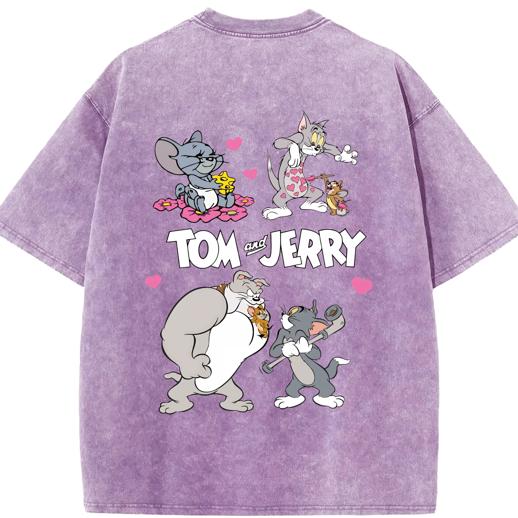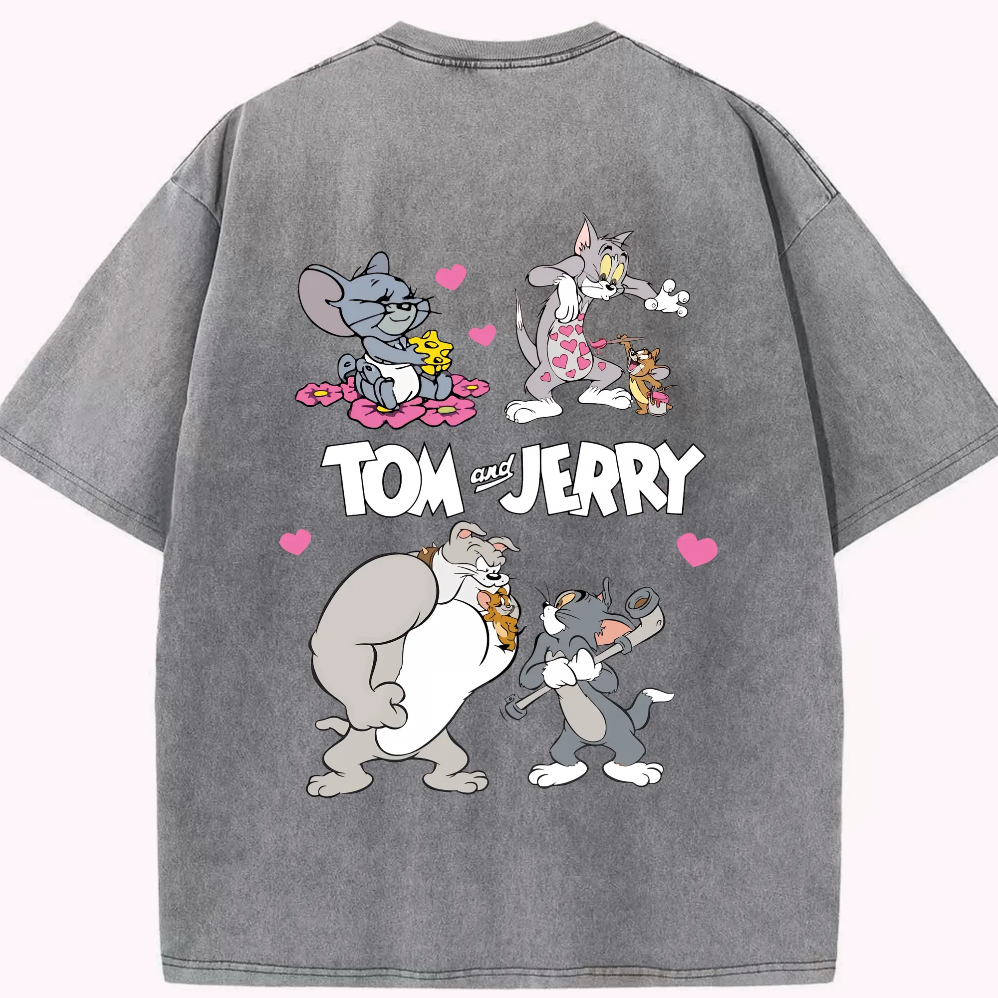 トムとジェリー グッズ トム - 綿100% 半袖Tシャツ ・ バックプリント ・ 快適 通気性 ・ 日常使い 散歩 スポーツ用