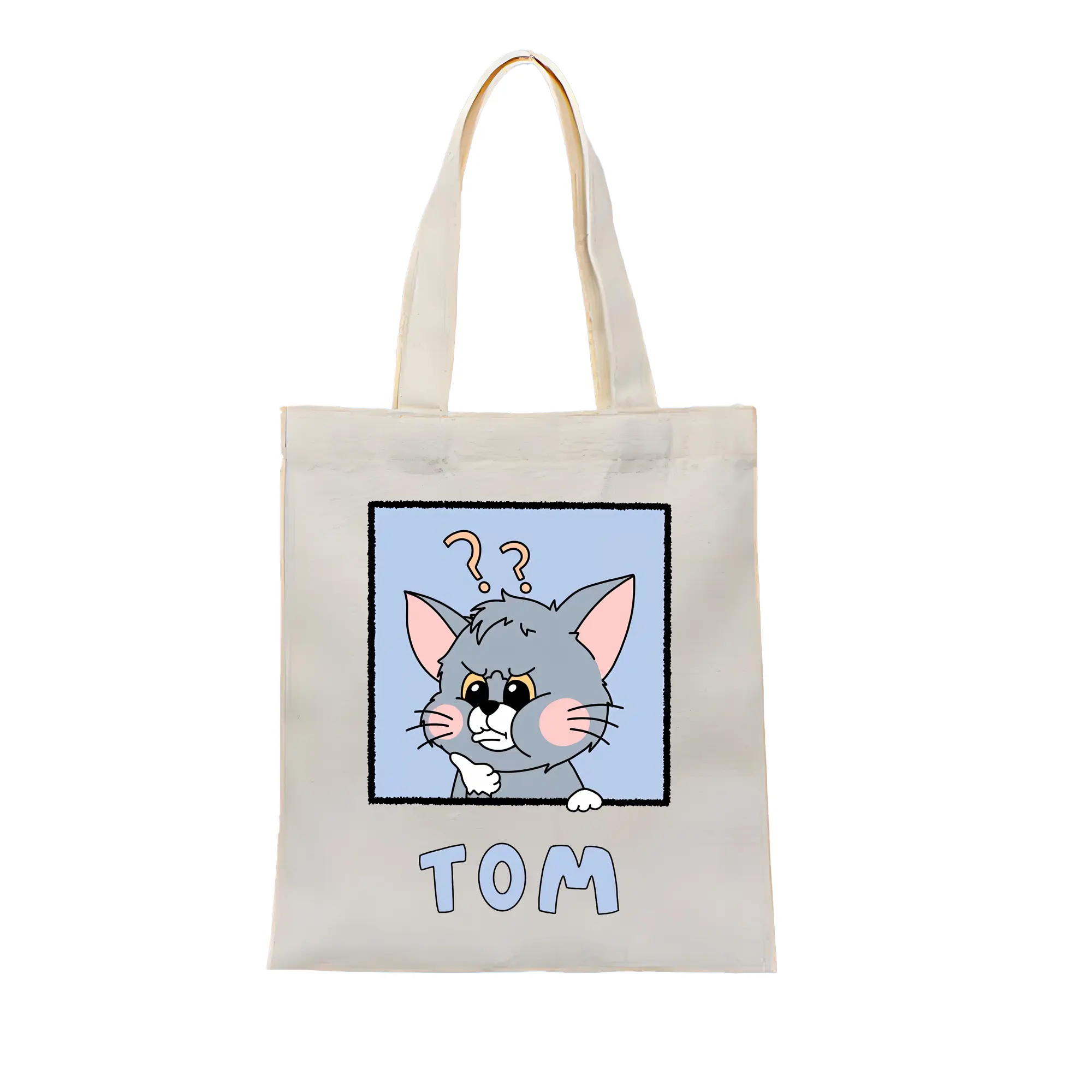 トムとジェリー グッズ トム - 縦型キャンバス手提げバッグ(トートバッグ) ・ キャンバス素材 ・ ショッピング用 ・ 軽量 丈夫 お手入れ簡単