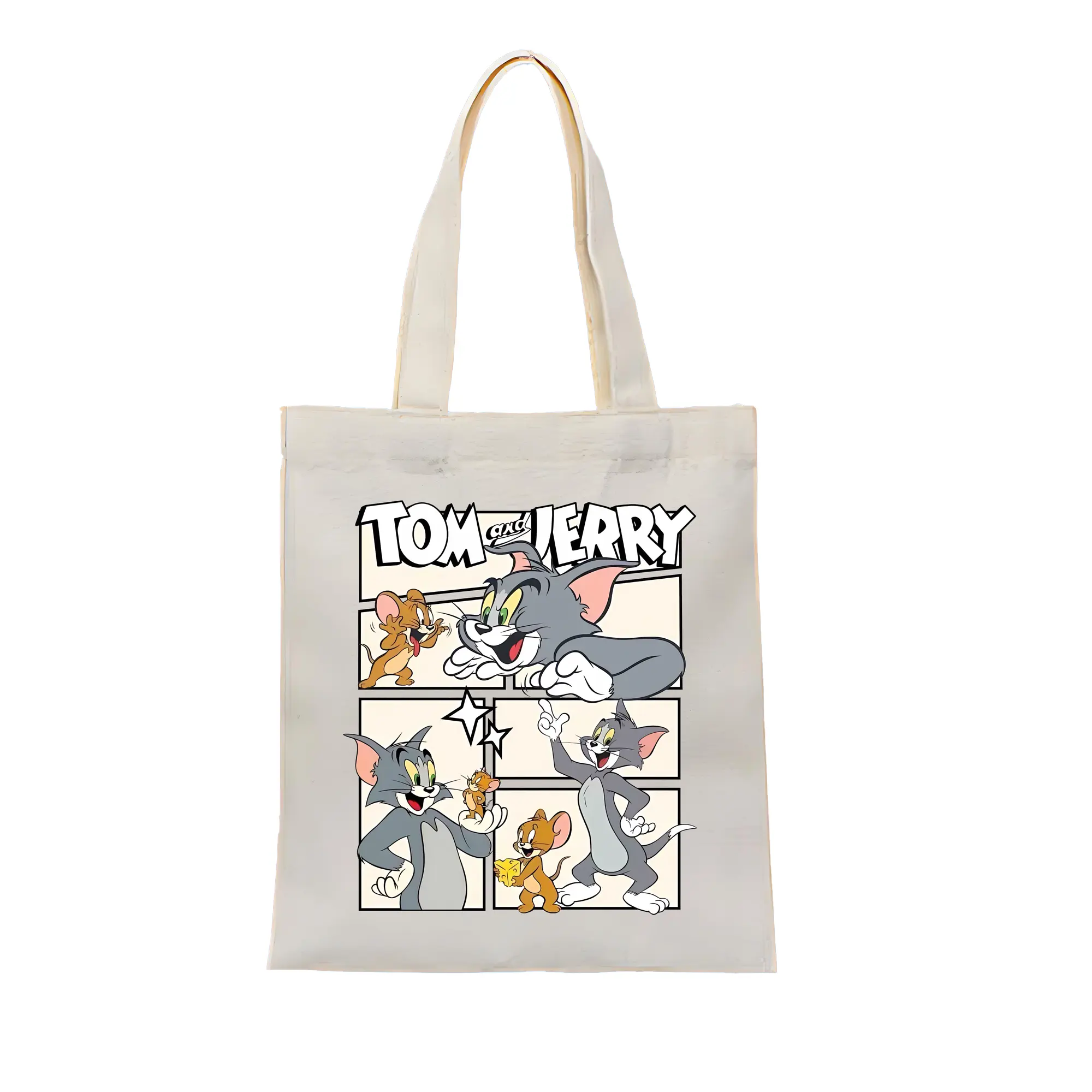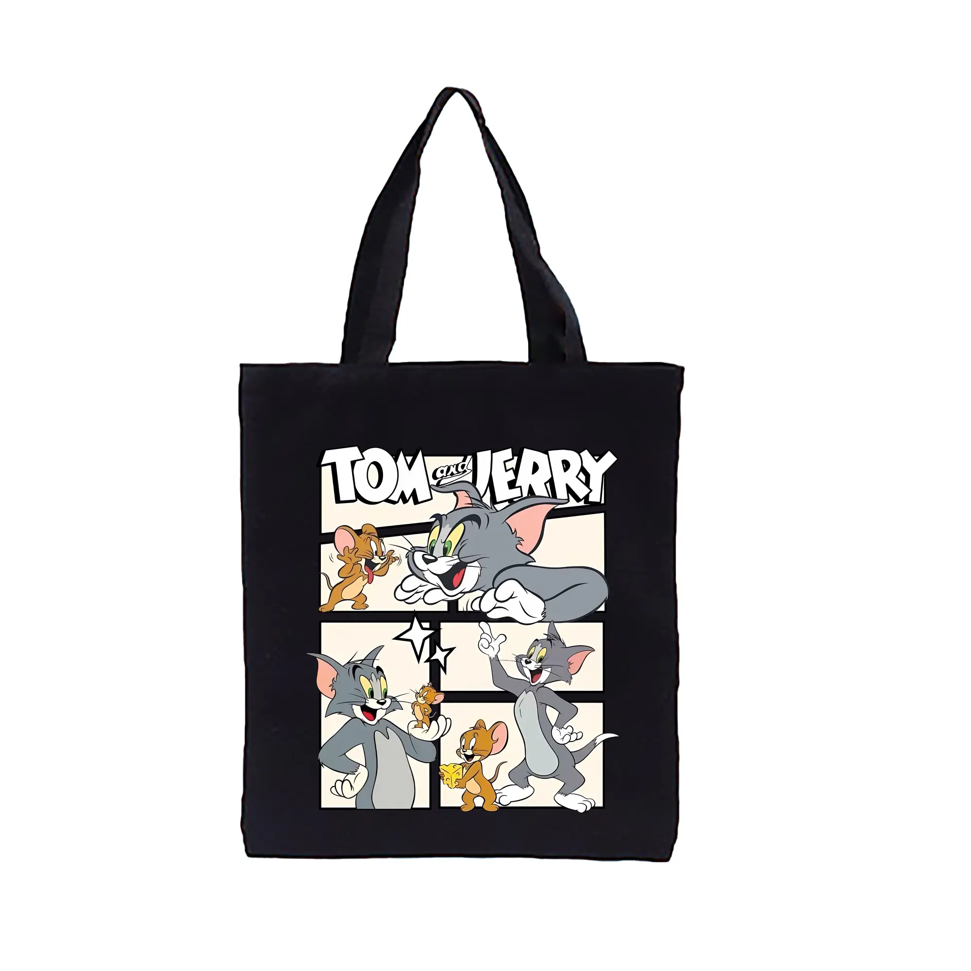 トムとジェリー グッズ トム - 縦型キャンバス手提げバッグ(トートバッグ) ・ キャンバス素材 ・ ショッピング用 ・ 軽量 丈夫 お手入れ簡単