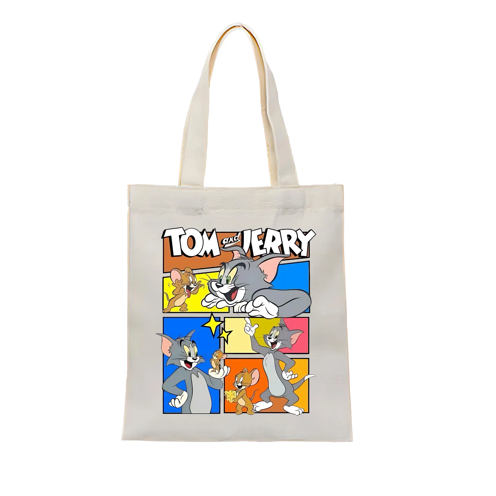 トムとジェリー グッズ トム - 縦型キャンバス手提げバッグ(トートバッグ) ・ キャンバス素材 ・ ショッピング用 ・ 軽量 丈夫 お手入れ簡単
