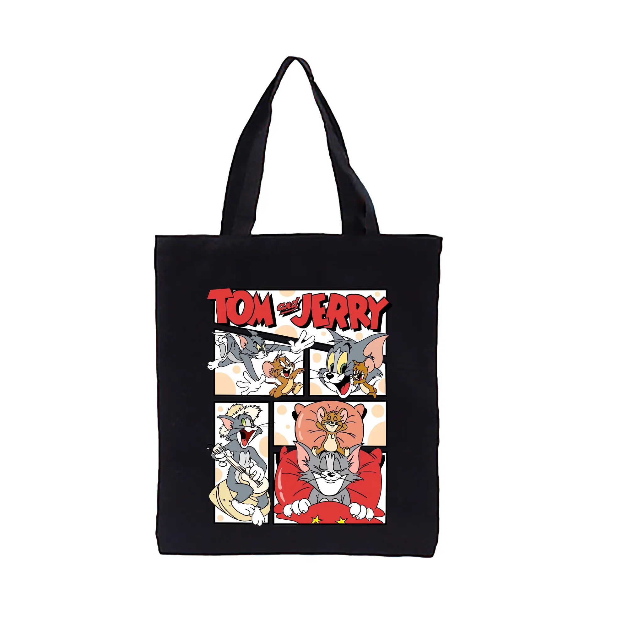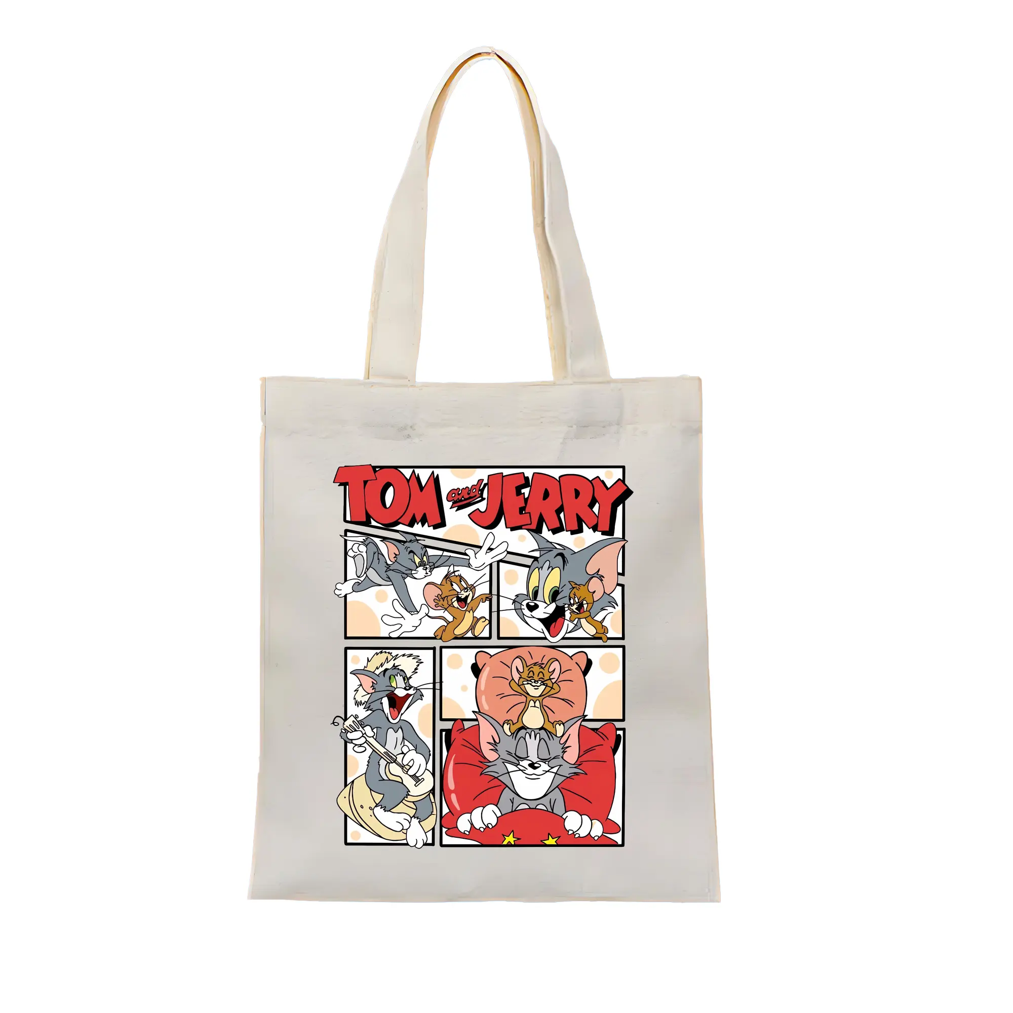 トムとジェリー グッズ トム - 縦型キャンバス手提げバッグ(トートバッグ) ・ キャンバス素材 ・ ショッピング用 ・ 軽量 丈夫 お手入れ簡単