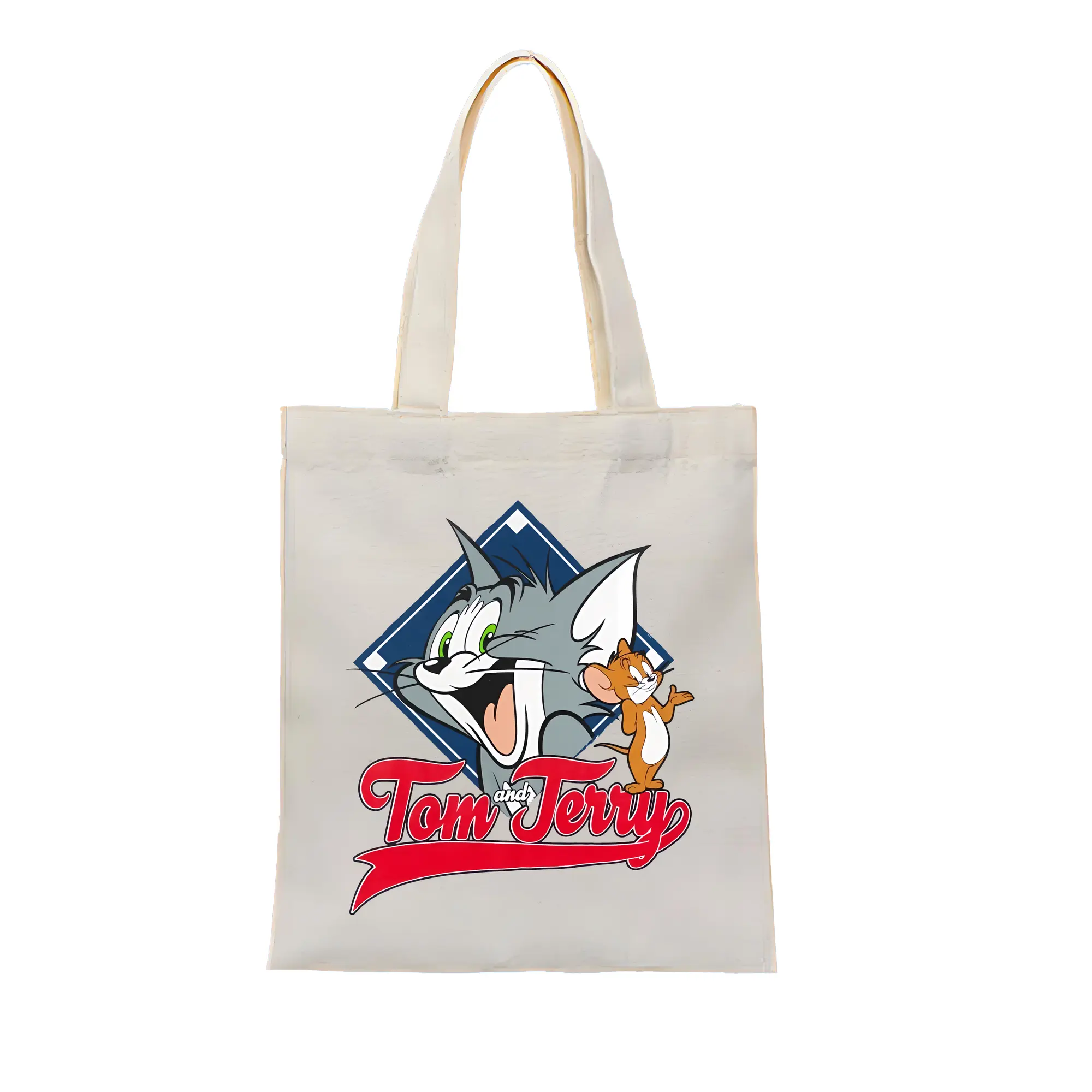 トムとジェリー グッズ トム - 縦型キャンバス手提げバッグ(トートバッグ) ・ キャンバス素材 ・ ショッピング用 ・ 軽量 丈夫 お手入れ簡単