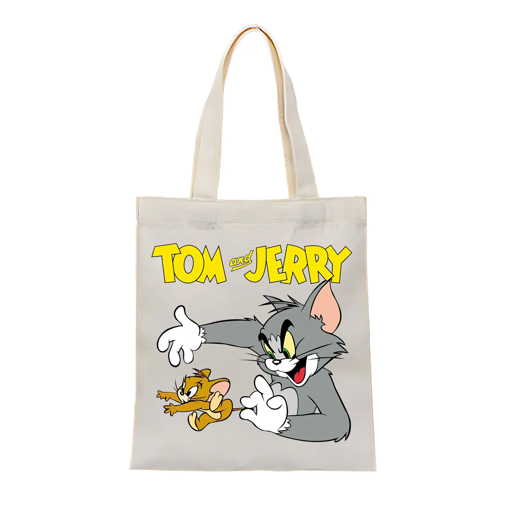 トムとジェリー グッズ トム - 縦型キャンバス手提げバッグ(トートバッグ) ・ キャンバス素材 ・ ショッピング用 ・ 軽量 丈夫 お手入れ簡単