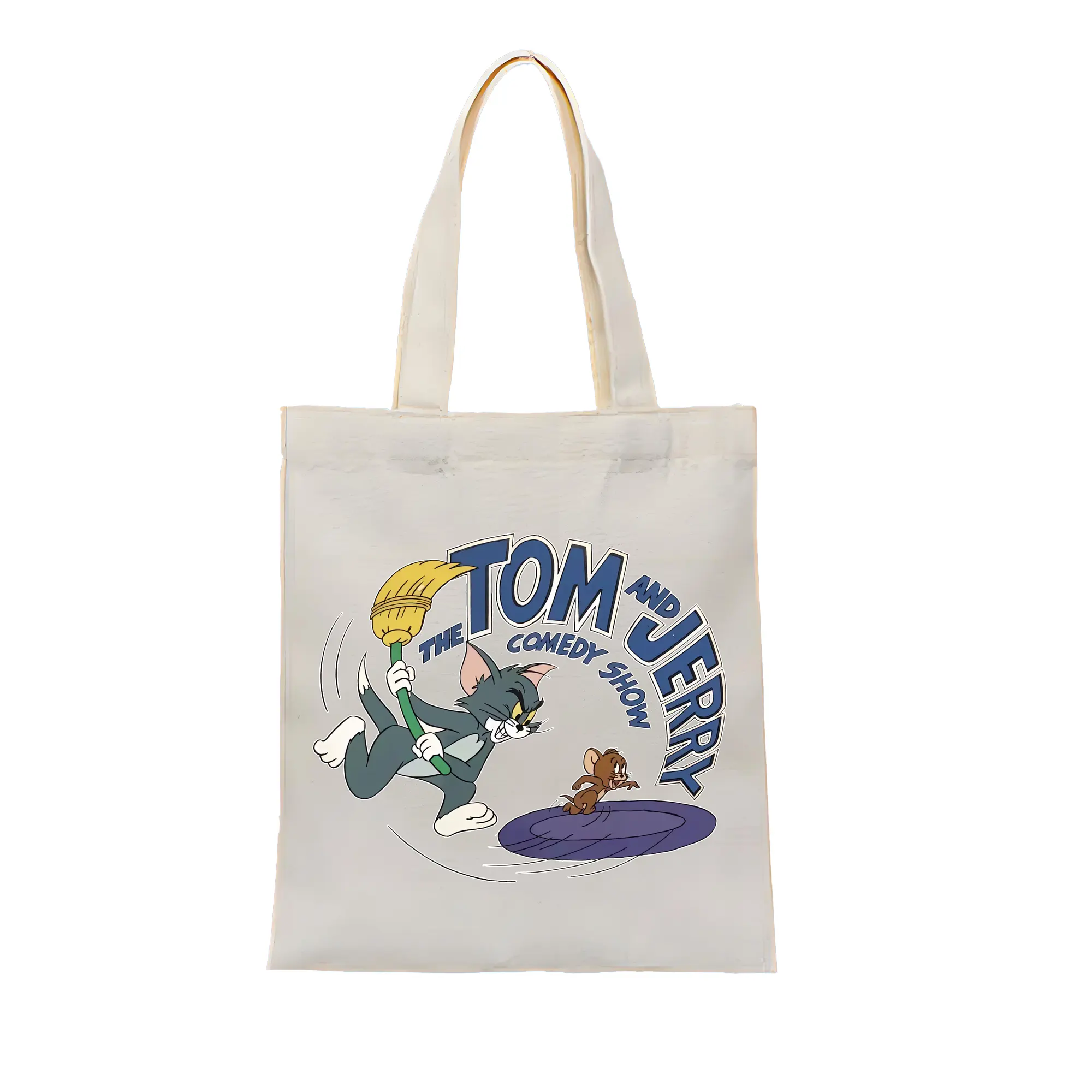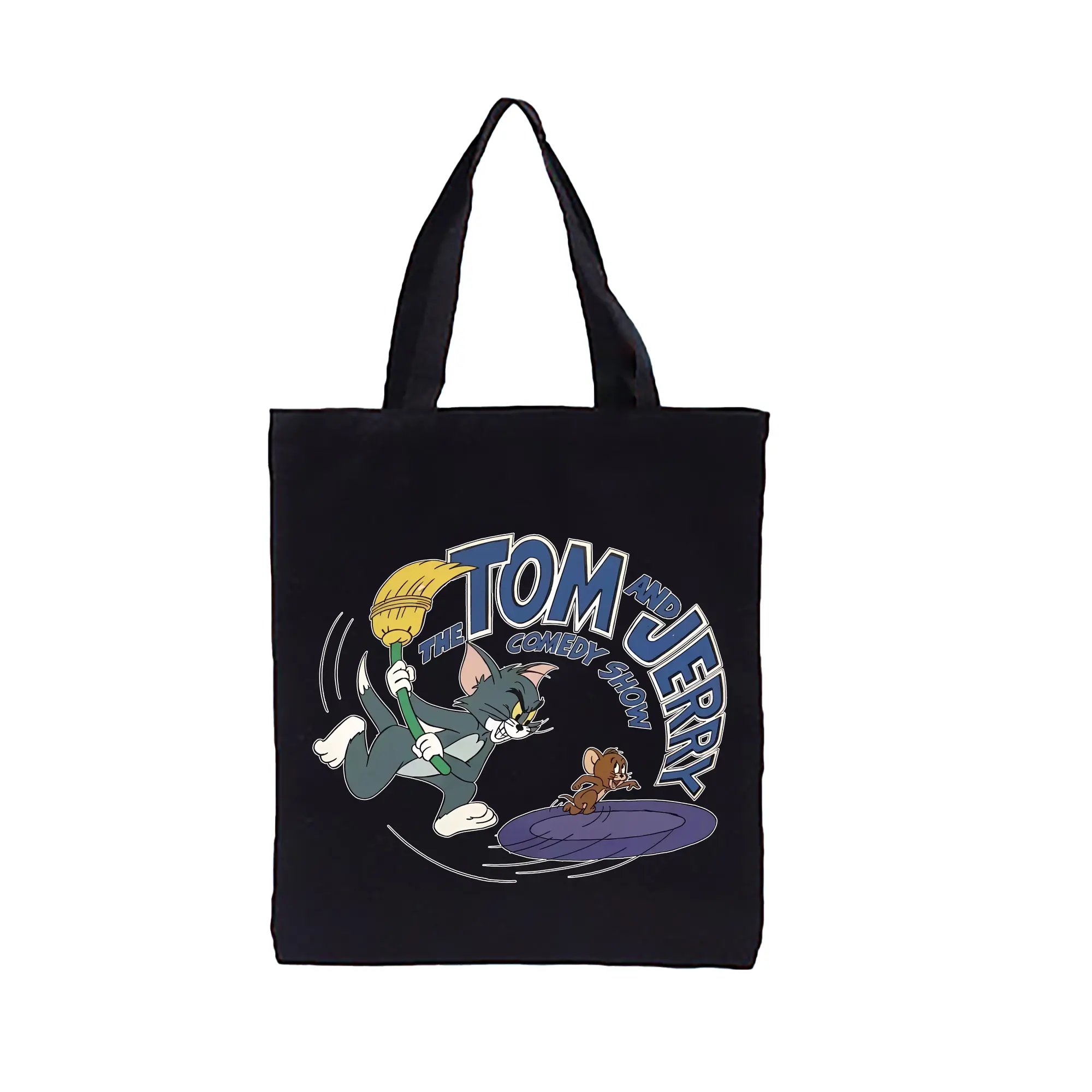 トムとジェリー グッズ トム - 縦型キャンバス手提げバッグ(トートバッグ) ・ キャンバス素材 ・ ショッピング用 ・ 軽量 丈夫 お手入れ簡単