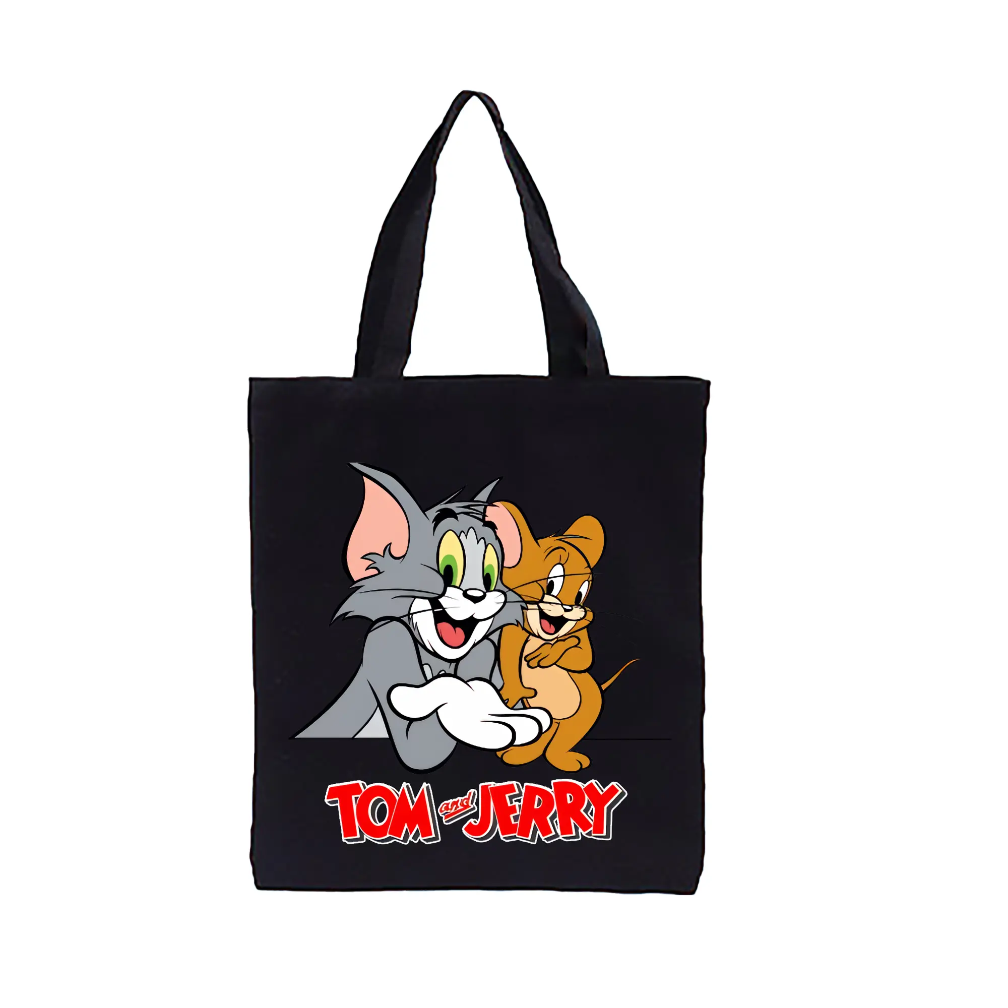 トムとジェリー グッズ トム - 縦型キャンバス手提げバッグ(トートバッグ) ・ キャンバス素材 ・ ショッピング用 ・ 軽量 丈夫 お手入れ簡単