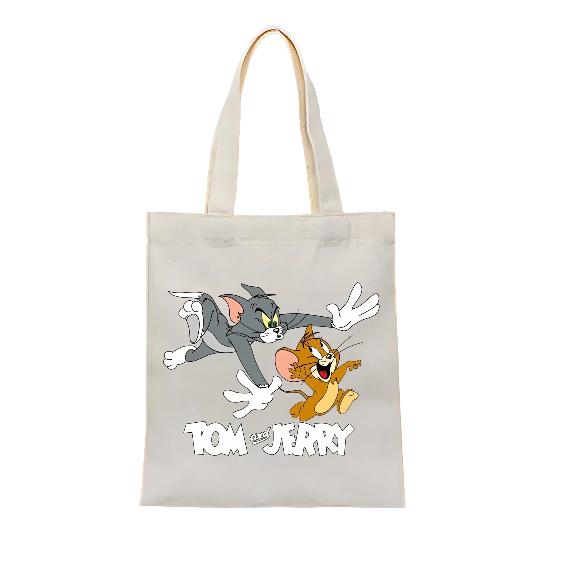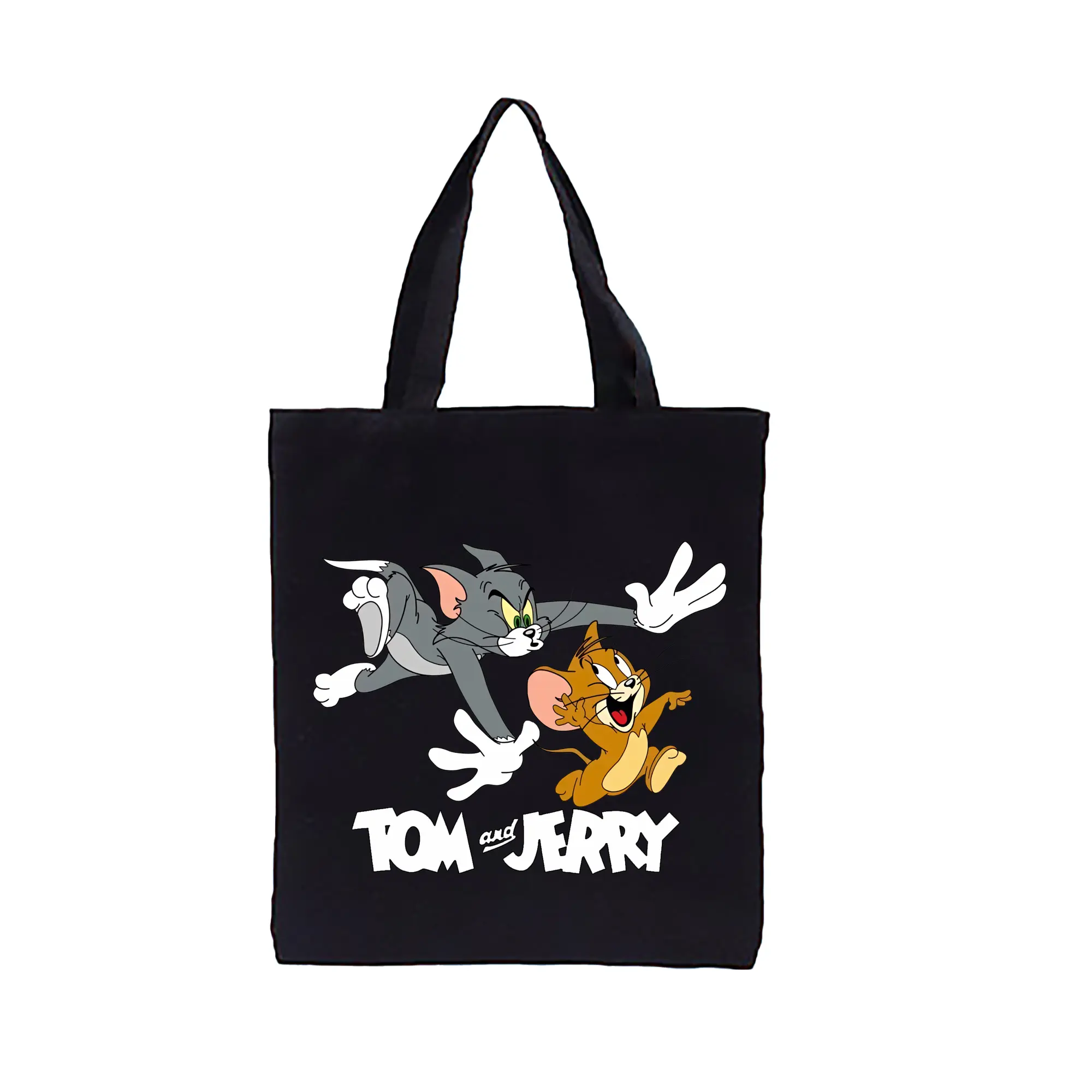 トムとジェリー グッズ トム - 縦型キャンバス手提げバッグ(トートバッグ) ・ キャンバス素材 ・ ショッピング用 ・ 軽量 丈夫 お手入れ簡単