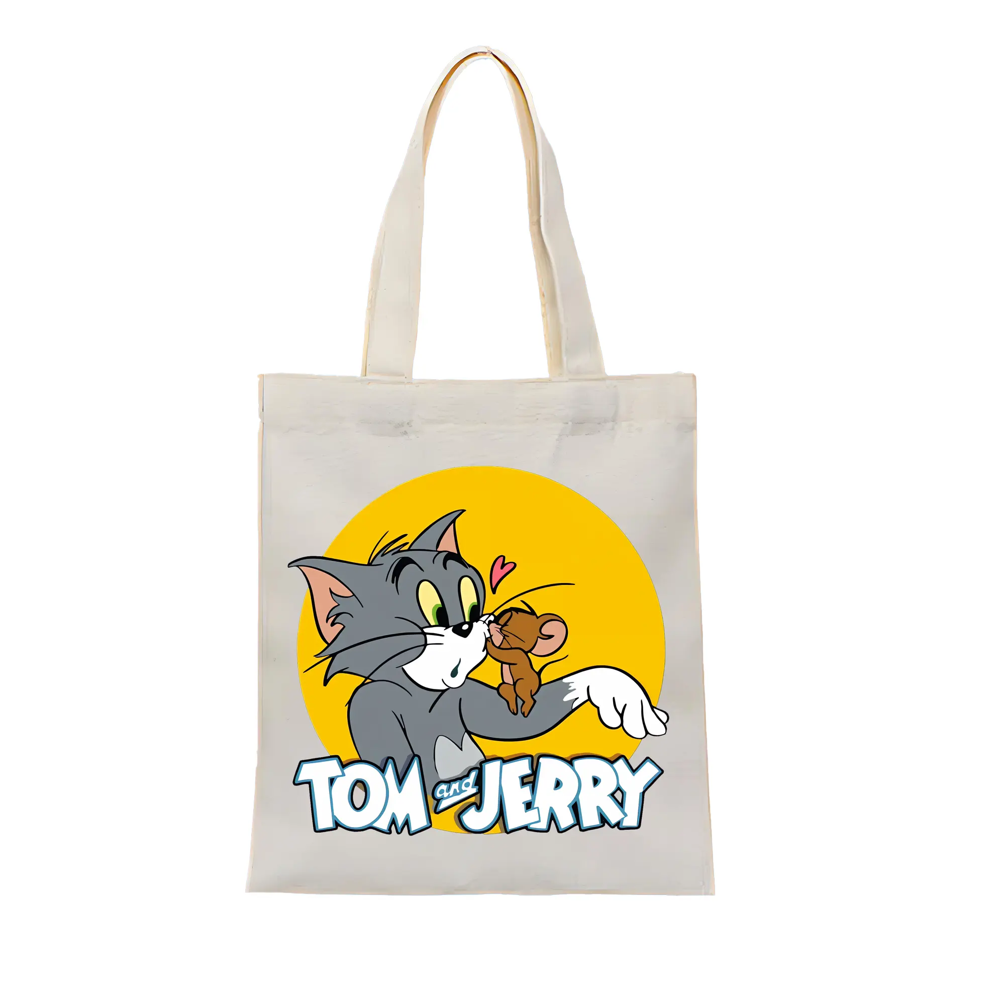 トムとジェリー グッズ トム - 縦型キャンバス手提げバッグ(トートバッグ) ・ キャンバス素材 ・ ショッピング用 ・ 軽量 丈夫 お手入れ簡単