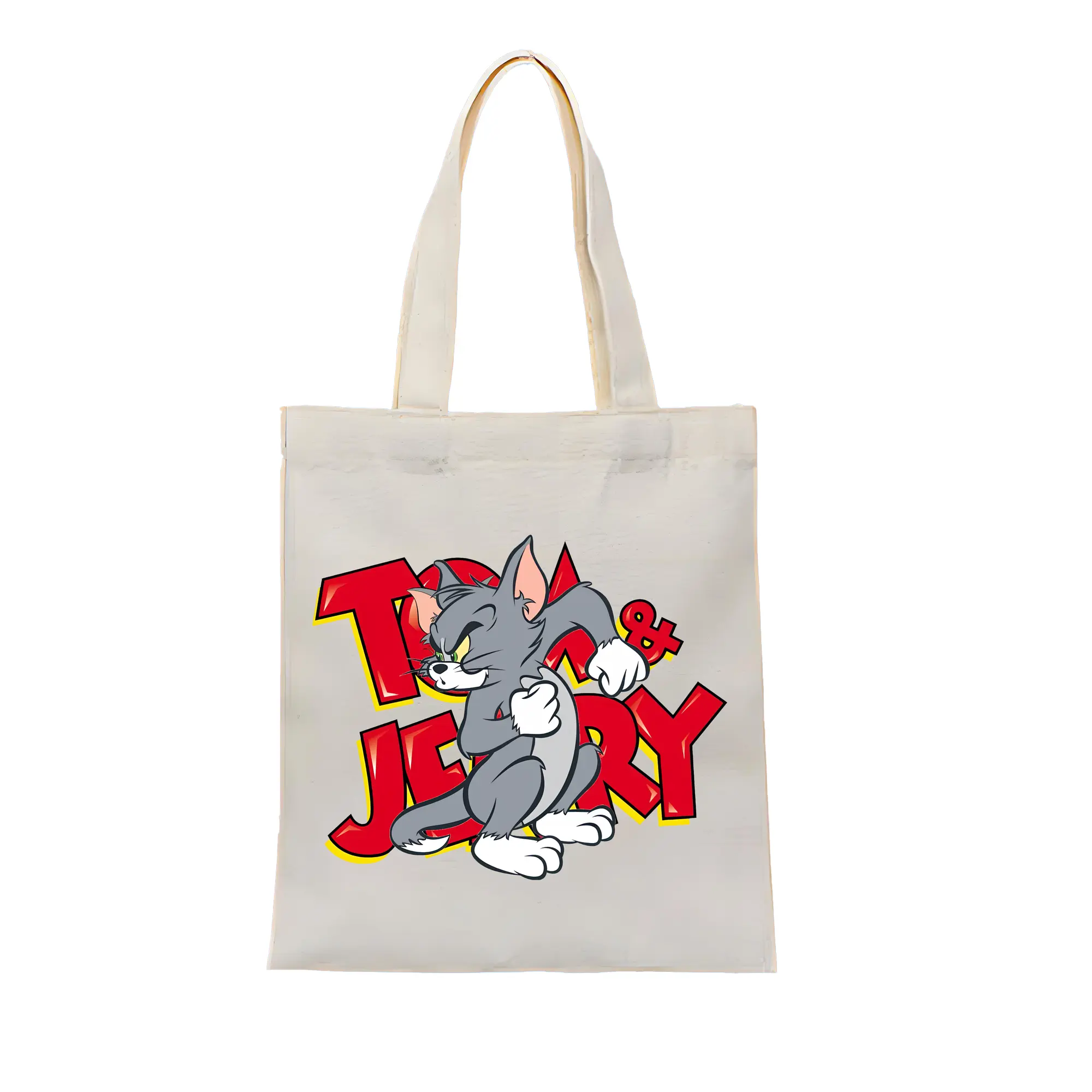 トムとジェリー グッズ トム - 縦型キャンバス手提げバッグ(トートバッグ) ・ キャンバス素材 ・ ショッピング用 ・ 軽量 丈夫 お手入れ簡単