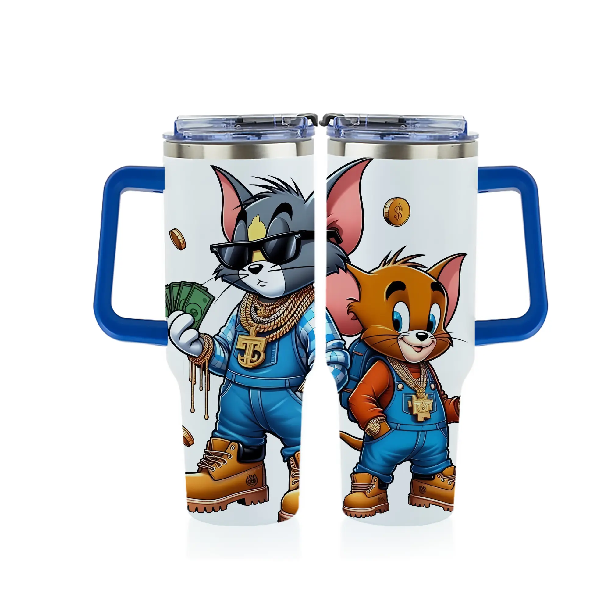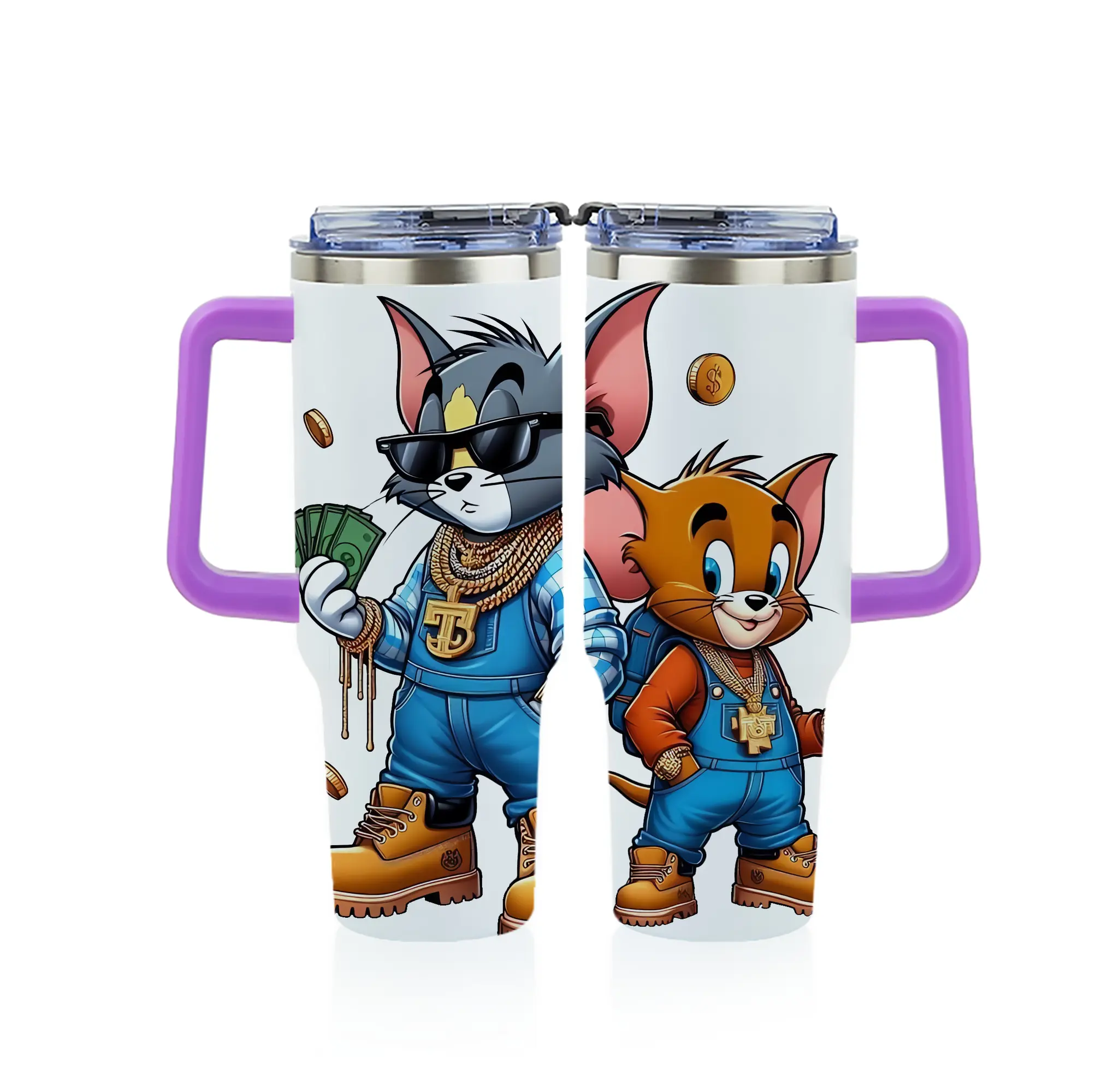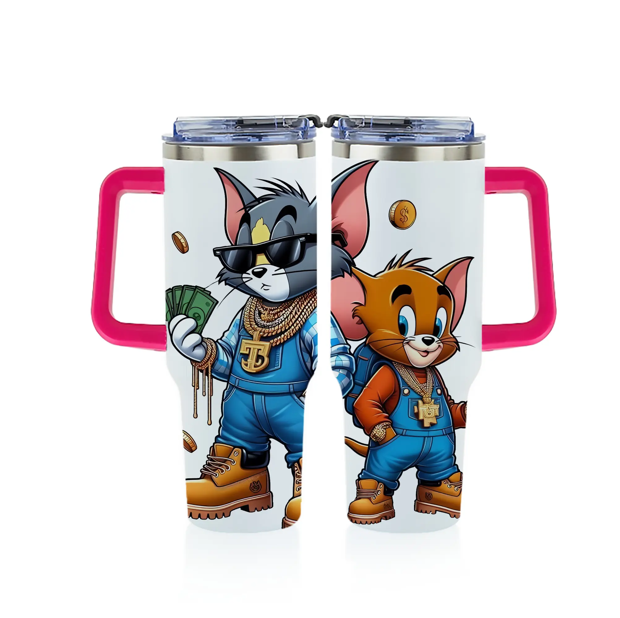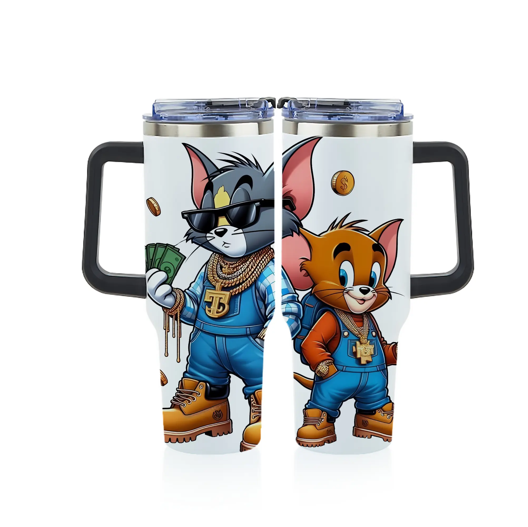 トムとジェリー グッズ ジェリー - 1200mL フルプリント車用タンブラー ・ 304ステンレス 内側 ・ 201ステンレス 外側 ・ 保温 保冷 ・ 通勤 ドライブ アウトドア用