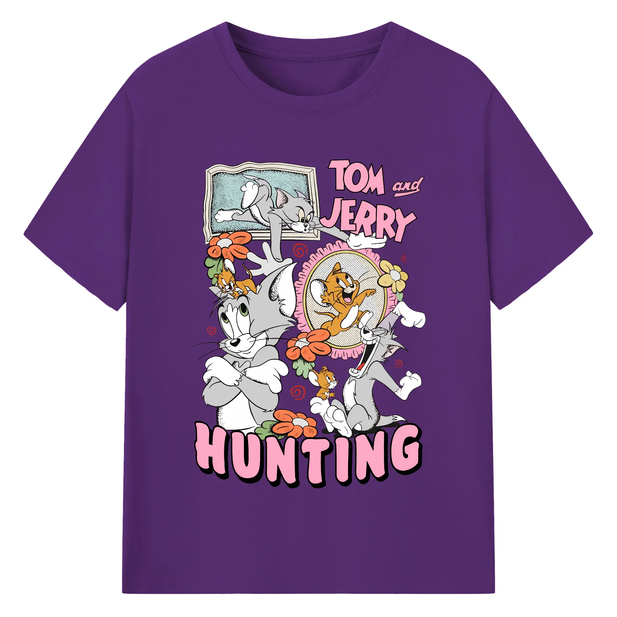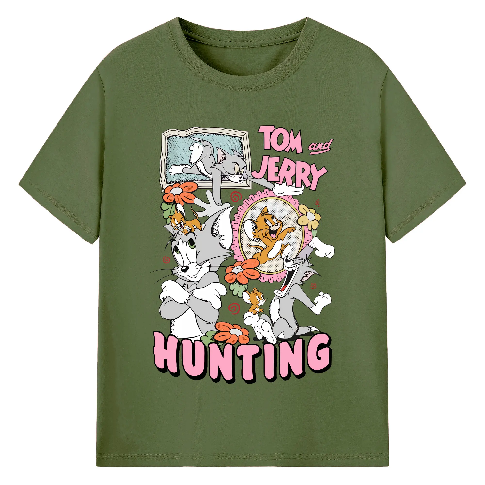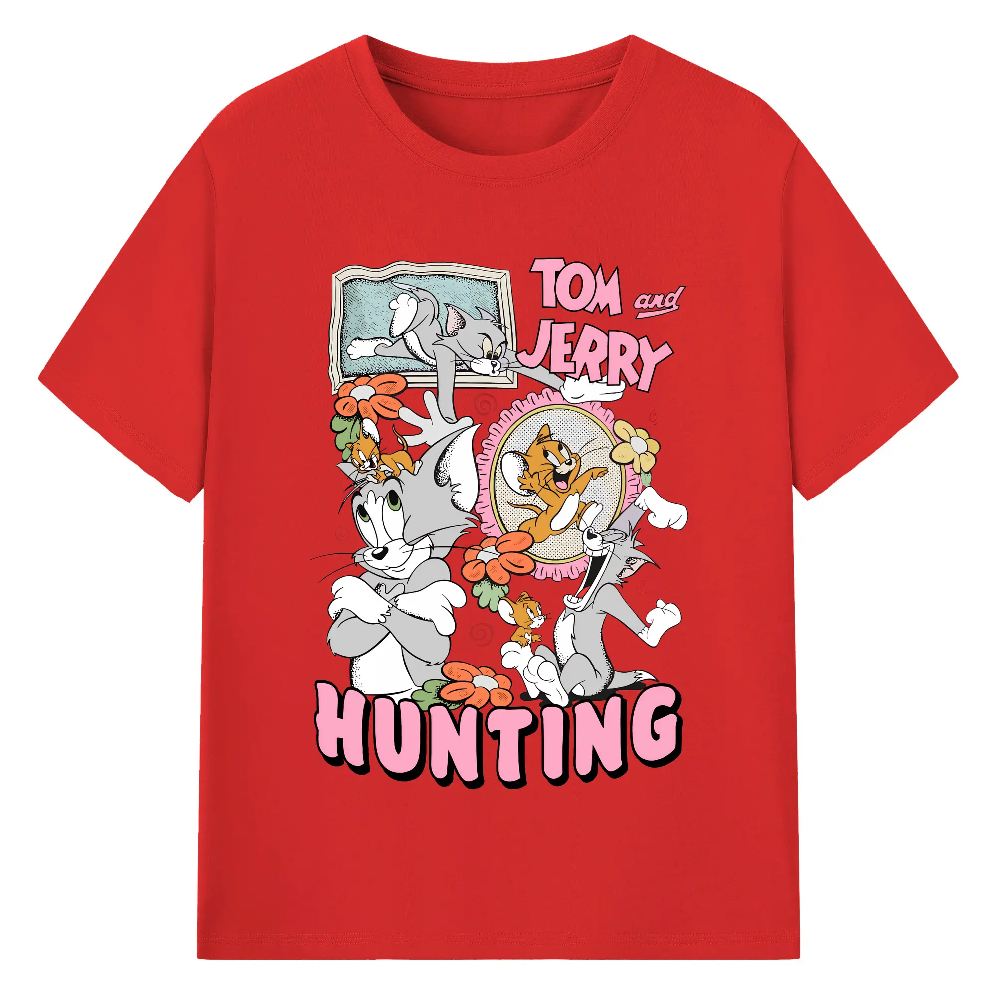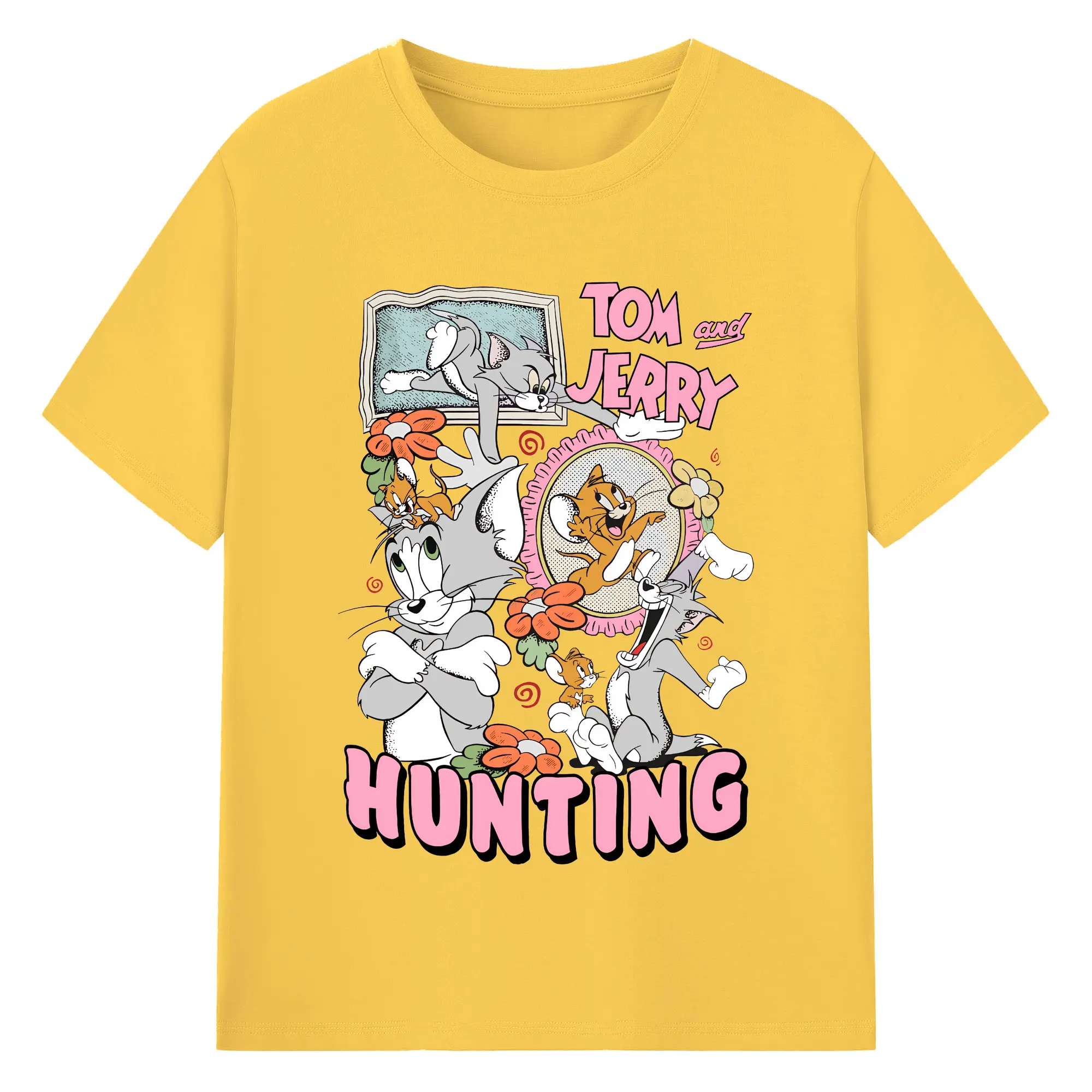 トムとジェリー グッズ ジェリー - 綿100% 半袖Tシャツ ・ バックプリント ・ 快適 通気性 ・ 日常使い 散歩 スポーツ用