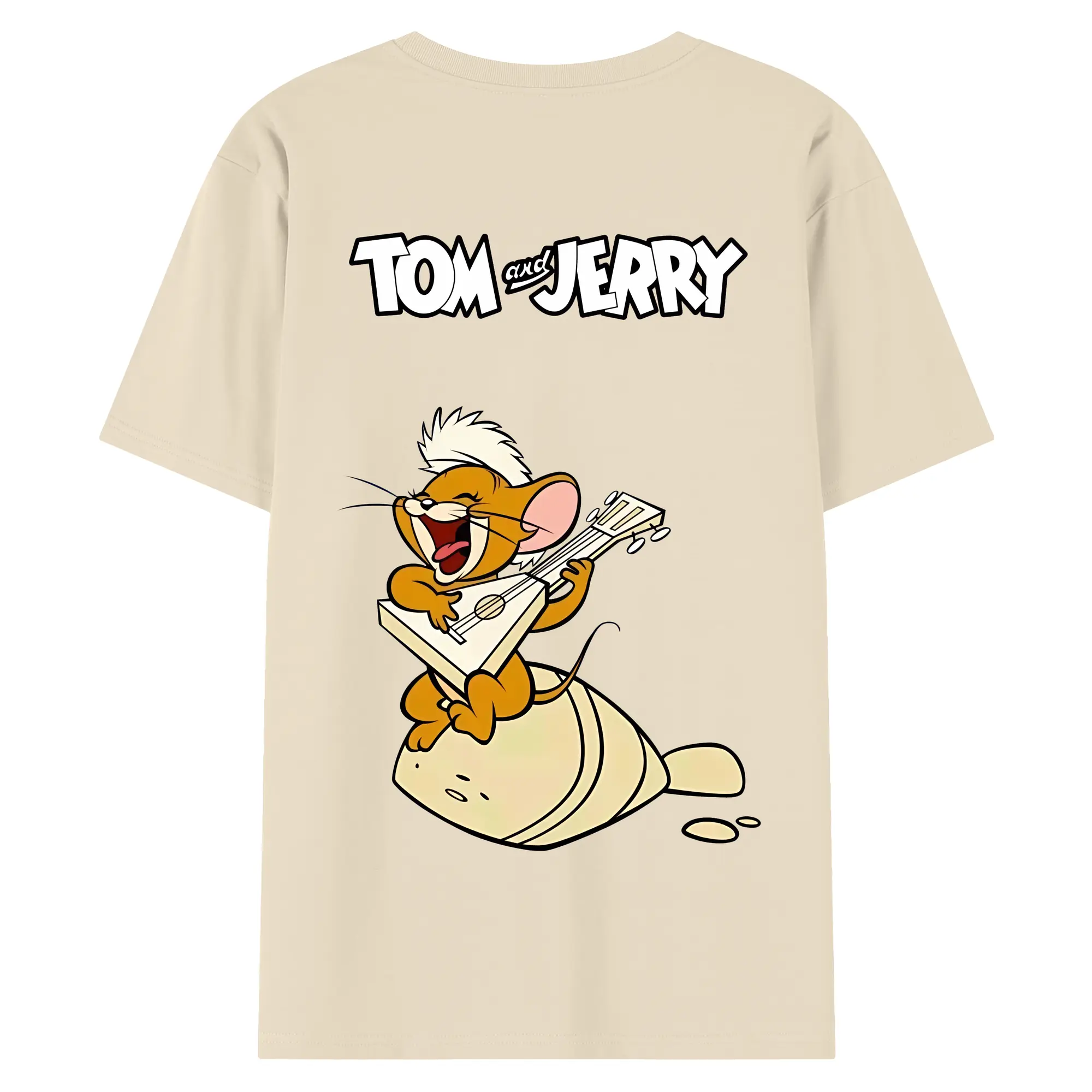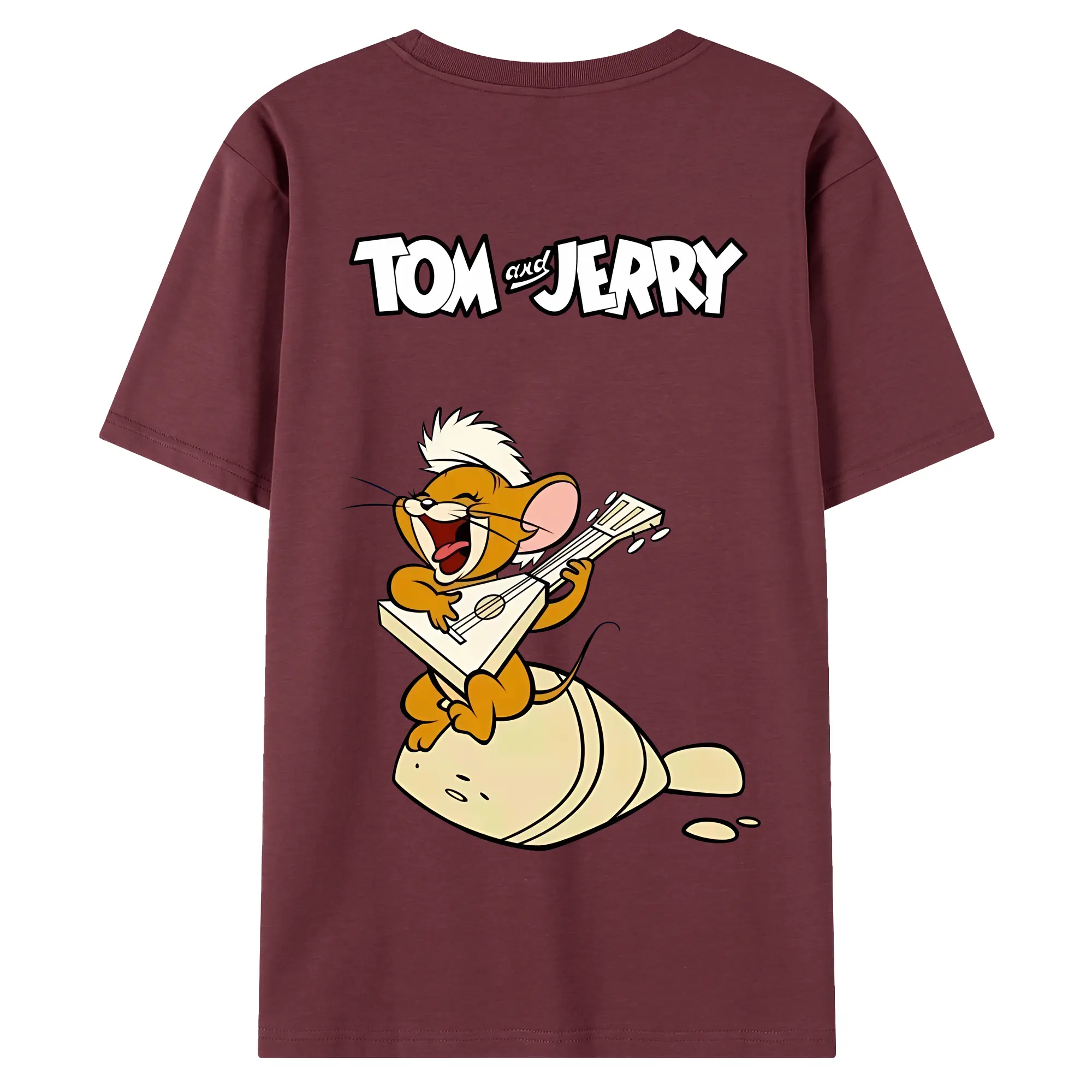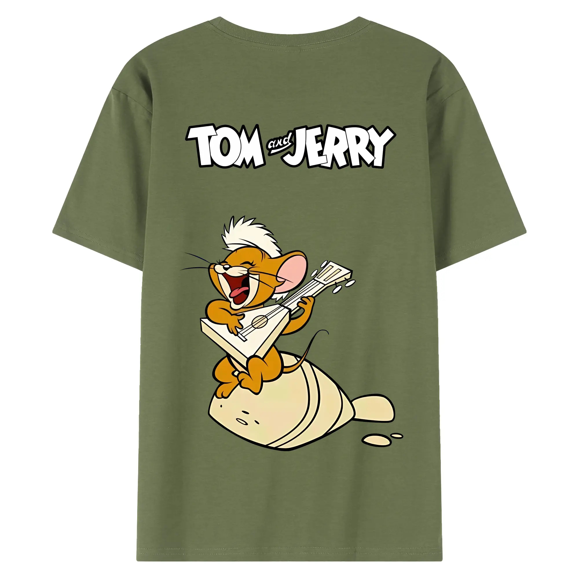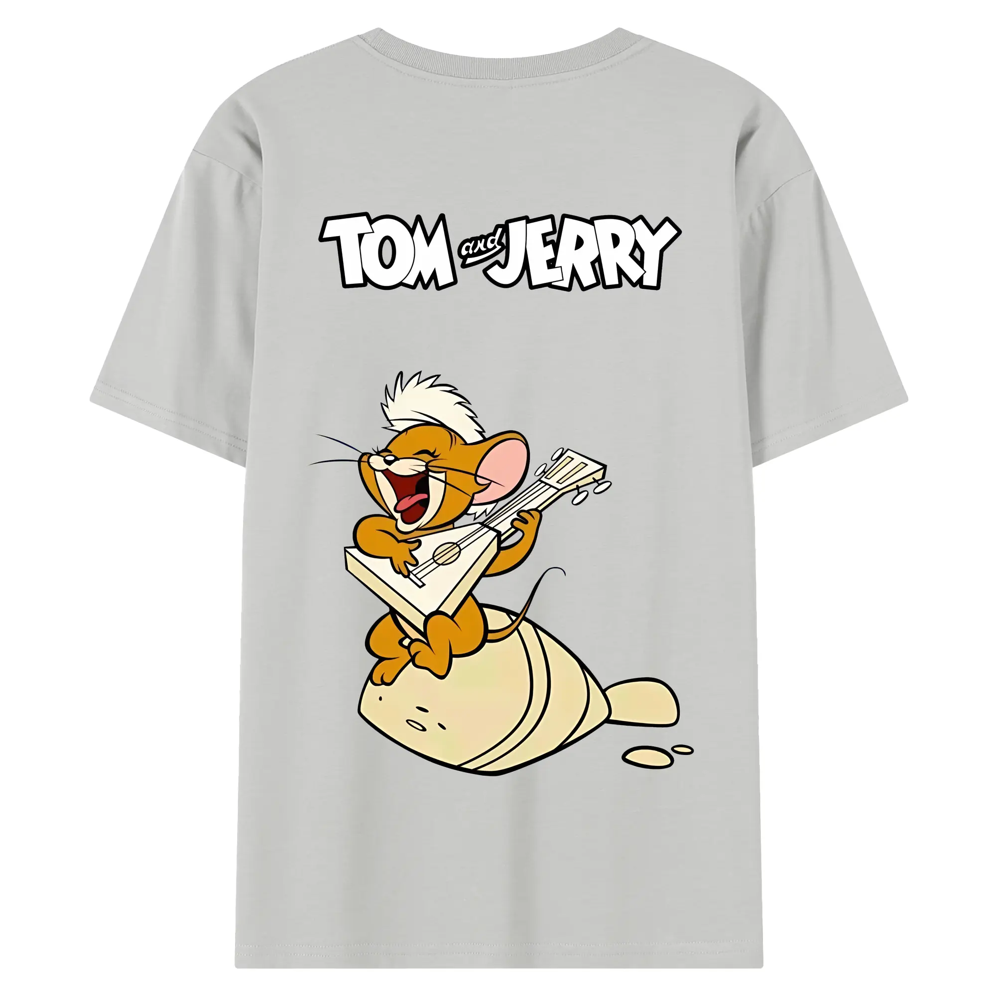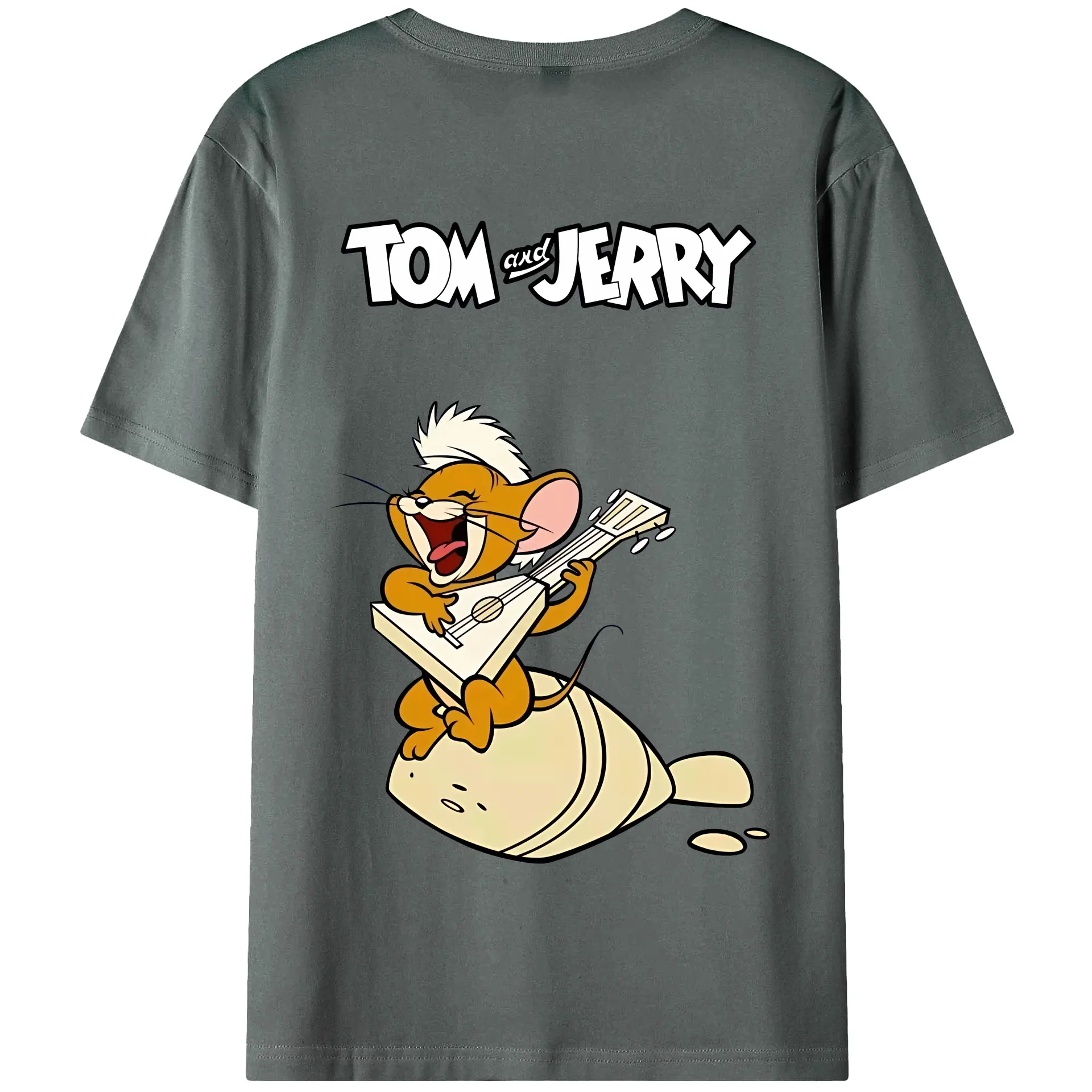 トムとジェリー グッズ ジェリー - 綿100% ヴィンテージ風 半袖Tシャツ ・ 背面プリント ・ 柔らか肌触り ・ 通気性 快適 ・ スポーツ カジュアル 外出用