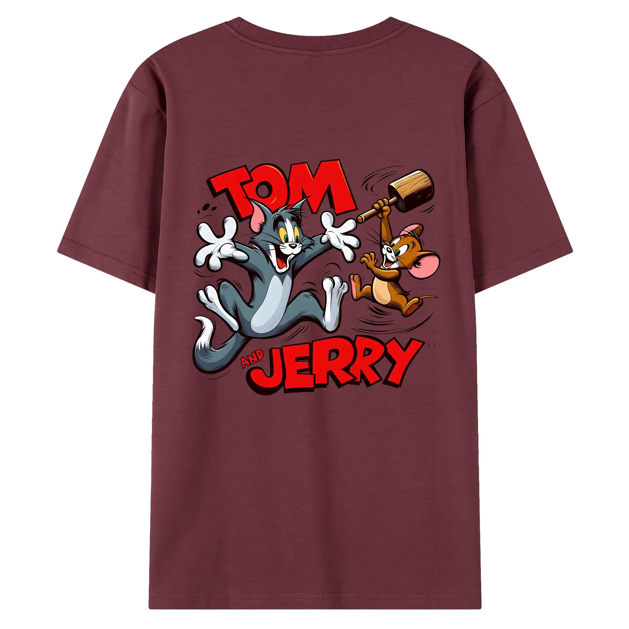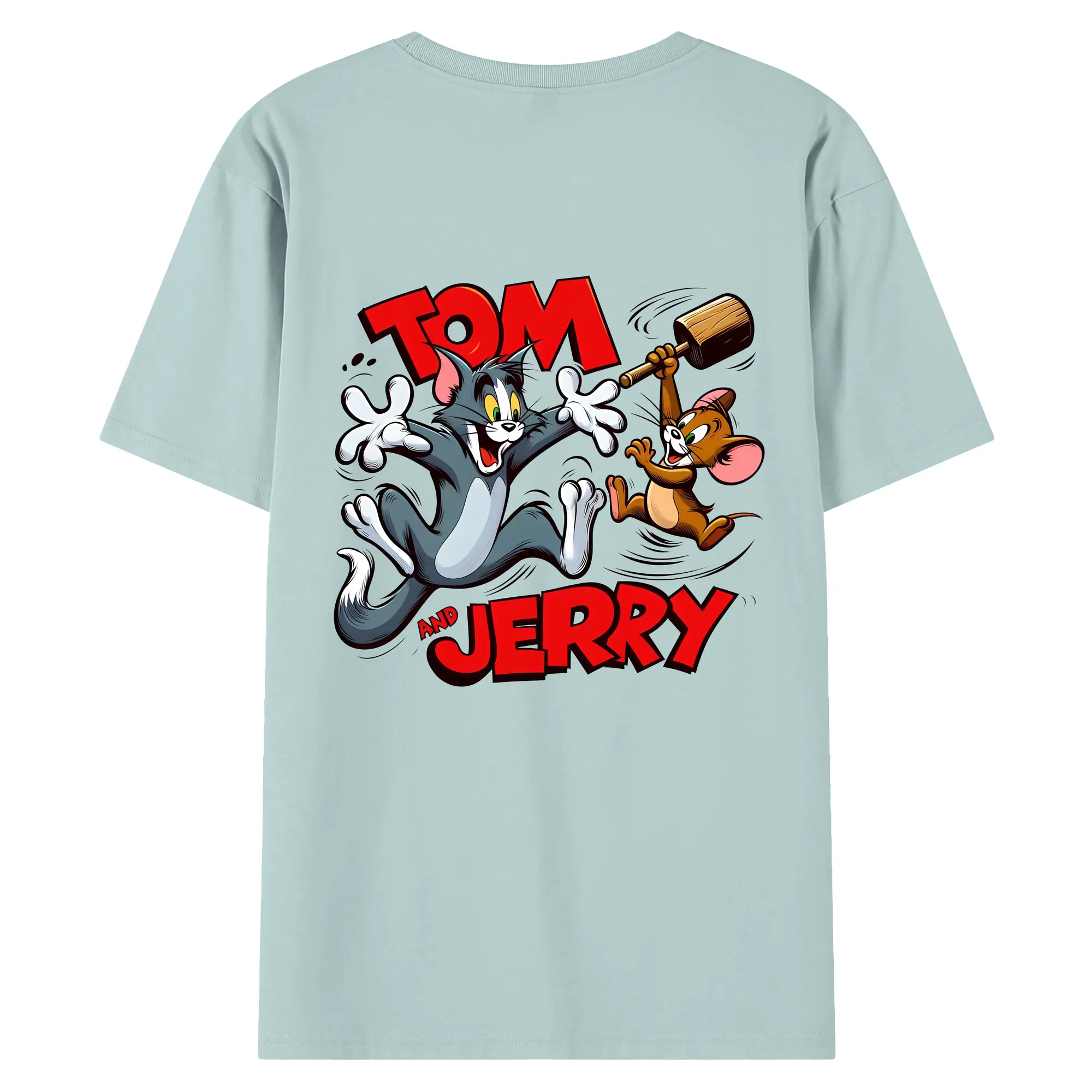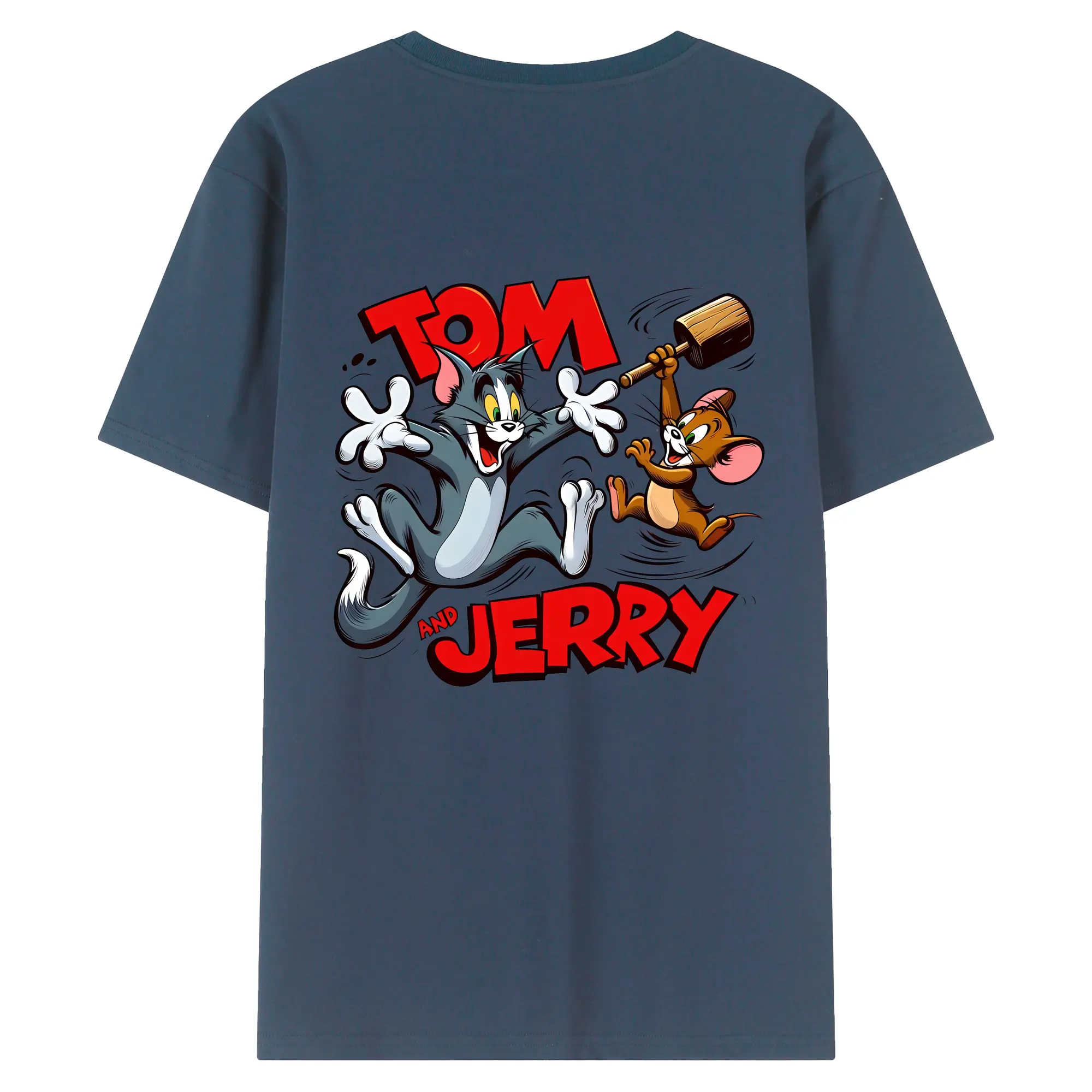 トムとジェリー グッズ ジェリー - 綿100% ヴィンテージ風 半袖Tシャツ ・ 背面プリント ・ 柔らか肌触り ・ 通気性 快適 ・ スポーツ カジュアル 外出用