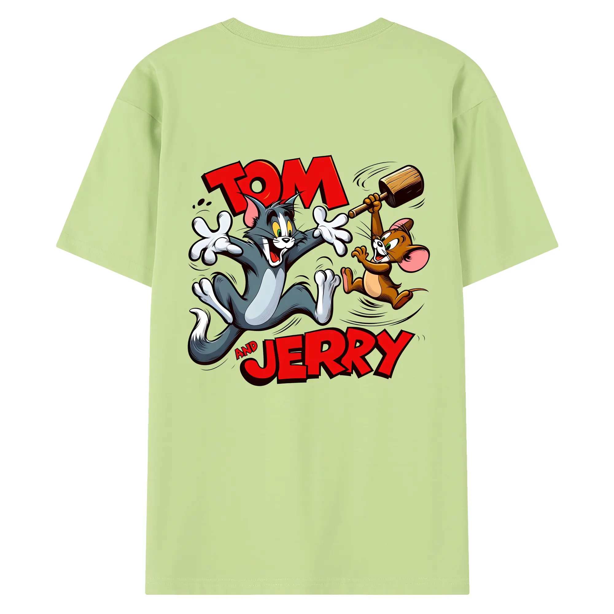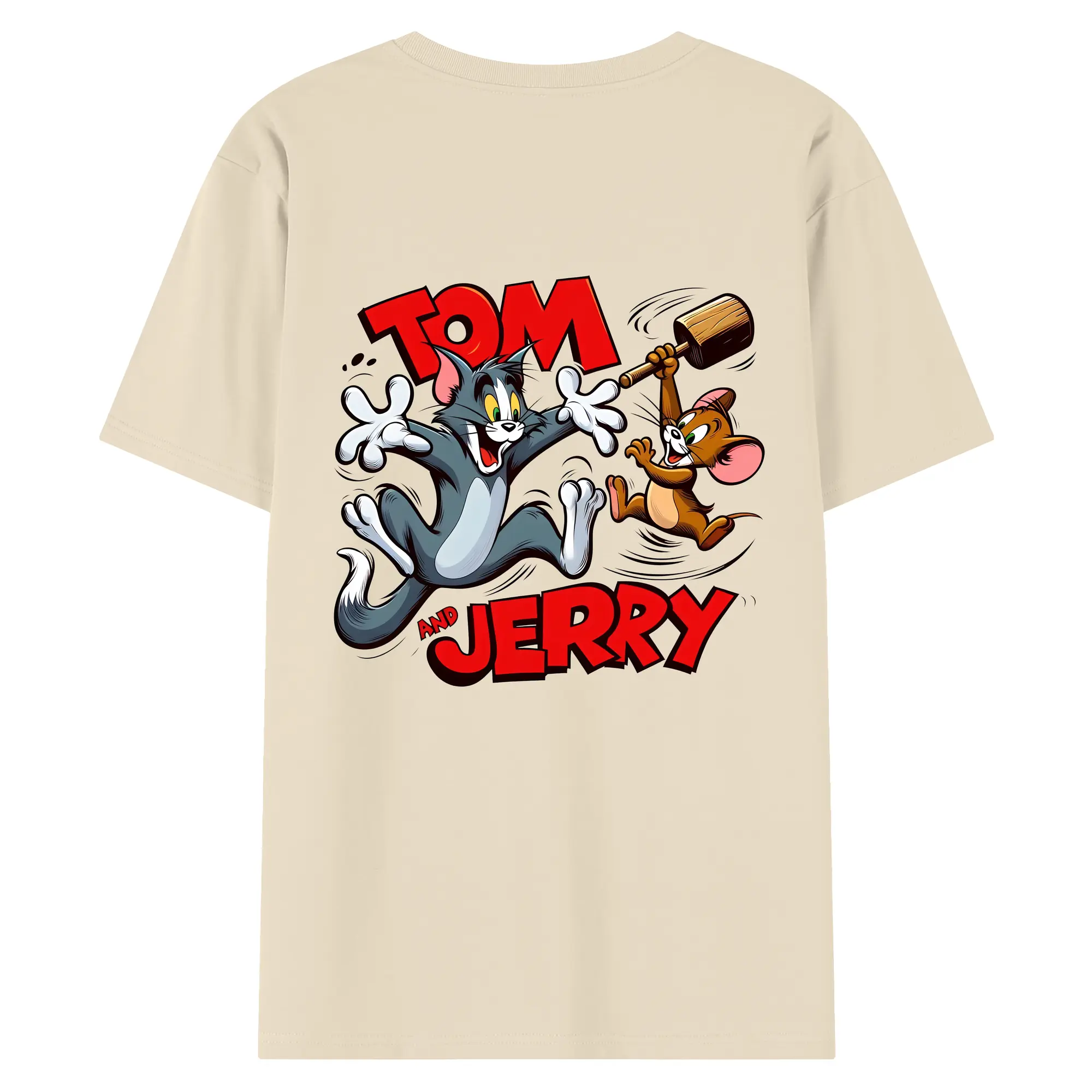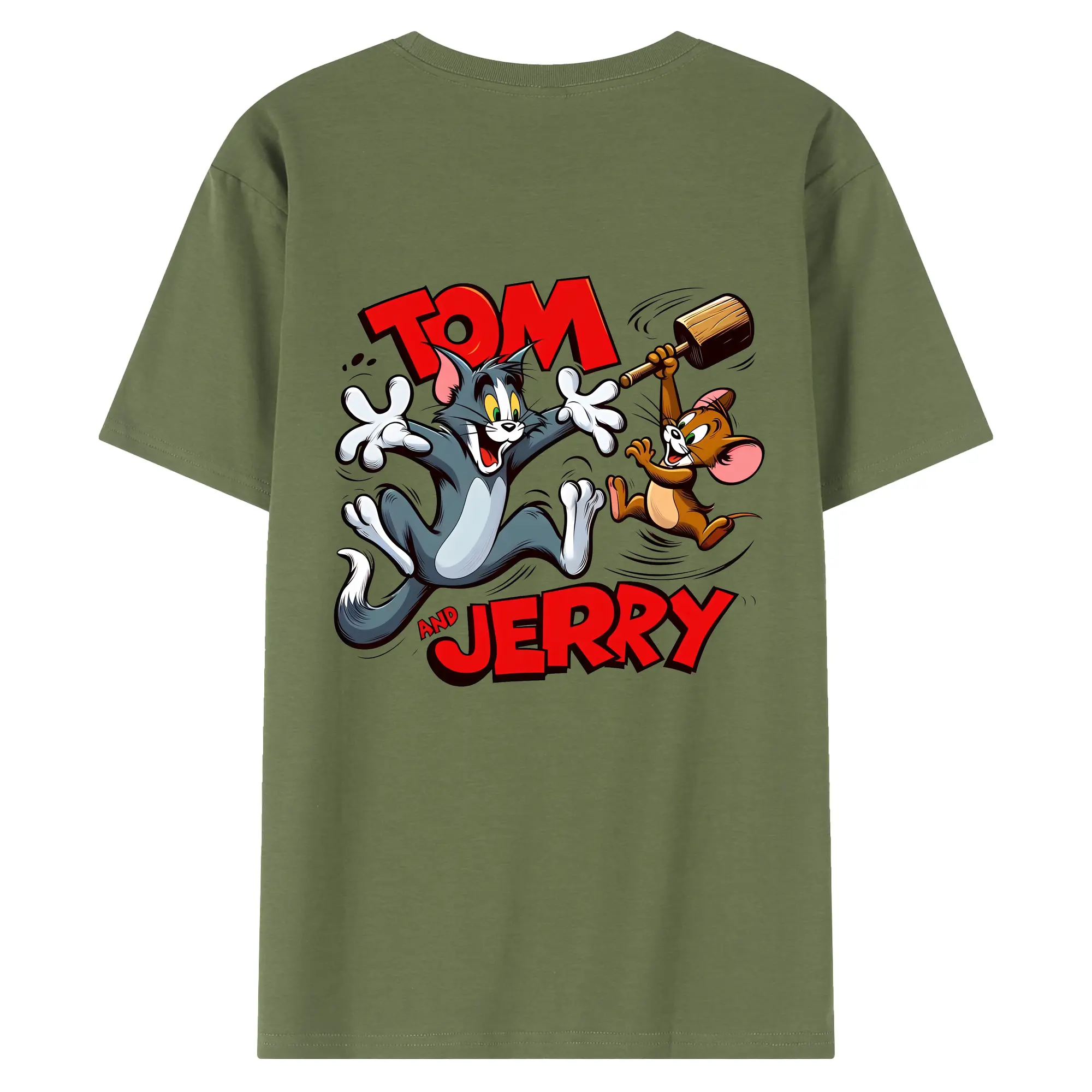 トムとジェリー グッズ ジェリー - 綿100% ヴィンテージ風 半袖Tシャツ ・ 背面プリント ・ 柔らか肌触り ・ 通気性 快適 ・ スポーツ カジュアル 外出用