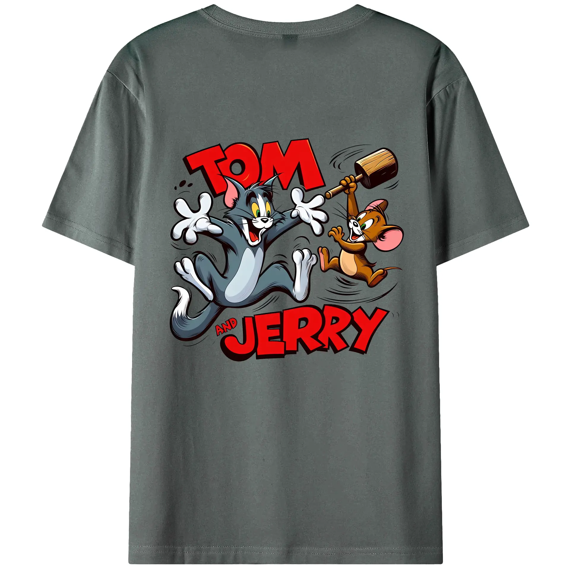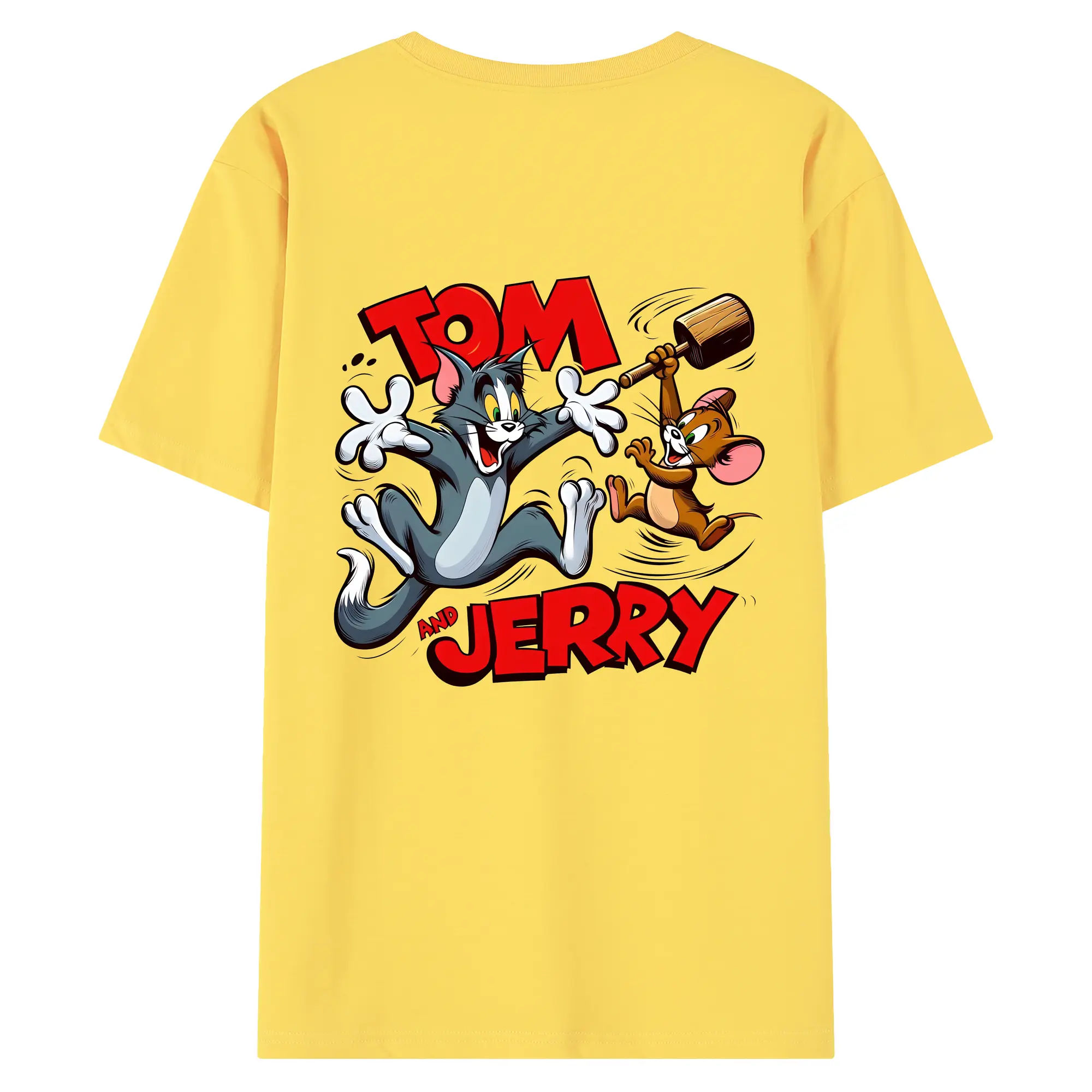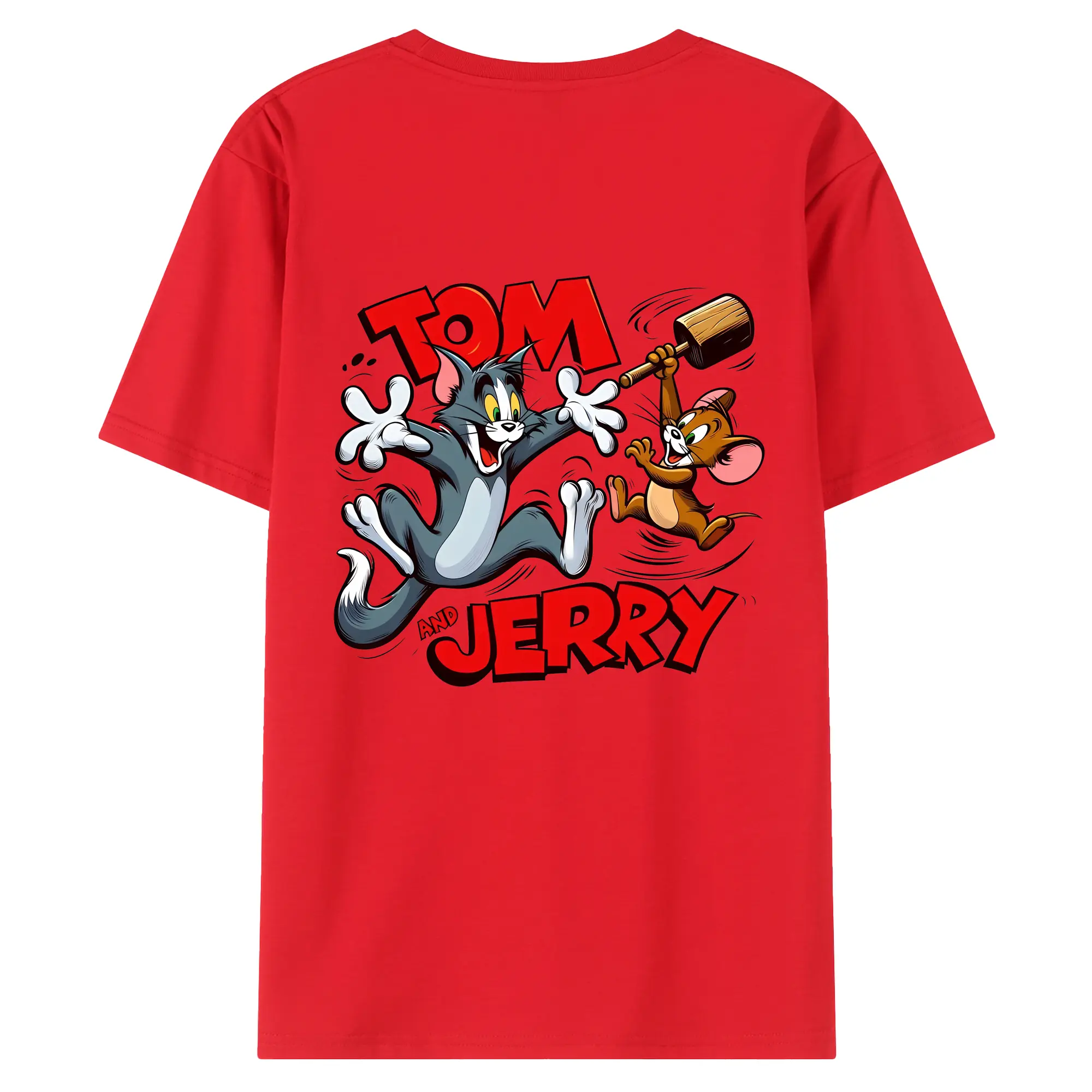 トムとジェリー グッズ ジェリー - 綿100% 半袖Tシャツ ・ フロントプリント ・ 快適 通気性 ・ 日常使い 散歩 スポーツ用