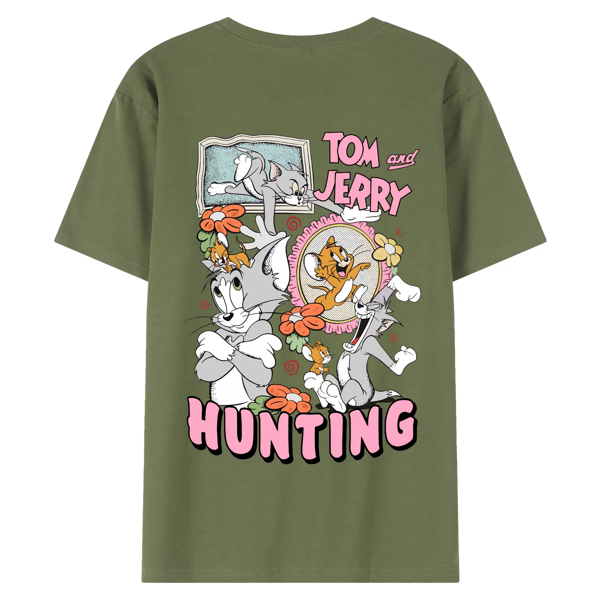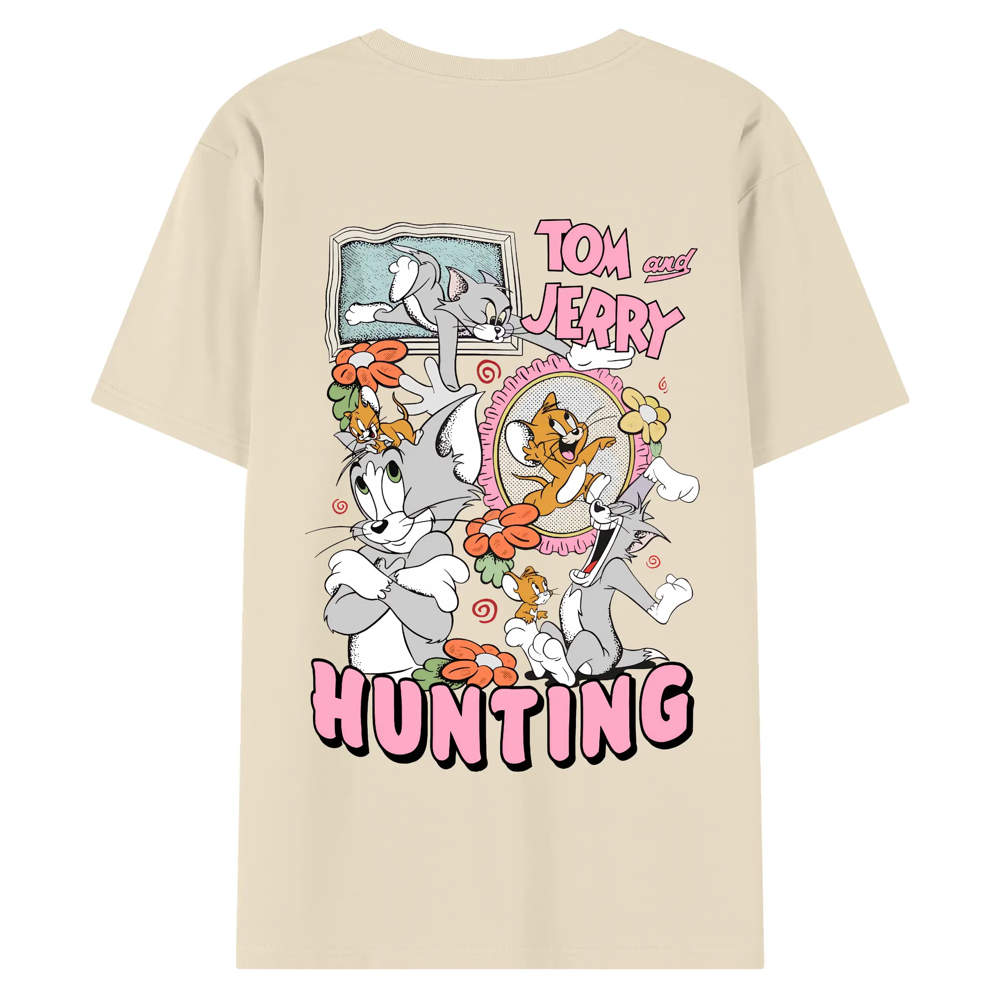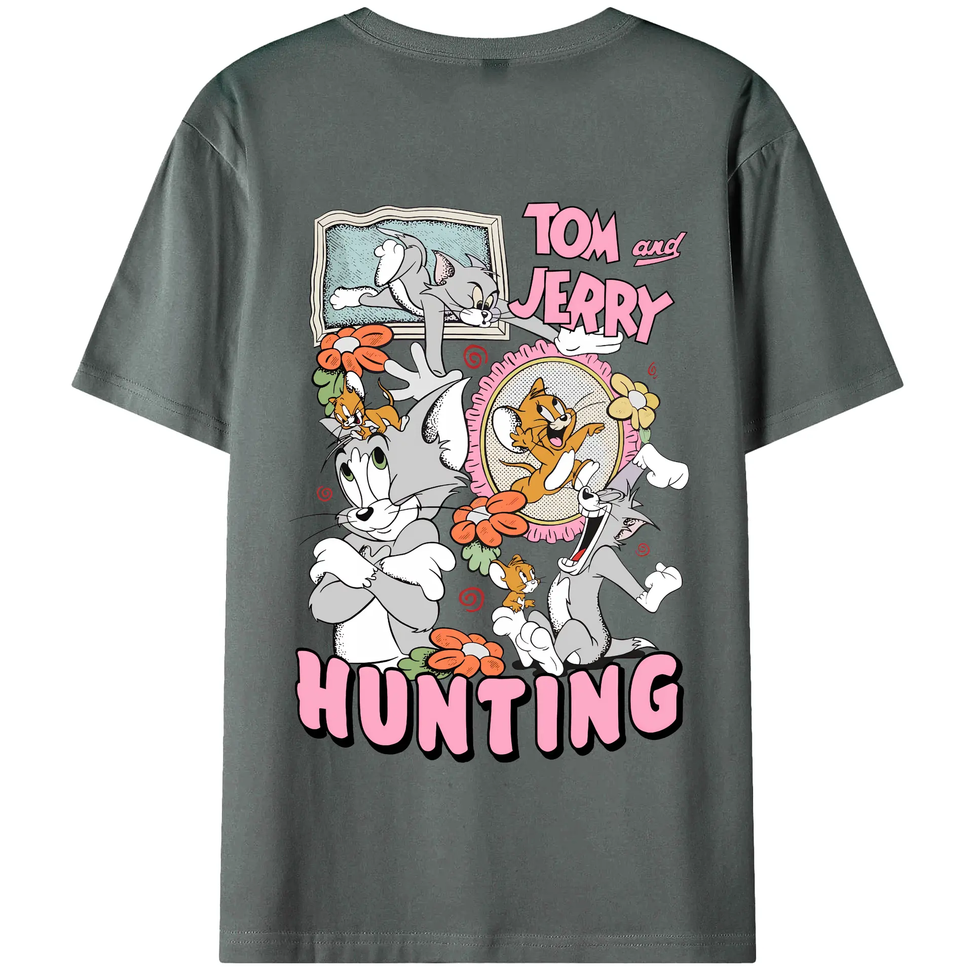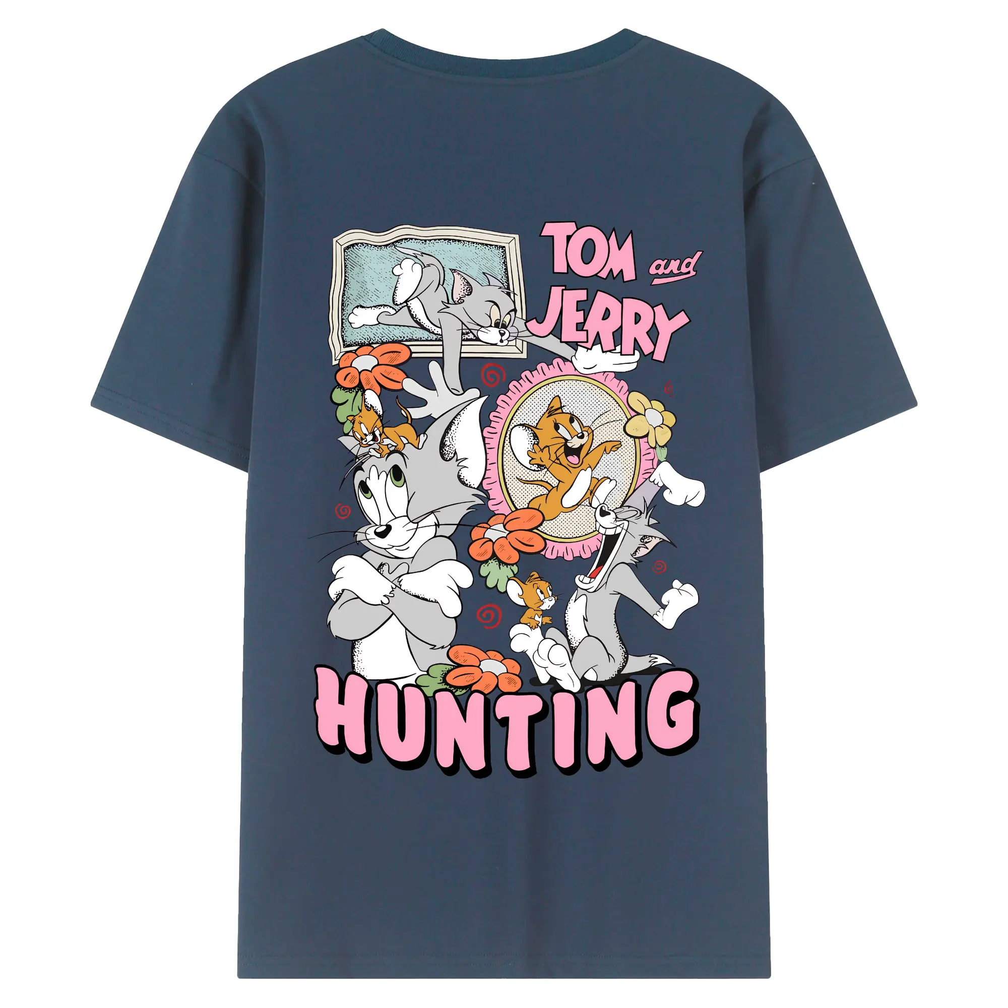 トムとジェリー グッズ ジェリー - 綿100% ヴィンテージ風 半袖Tシャツ ・ 背面プリント ・ 柔らか肌触り ・ 通気性 快適 ・ スポーツ カジュアル 外出用