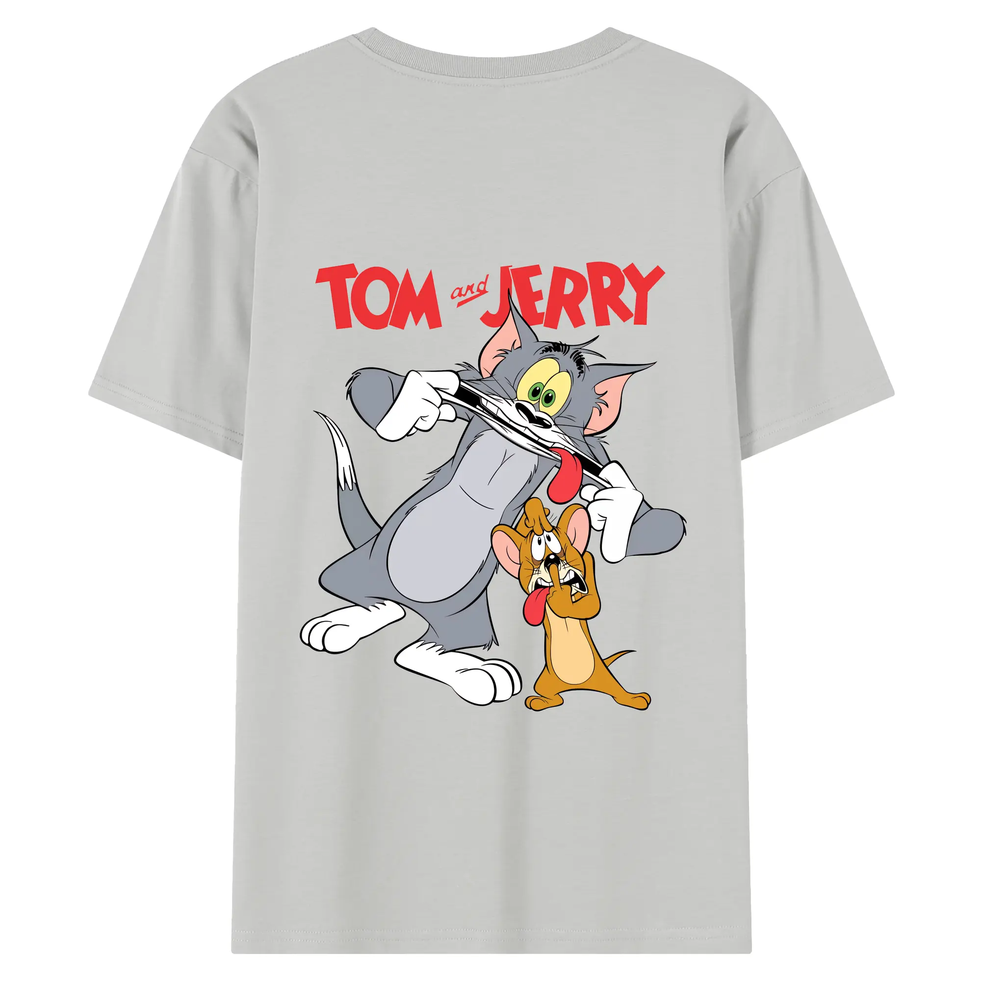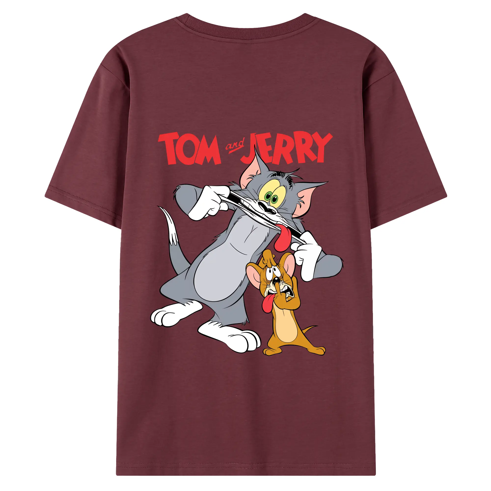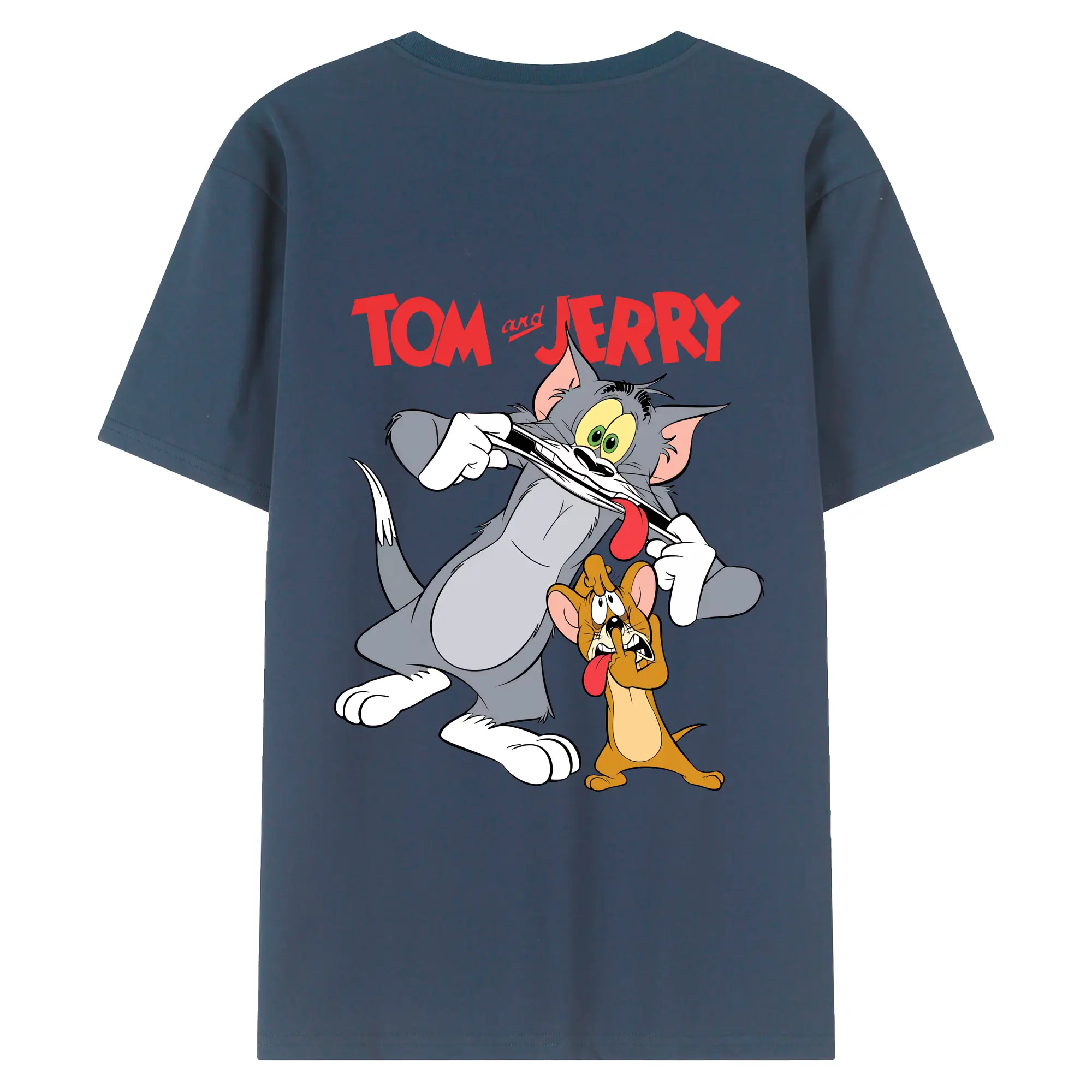 トムとジェリー グッズ ジェリー - 綿100% ヴィンテージ風 半袖Tシャツ ・ 背面プリント ・ 柔らか肌触り ・ 通気性 快適 ・ スポーツ カジュアル 外出用