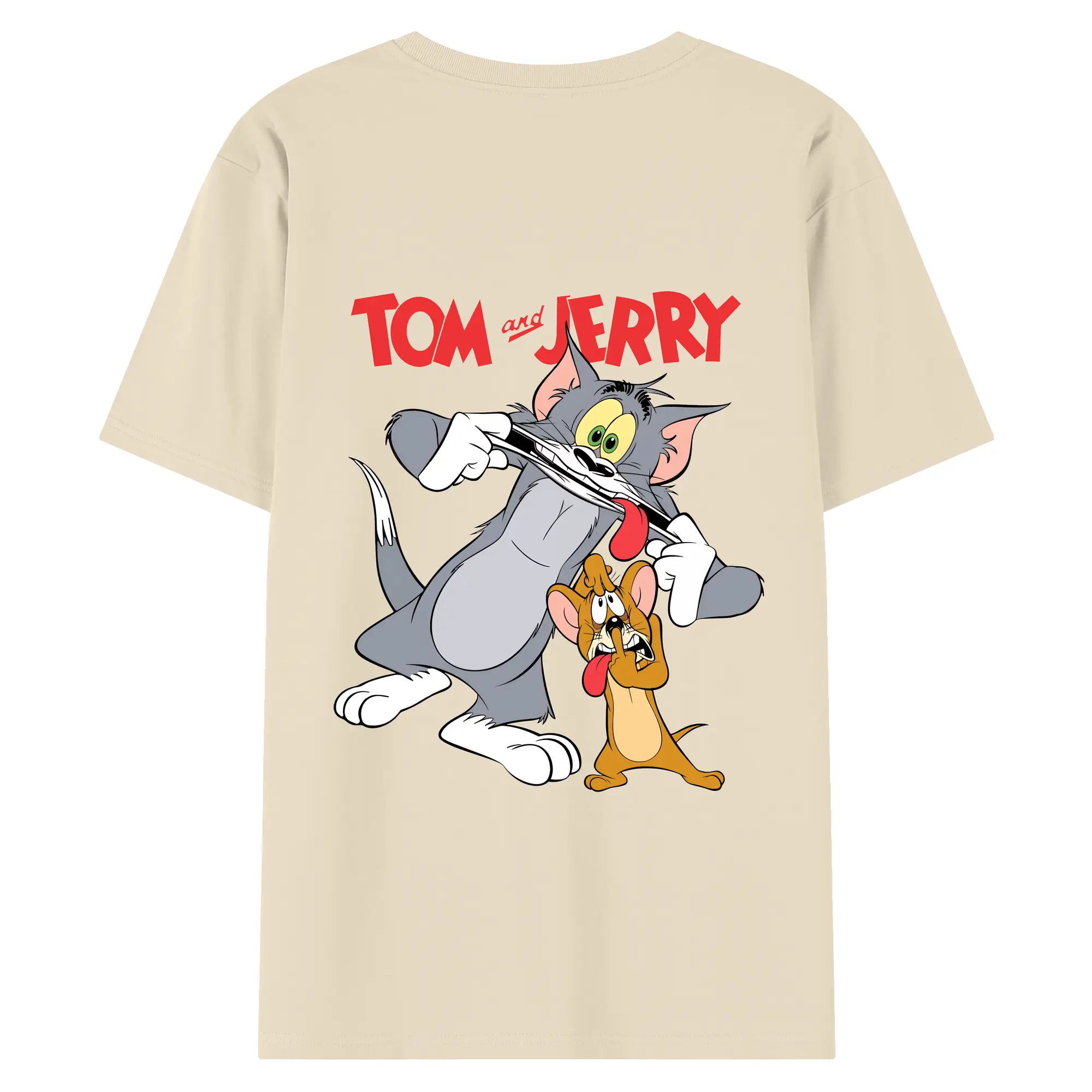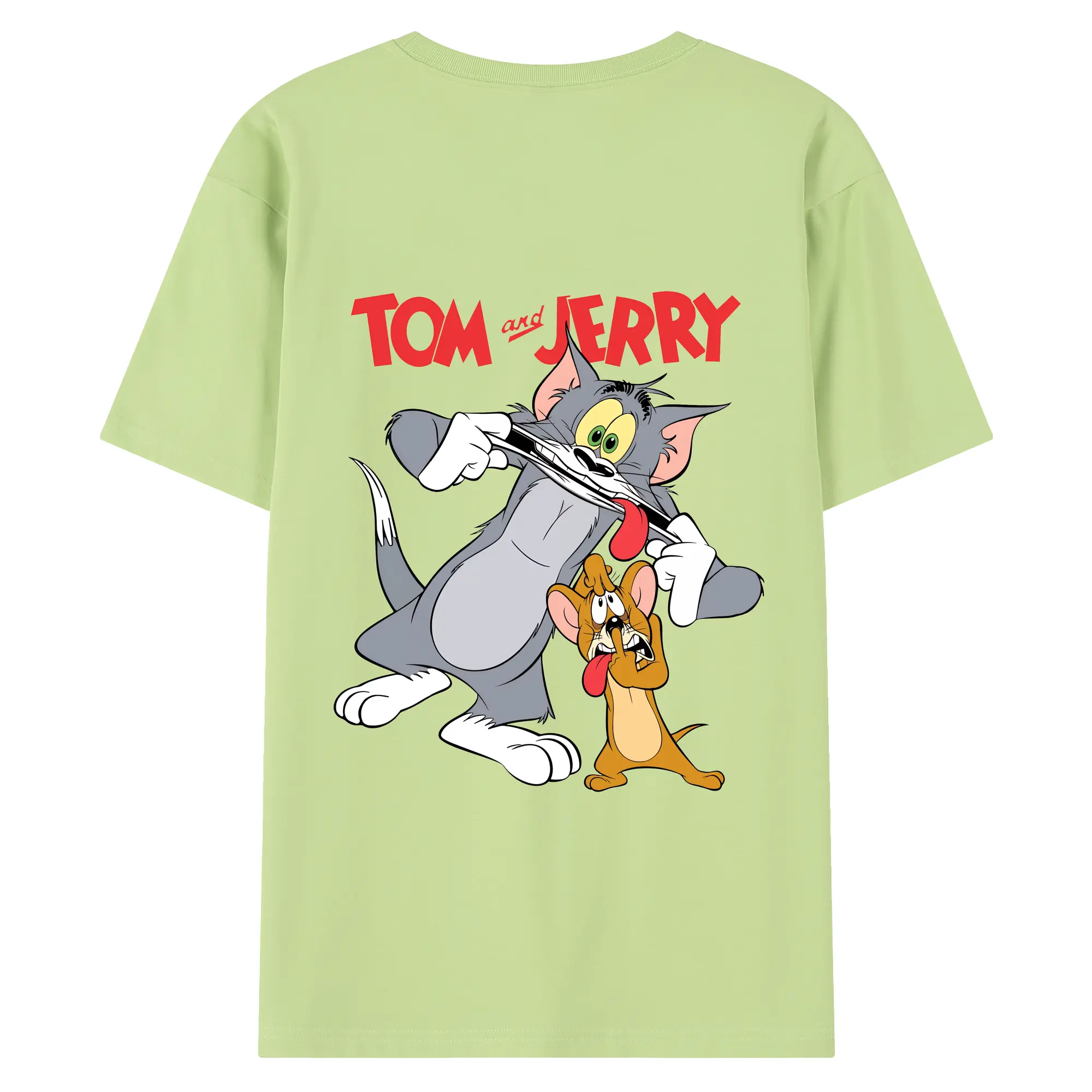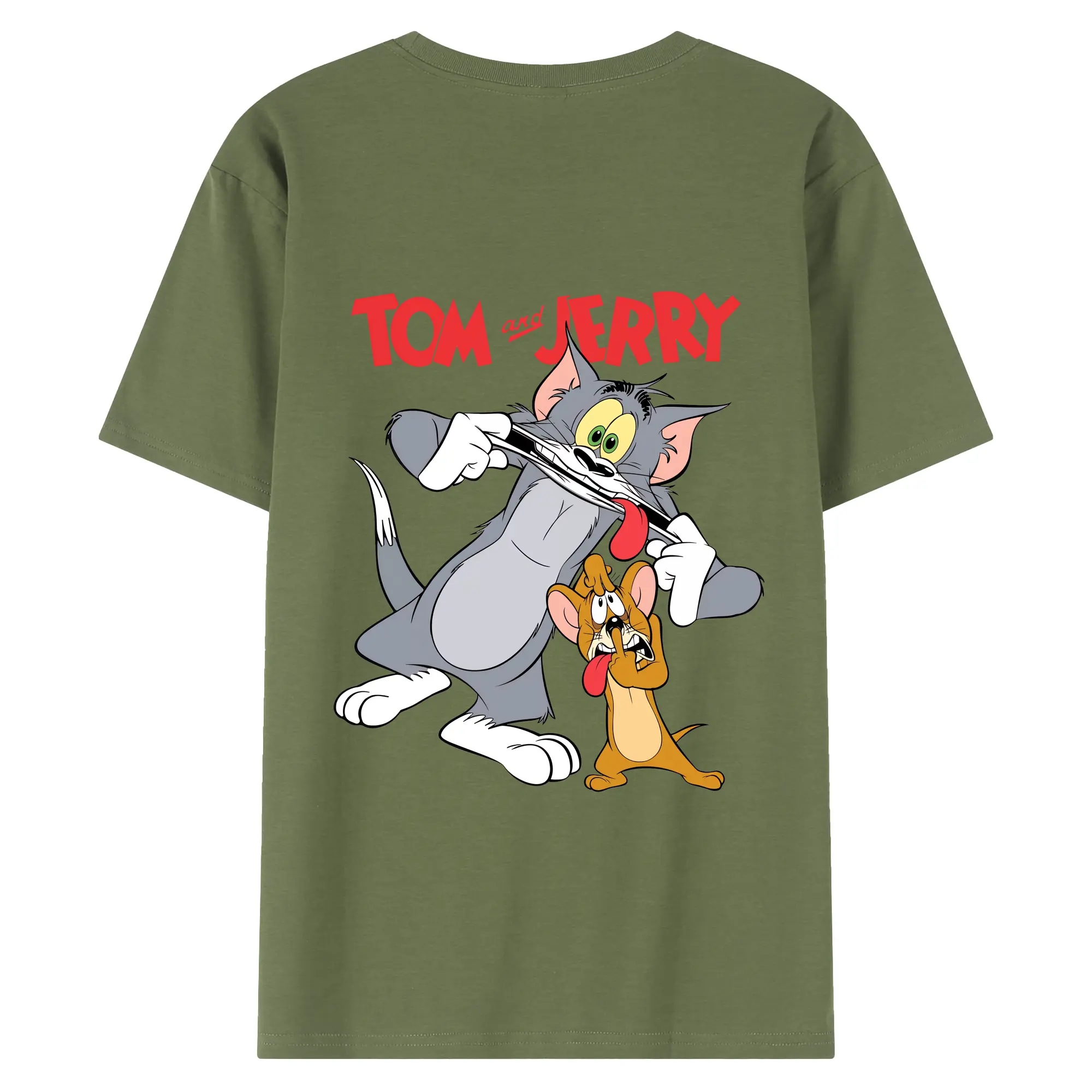 トムとジェリー グッズ ジェリー - 綿100% ヴィンテージ風 半袖Tシャツ ・ 背面プリント ・ 柔らか肌触り ・ 通気性 快適 ・ スポーツ カジュアル 外出用