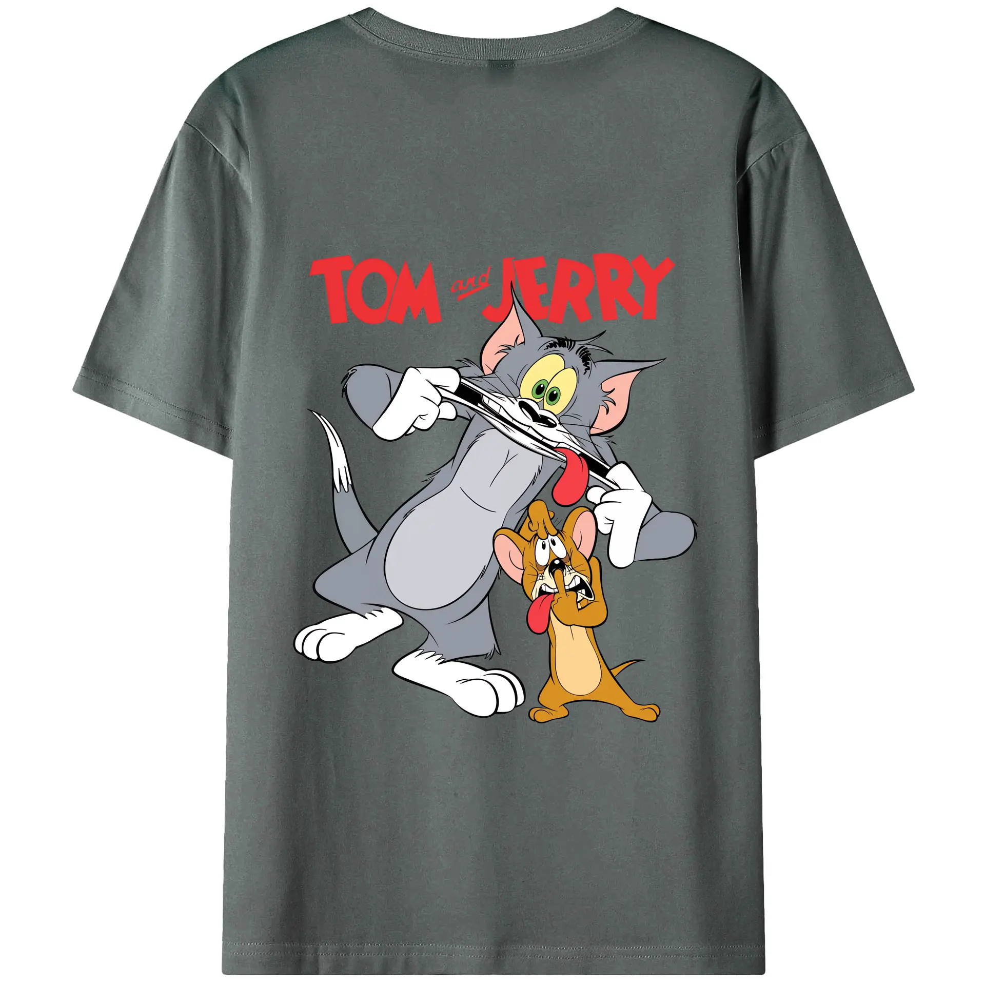 トムとジェリー グッズ ジェリー - 綿100% 半袖Tシャツ ・ フロントプリント ・ 快適 通気性 ・ 日常使い 散歩 スポーツ用