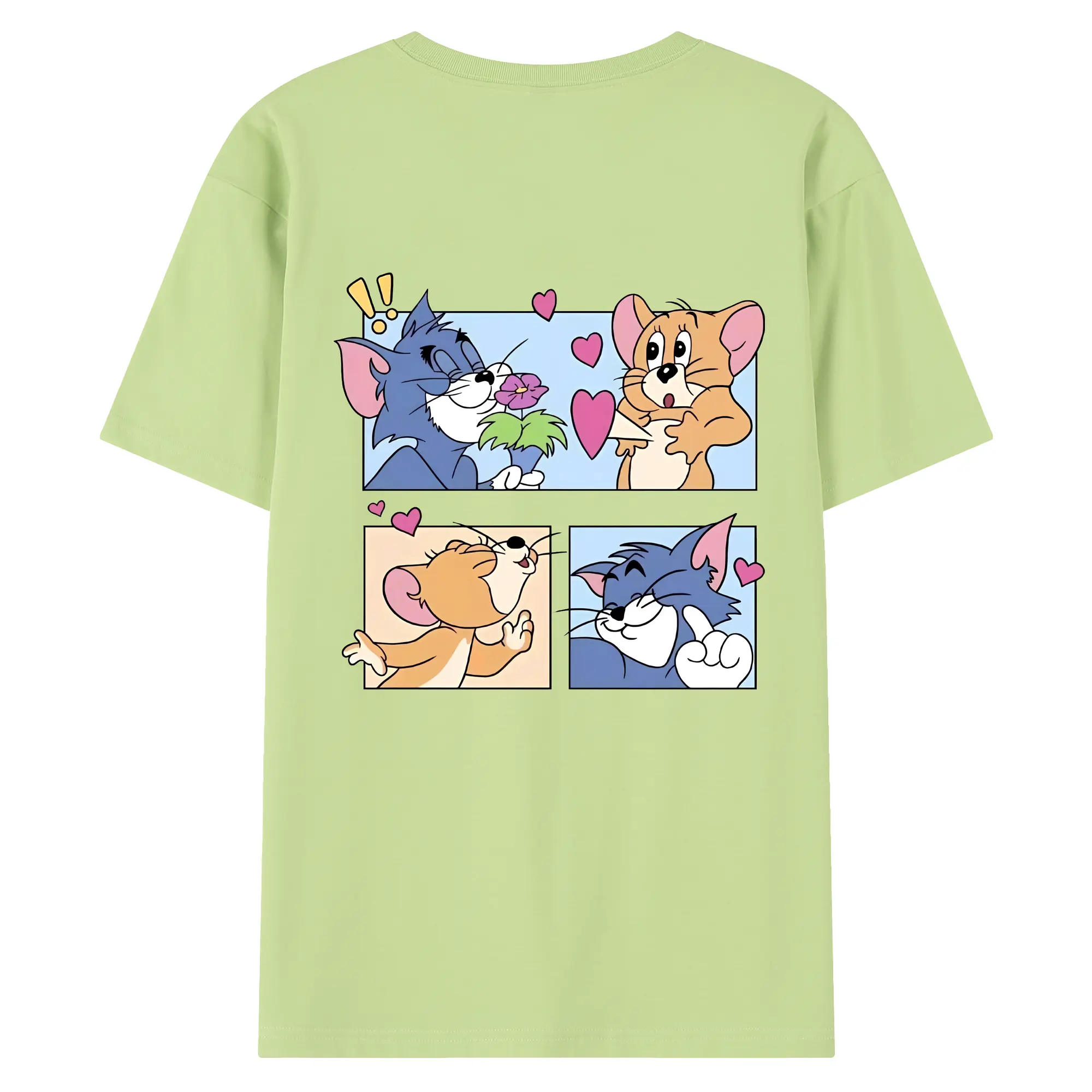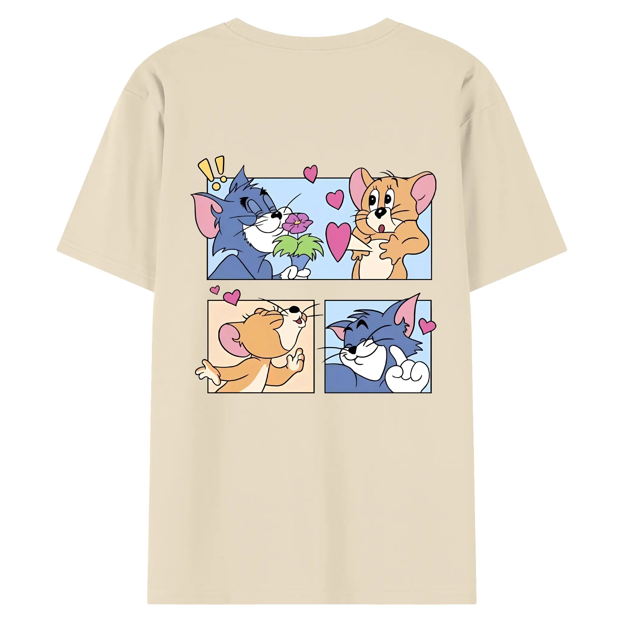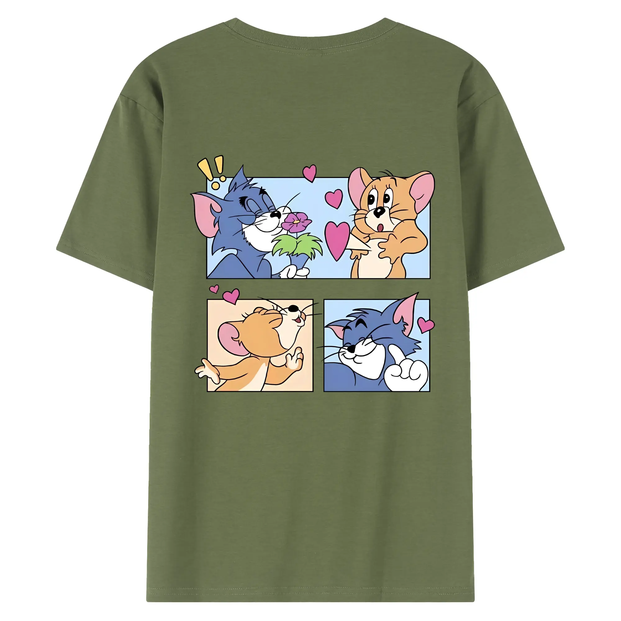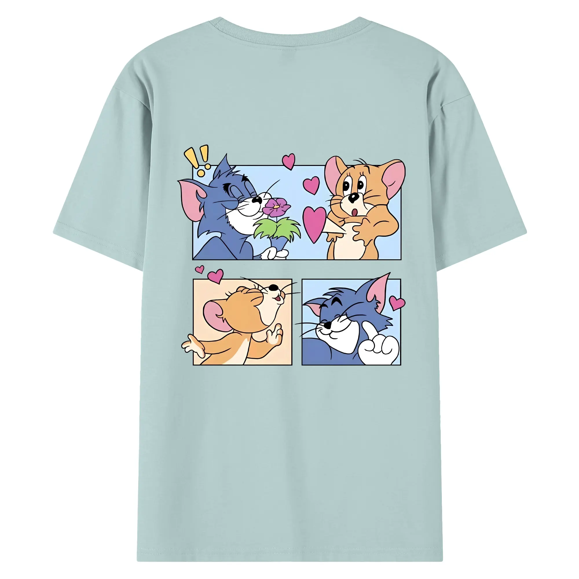 トムとジェリー グッズ ジェリー - 綿100% ヴィンテージ風 半袖Tシャツ ・ 背面プリント ・ 柔らか肌触り ・ 通気性 快適 ・ スポーツ カジュアル 外出用