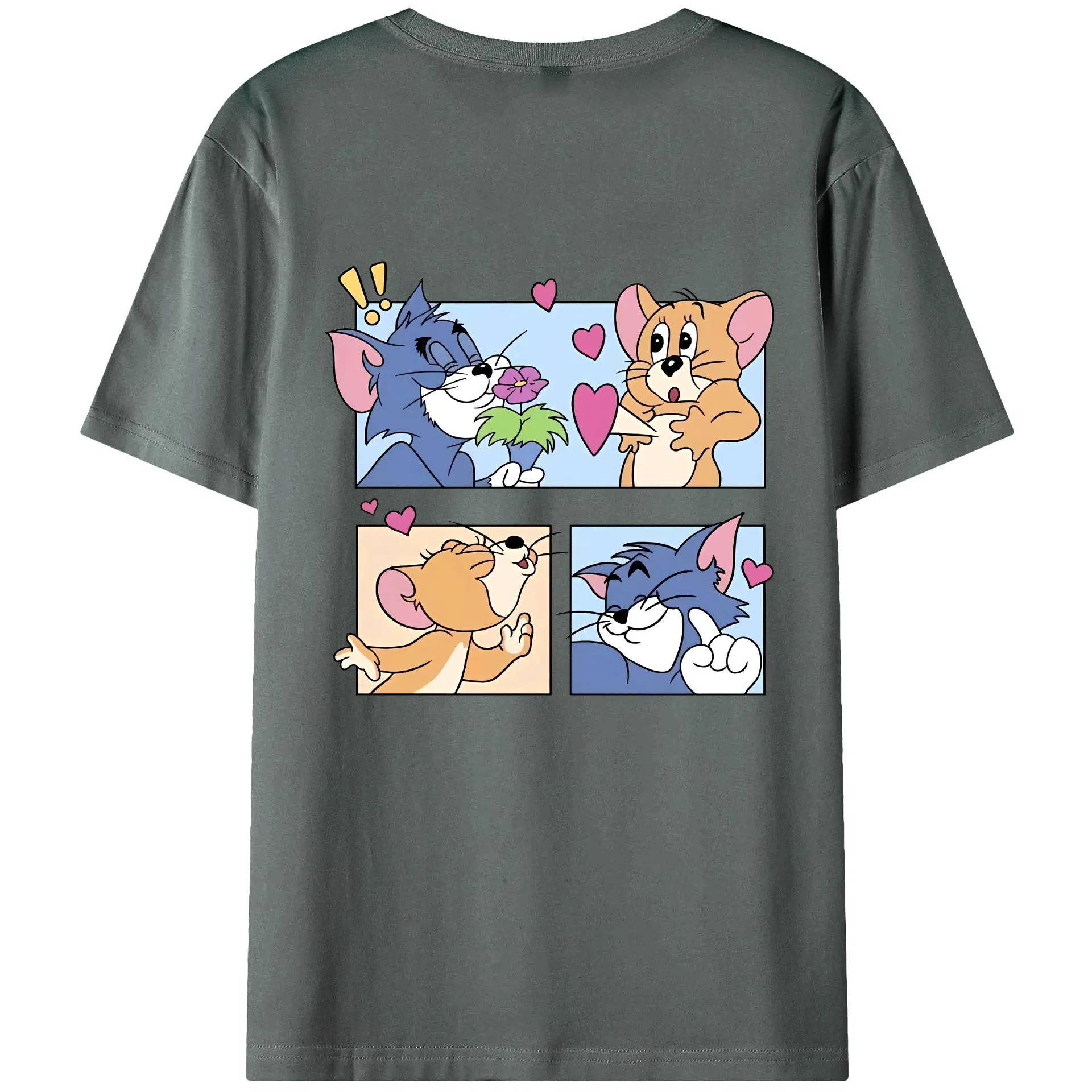 トムとジェリー グッズ ジェリー - 綿100% 半袖Tシャツ ・ フロントプリント ・ 快適 通気性 ・ 日常使い 散歩 スポーツ用