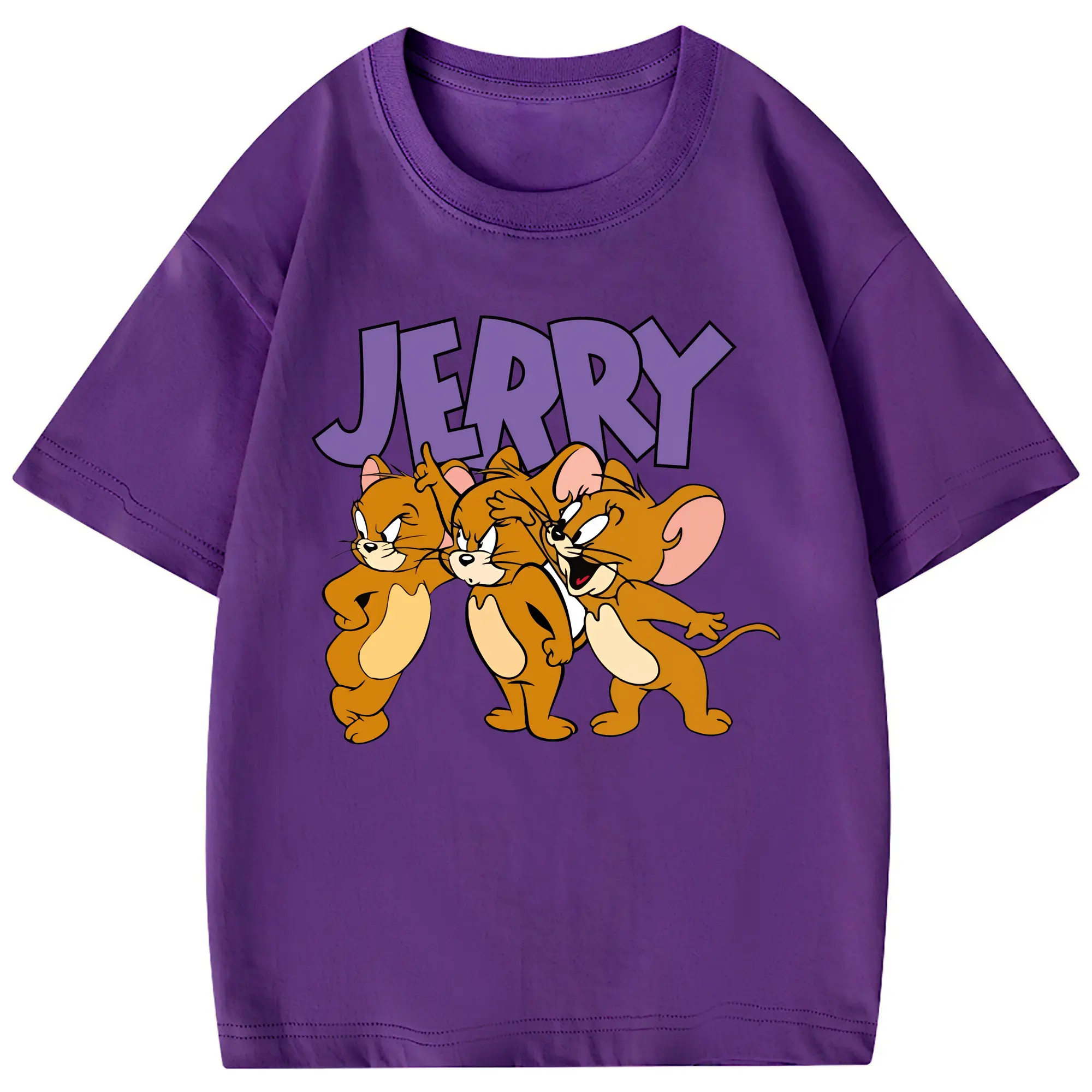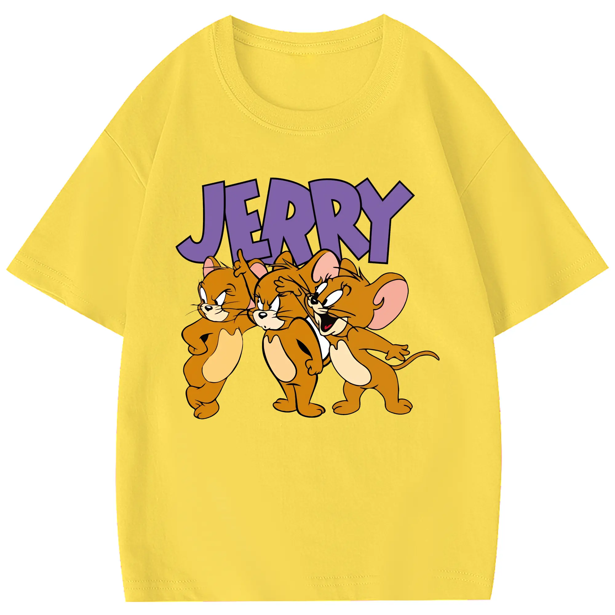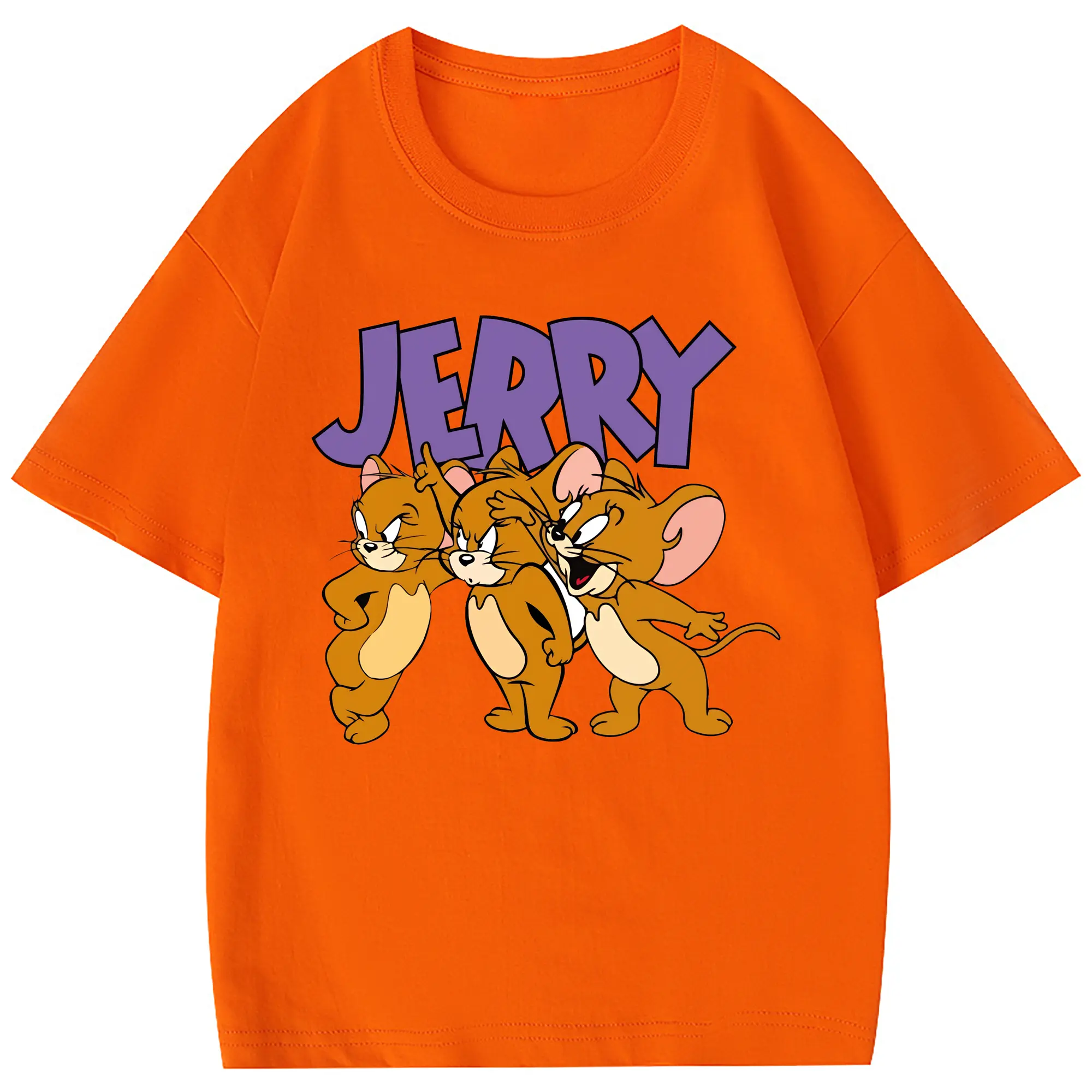トムとジェリー グッズ ジェリー - 綿100% キッズTシャツ ・ フロントプリント ・ 快適 通気性 ・ スポーツ カジュアル 散歩用