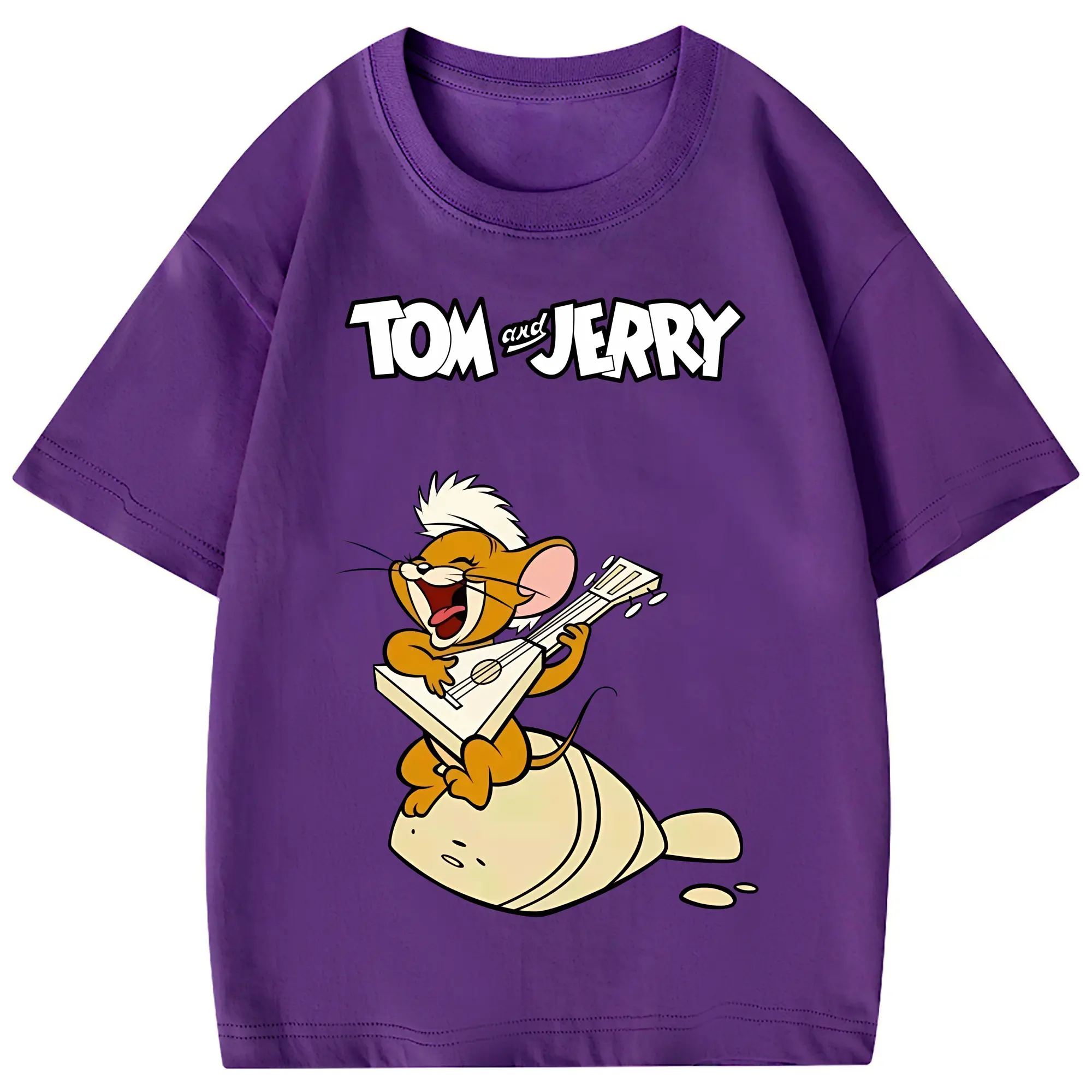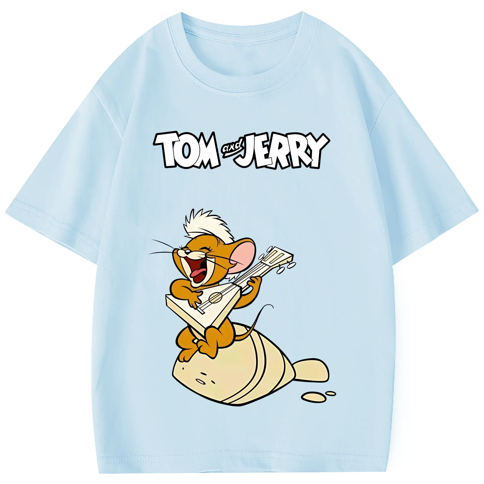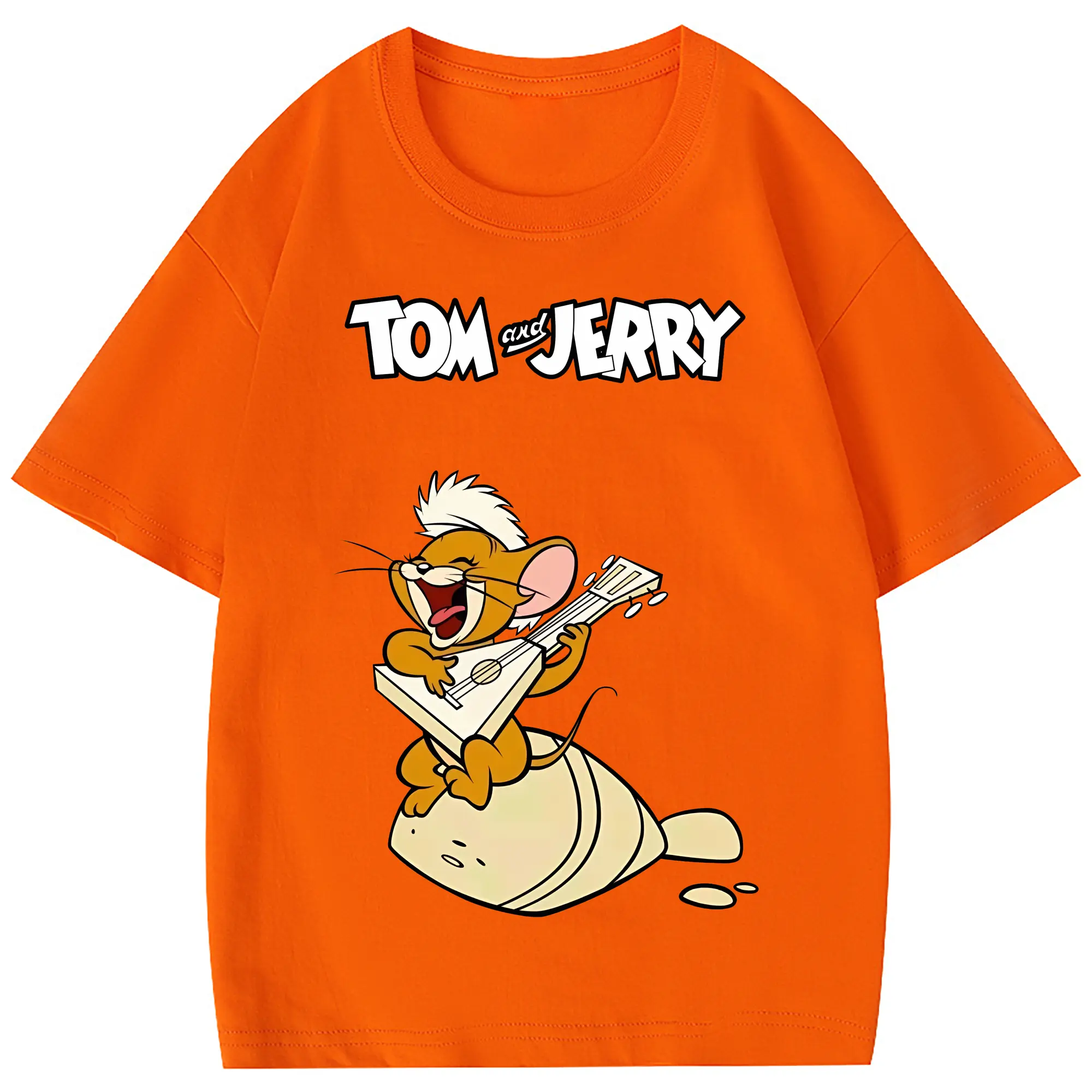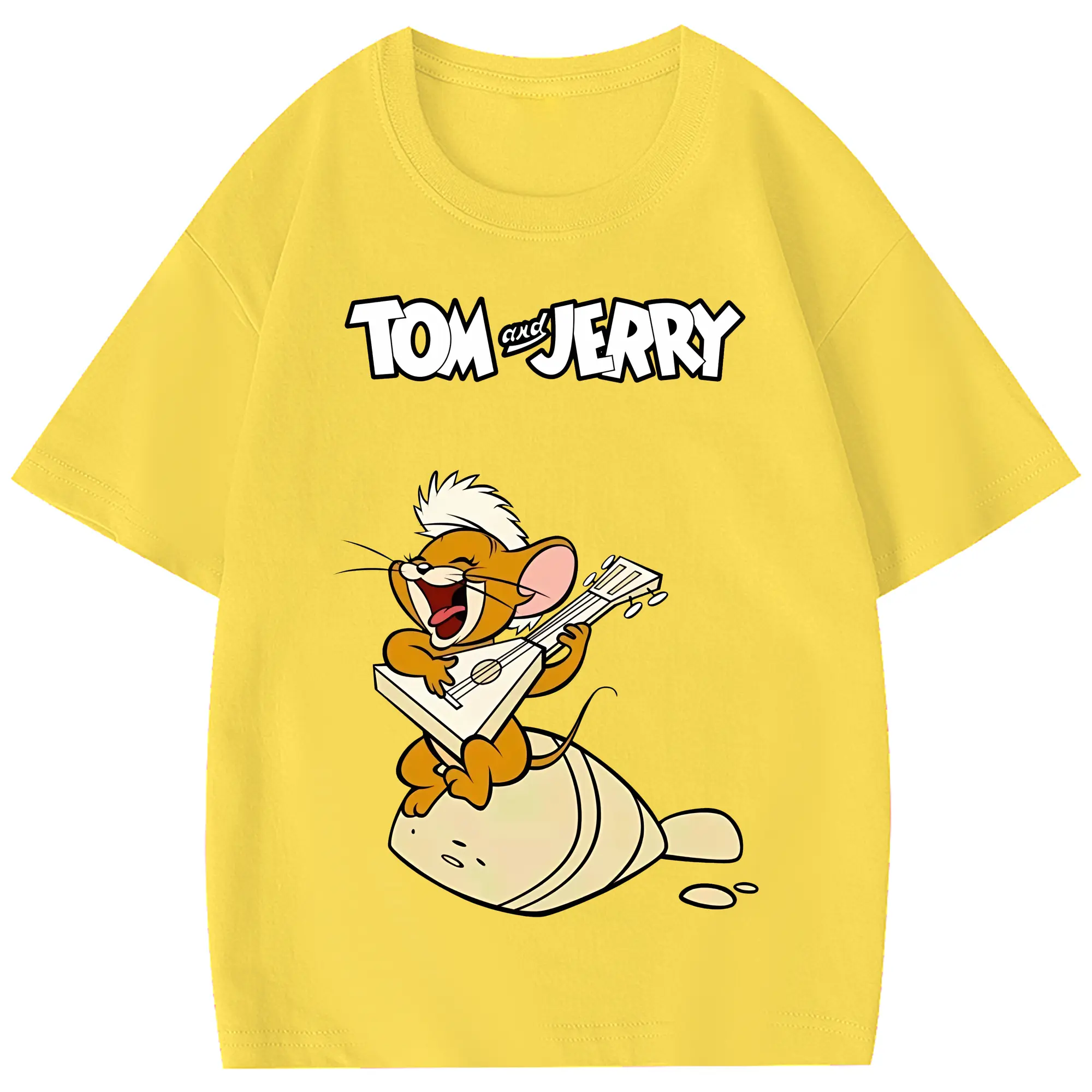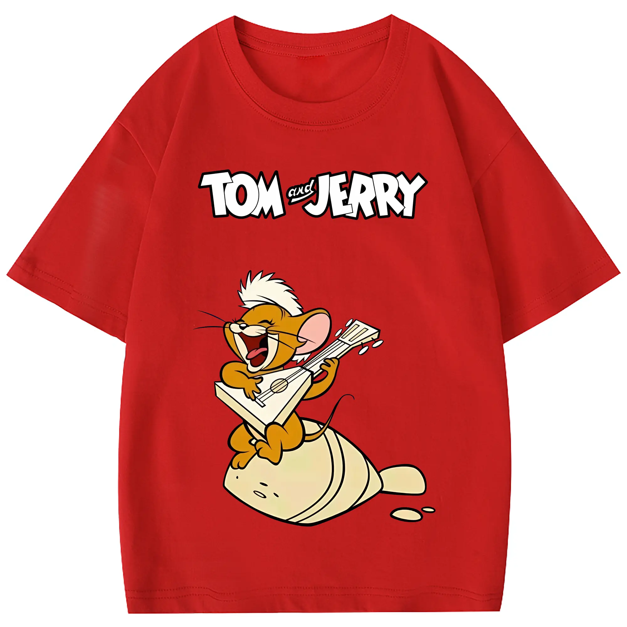 トムとジェリー グッズ ジェリー - 綿100% 半袖Tシャツ ・ フロントプリント ・ 快適 通気性 ・ 日常使い 散歩 スポーツ用