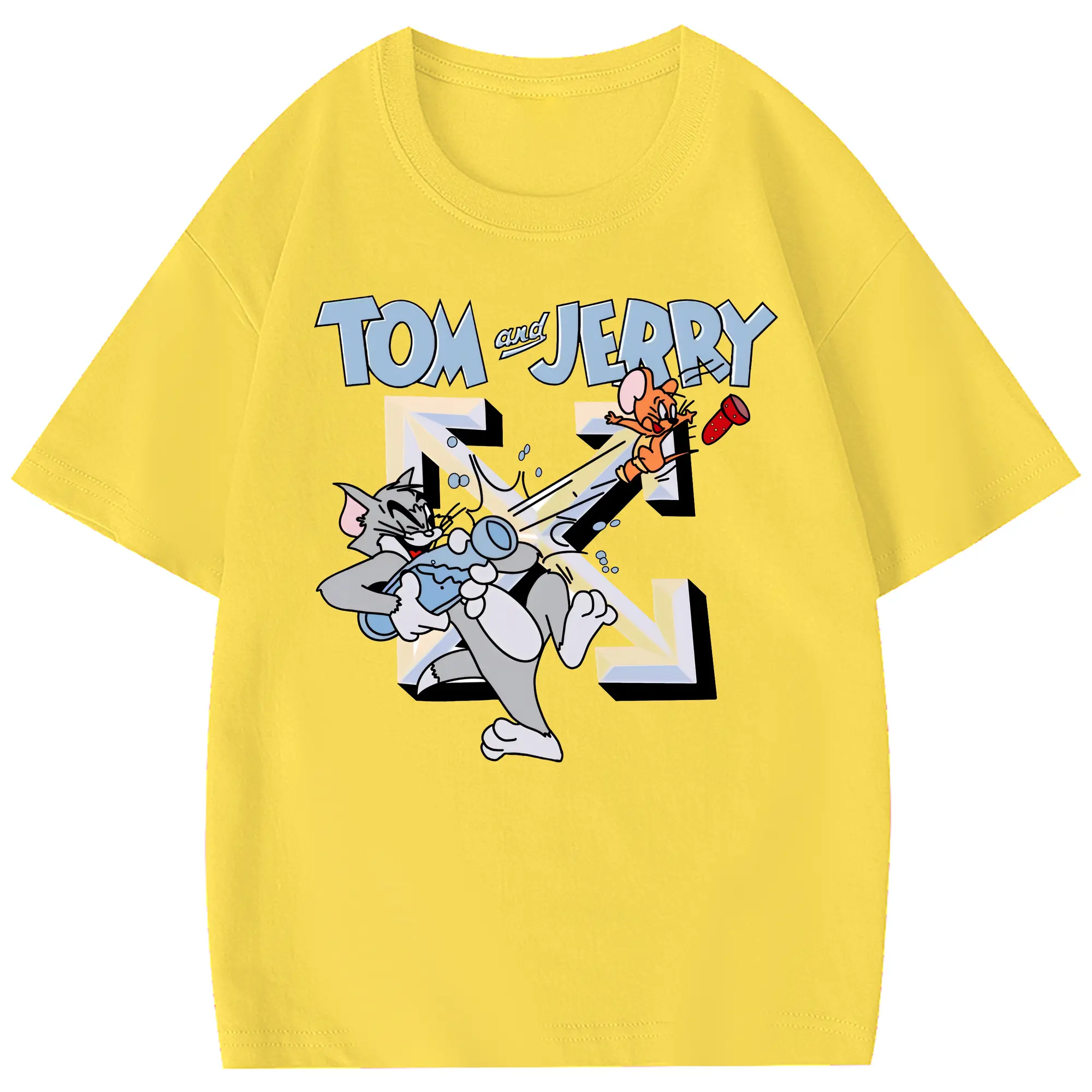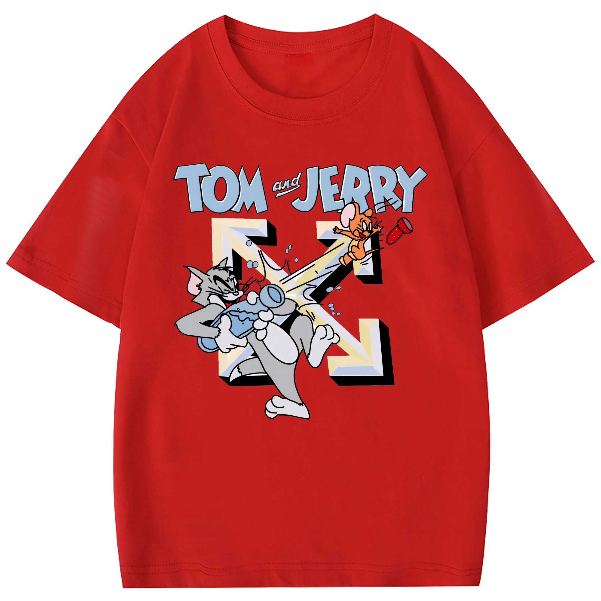 トムとジェリー グッズ ジェリー - 綿100% 半袖Tシャツ ・ フロントプリント ・ 快適 通気性 ・ 日常使い 散歩 スポーツ用
