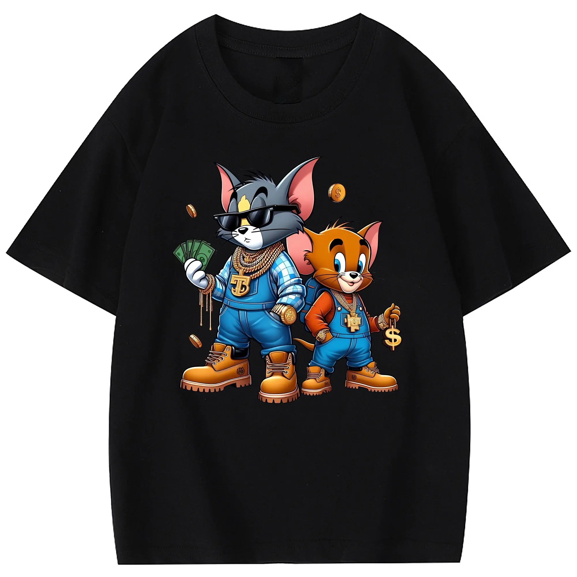 トムとジェリー グッズ ジェリー - 綿100% 半袖Tシャツ ・ バックプリント ・ 快適 通気性 ・ 日常使い 散歩 スポーツ用