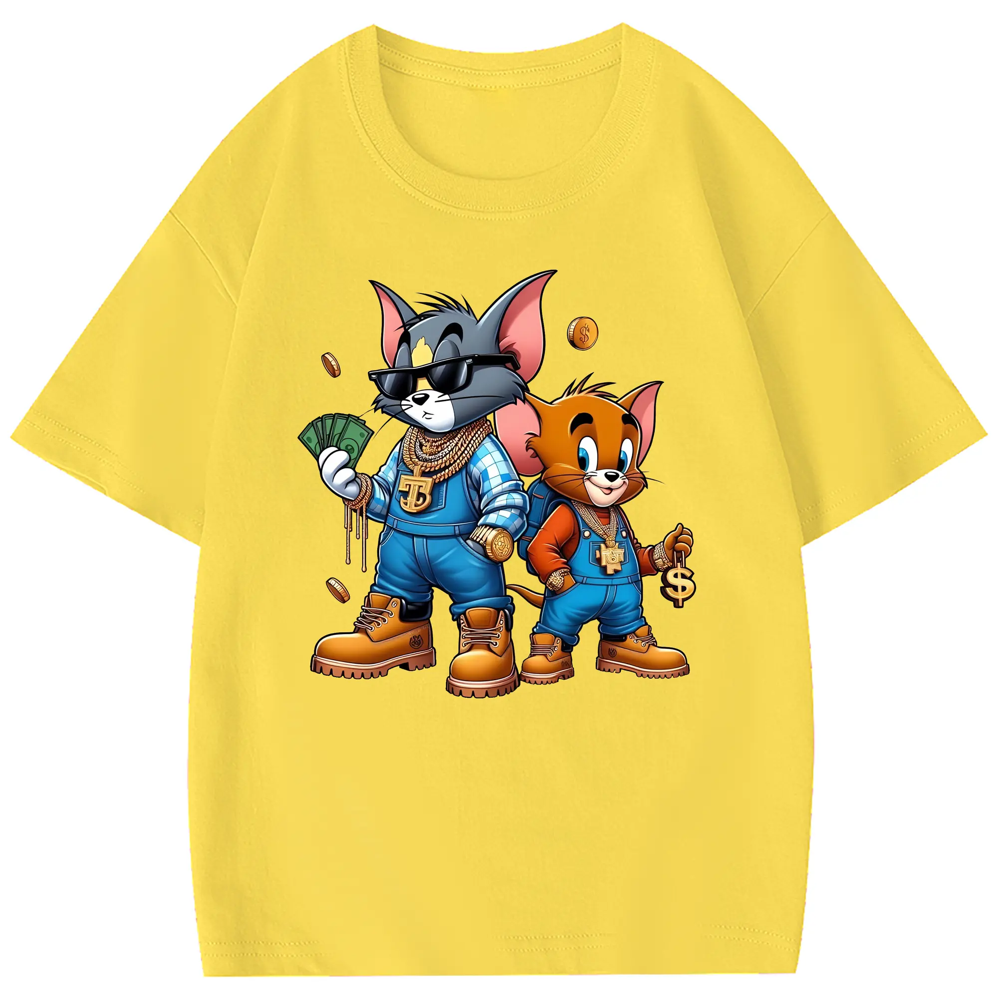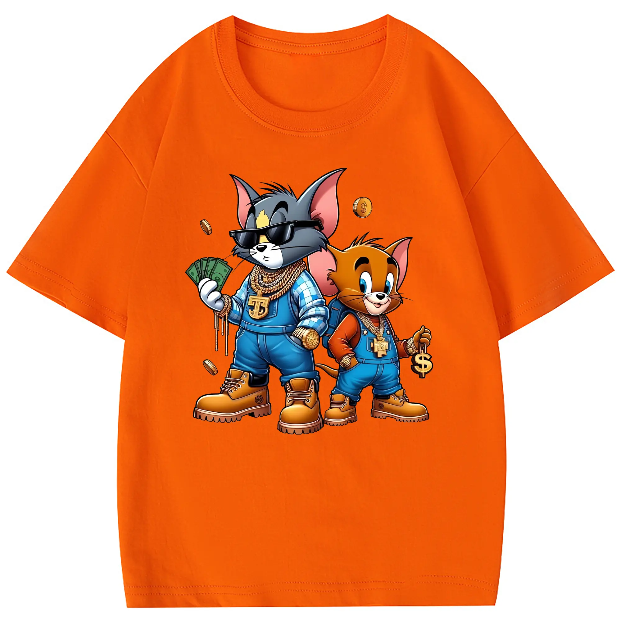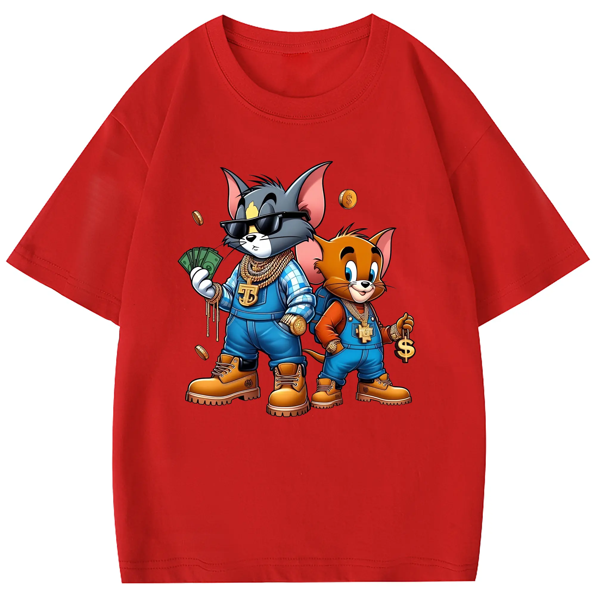 トムとジェリー グッズ ジェリー - 綿100% 半袖Tシャツ ・ フロントプリント ・ 快適 通気性 ・ 日常使い 散歩 スポーツ用