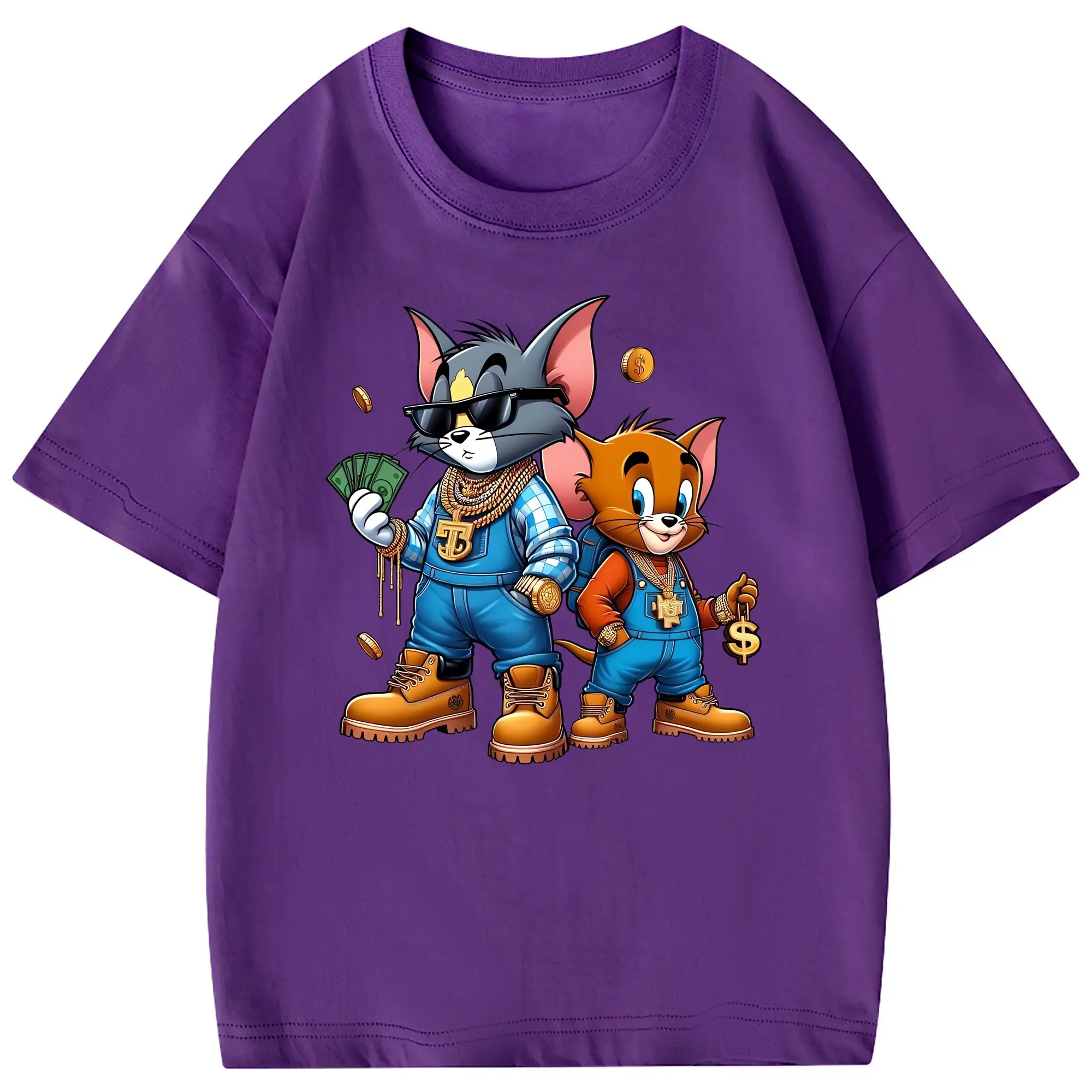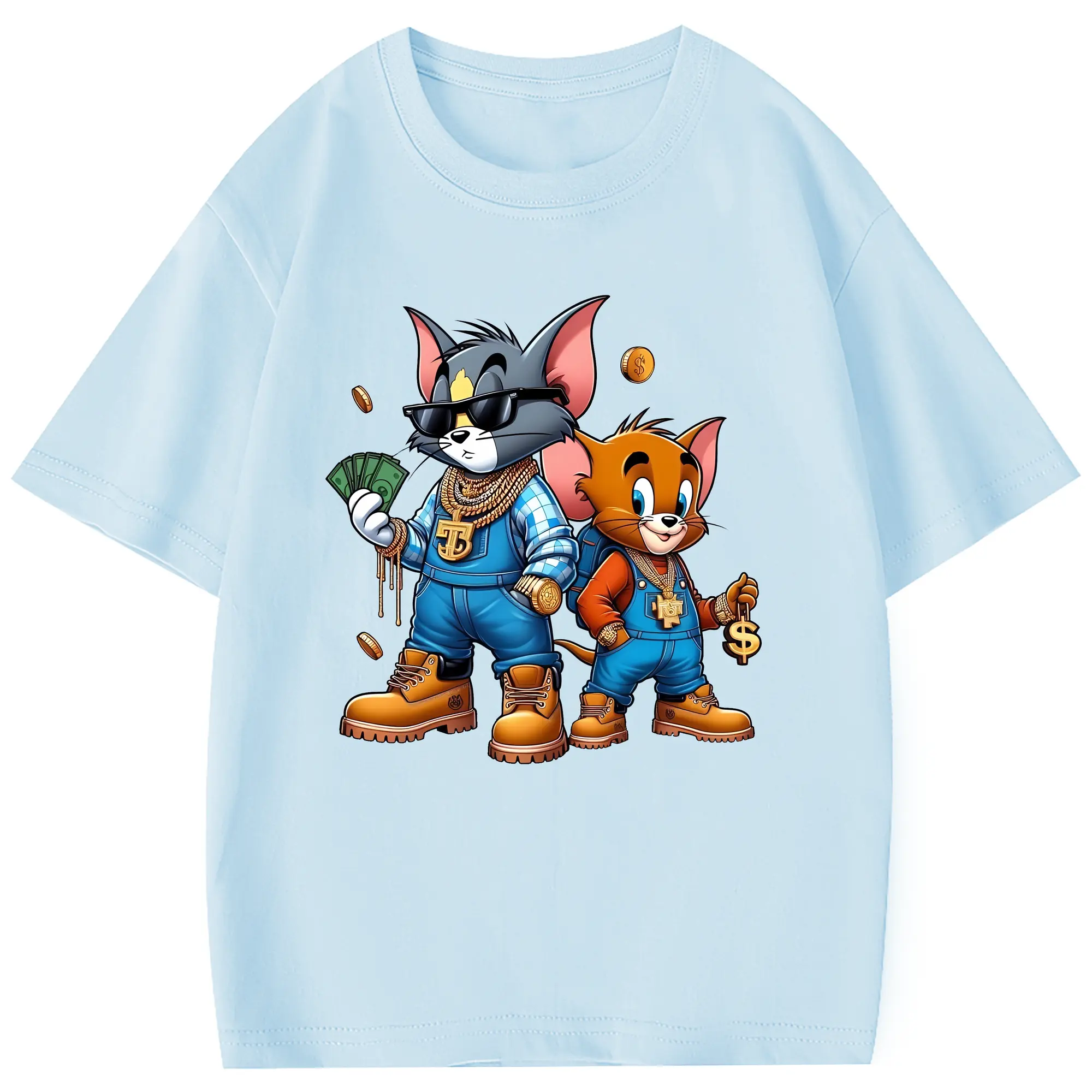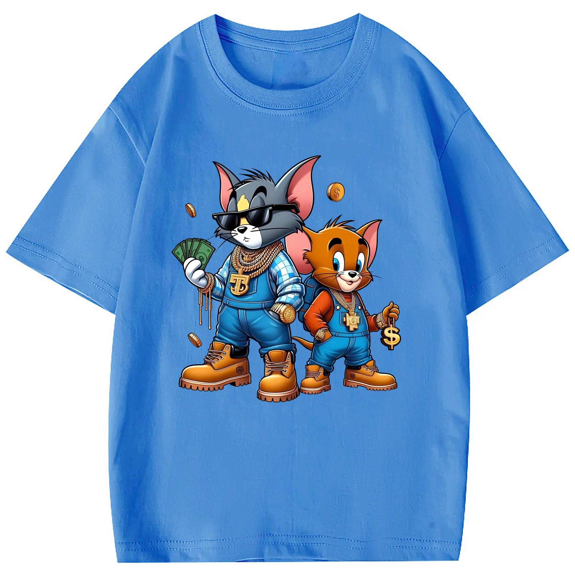 トムとジェリー グッズ ジェリー - 綿100% 半袖Tシャツ ・ フロントプリント ・ 快適 通気性 ・ 日常使い 散歩 スポーツ用