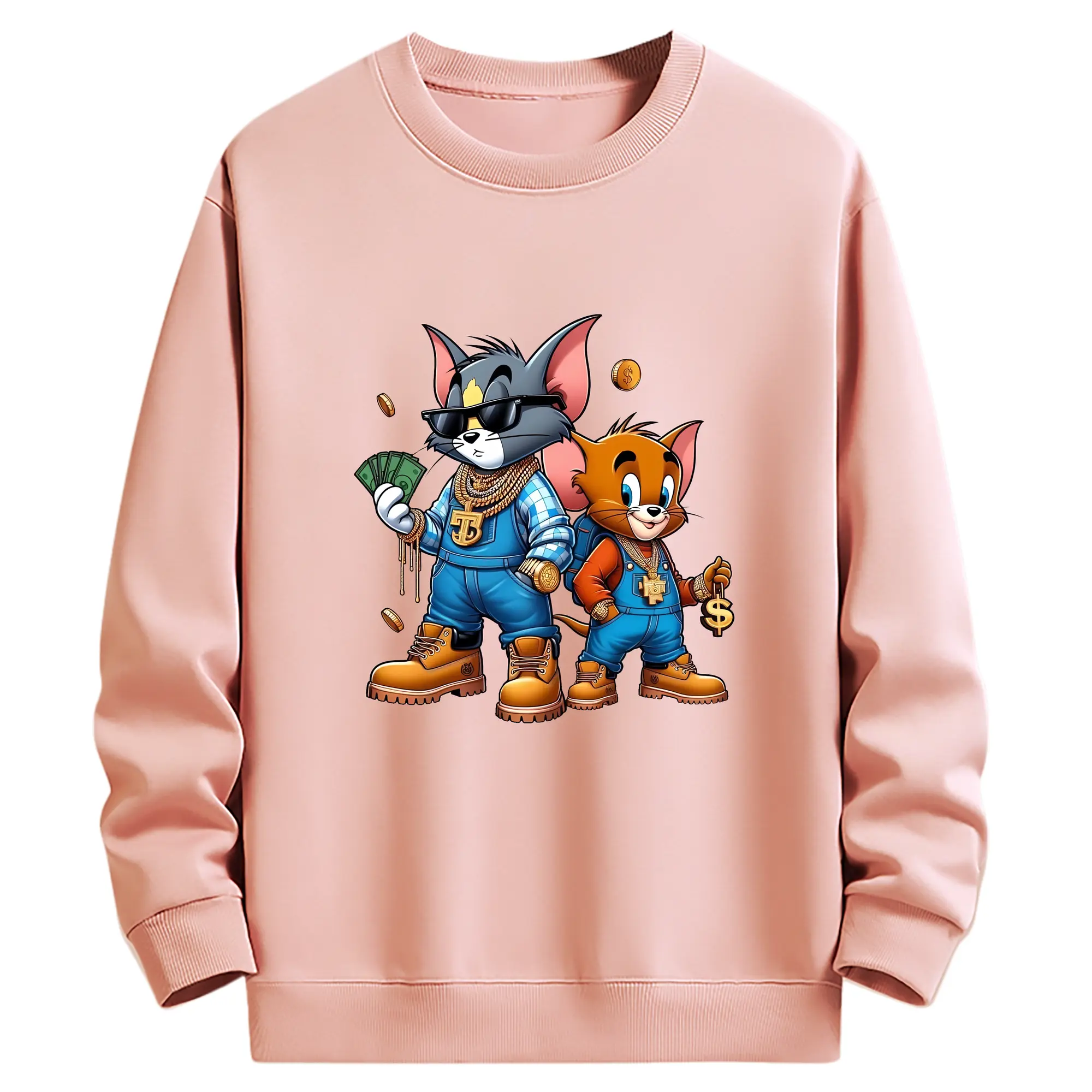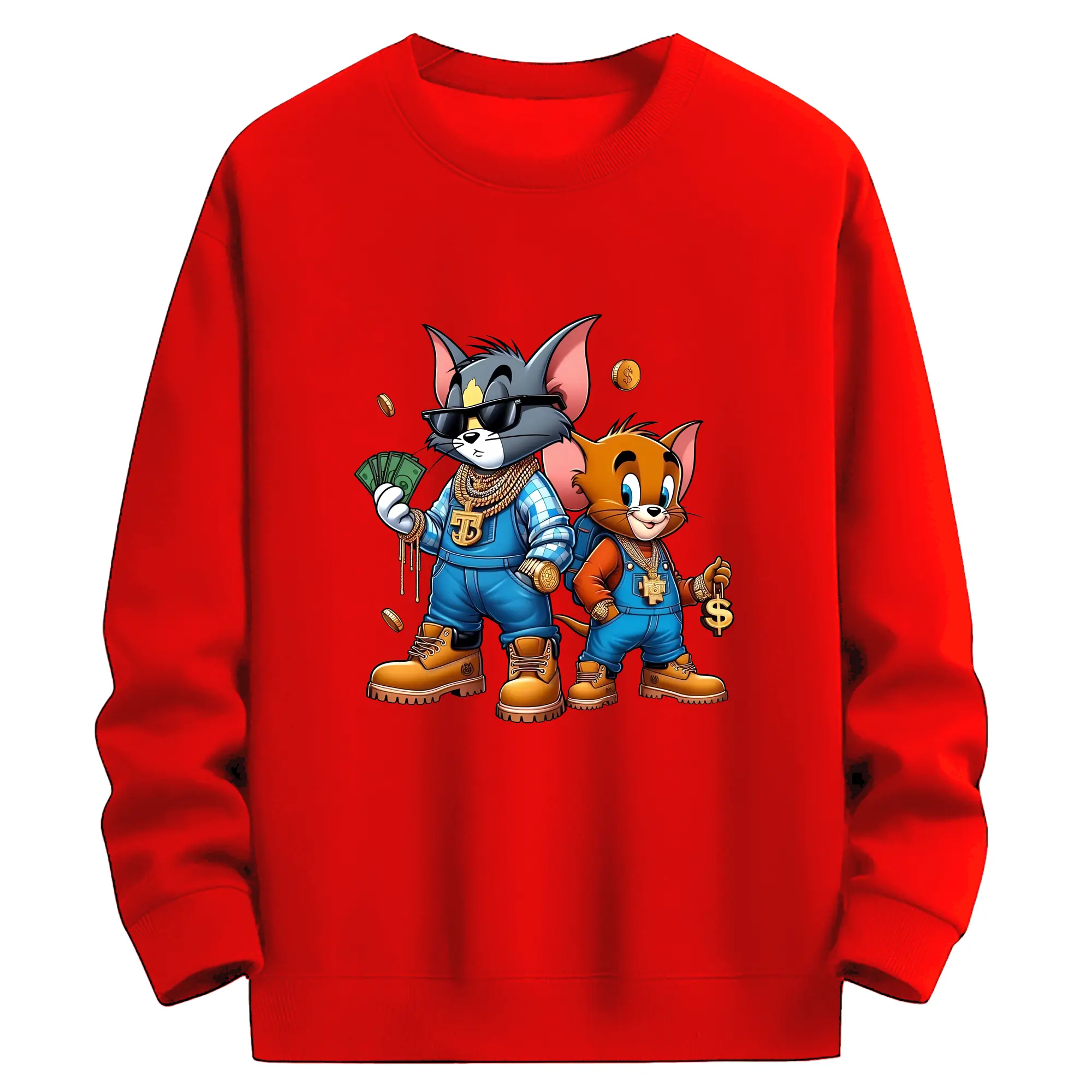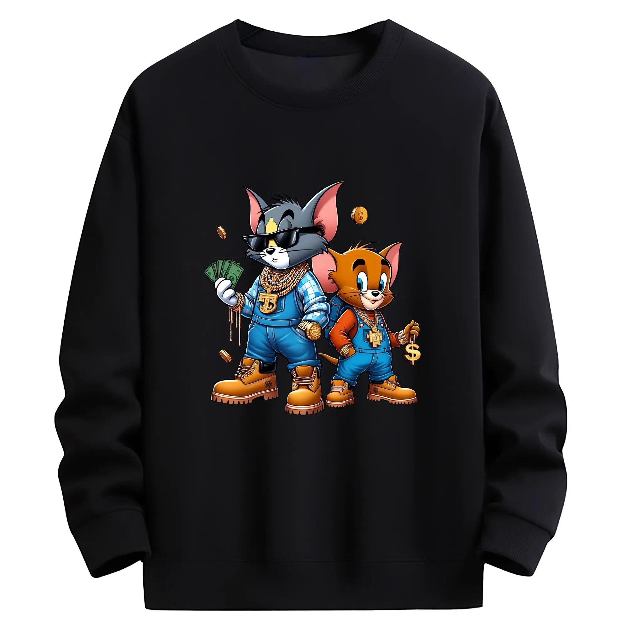 トムとジェリー グッズ ジェリー - 高品質 クルーネック スウェット ・ コットン59% ポリエステル41% ・ ユニセックス 長袖 トレーナー ・ カジュアル デイリー スポーツ 散歩用