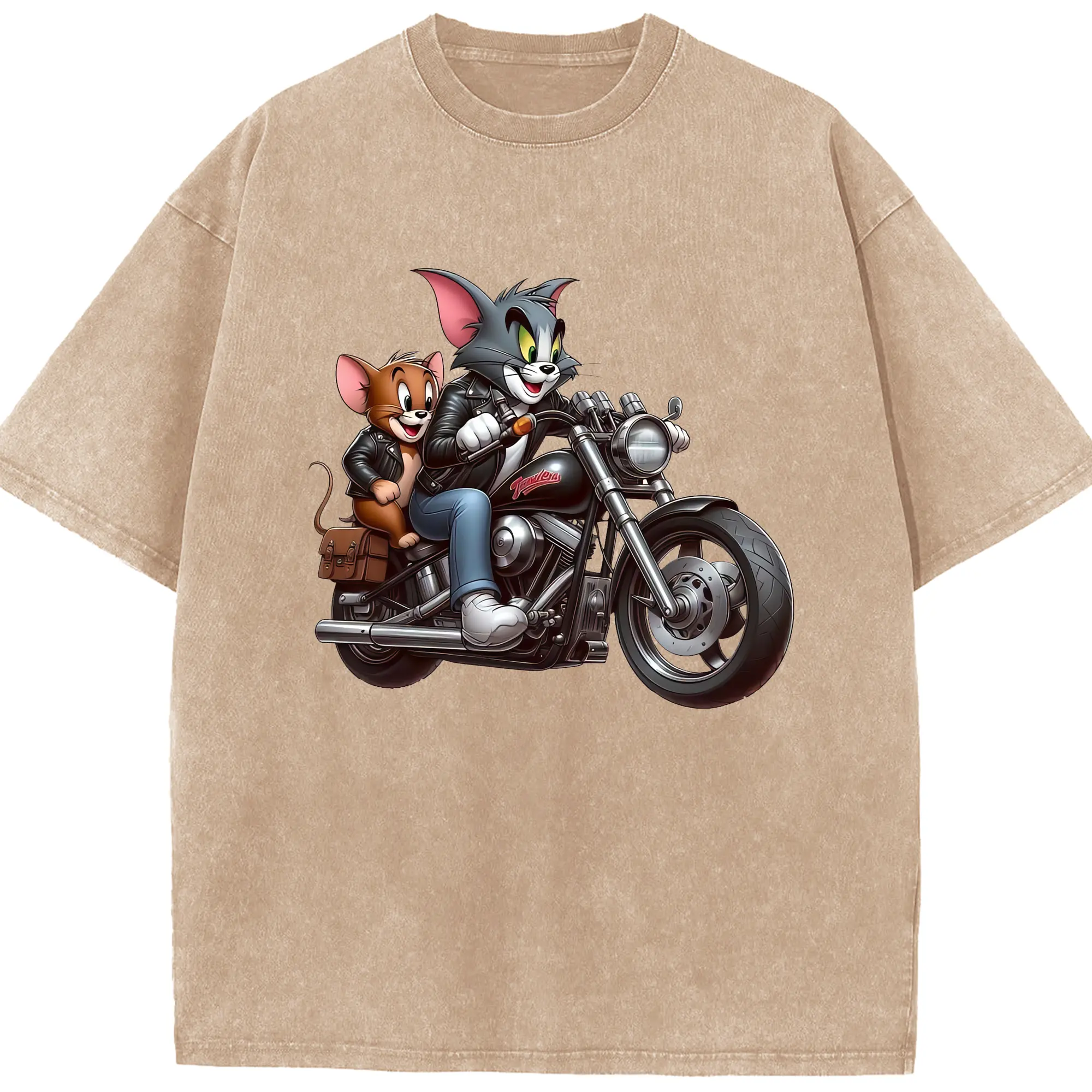 トムとジェリー グッズ ジェリー - 綿100% ヴィンテージ風 半袖Tシャツ ・ 背面プリント ・ 柔らか肌触り ・ 通気性 快適 ・ スポーツ カジュアル 外出用