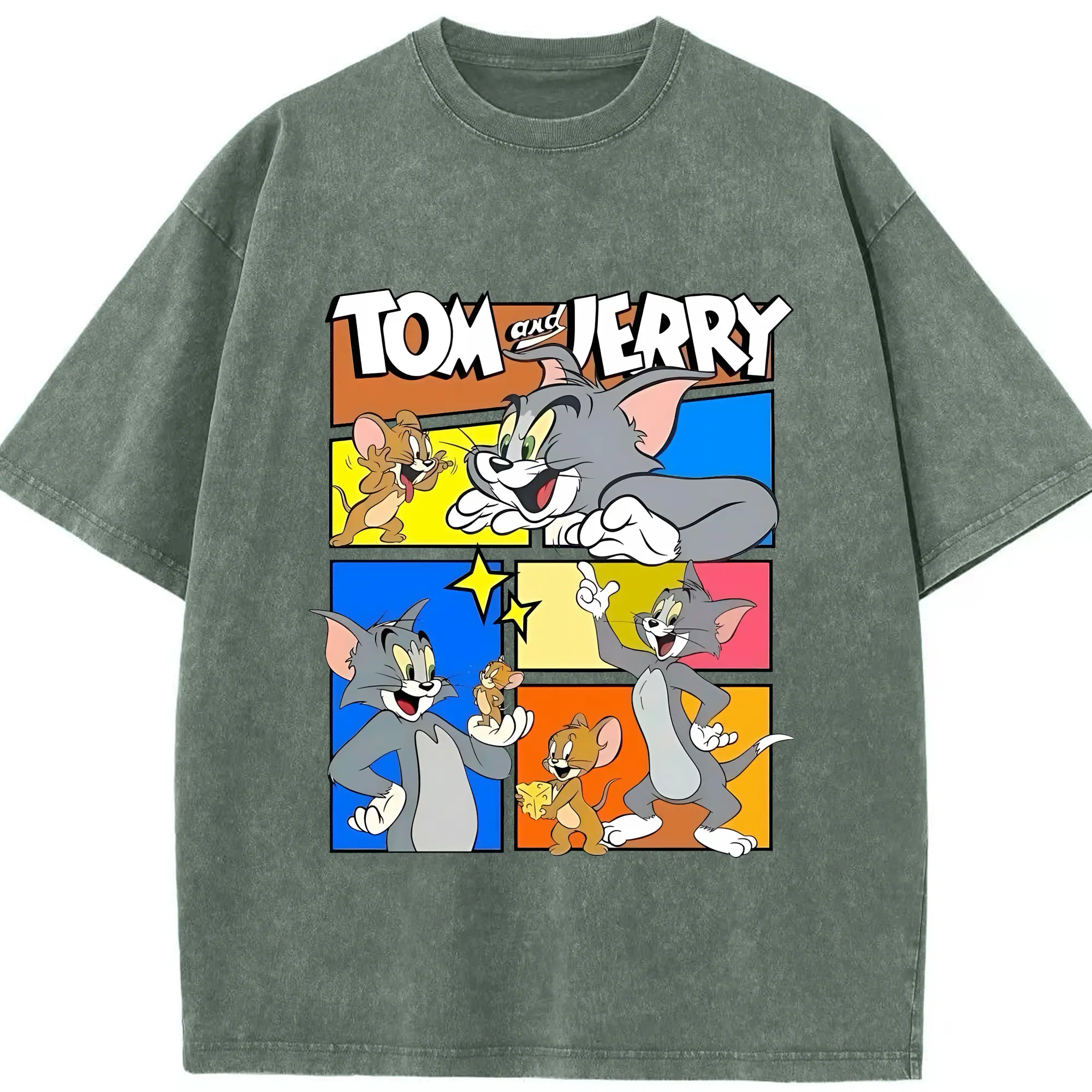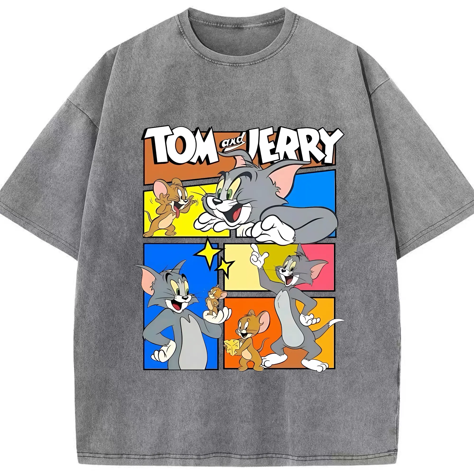 トムとジェリー グッズ ジェリー - 綿100% ヴィンテージ風 半袖Tシャツ ・ 背面プリント ・ 柔らか肌触り ・ 通気性 快適 ・ スポーツ カジュアル 外出用