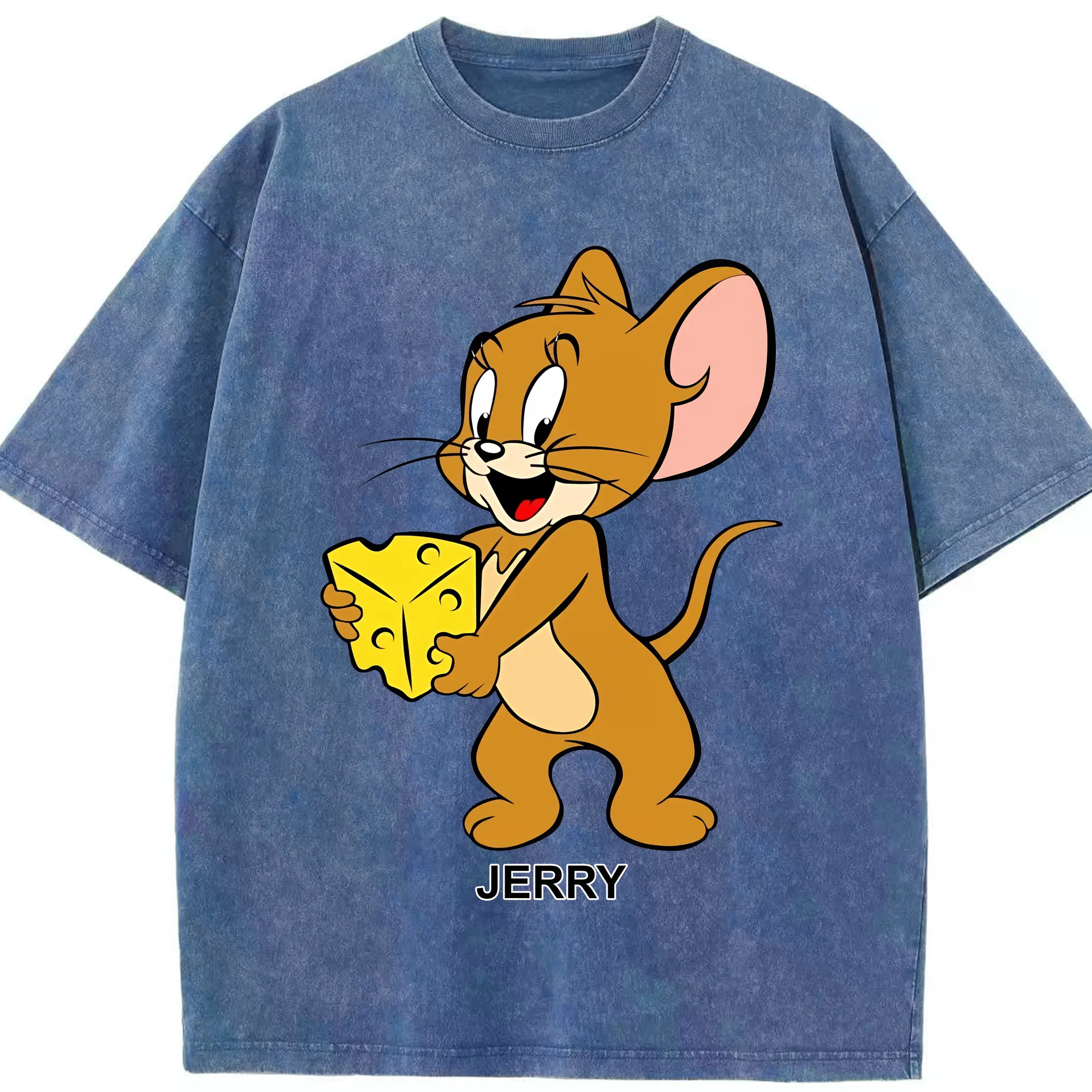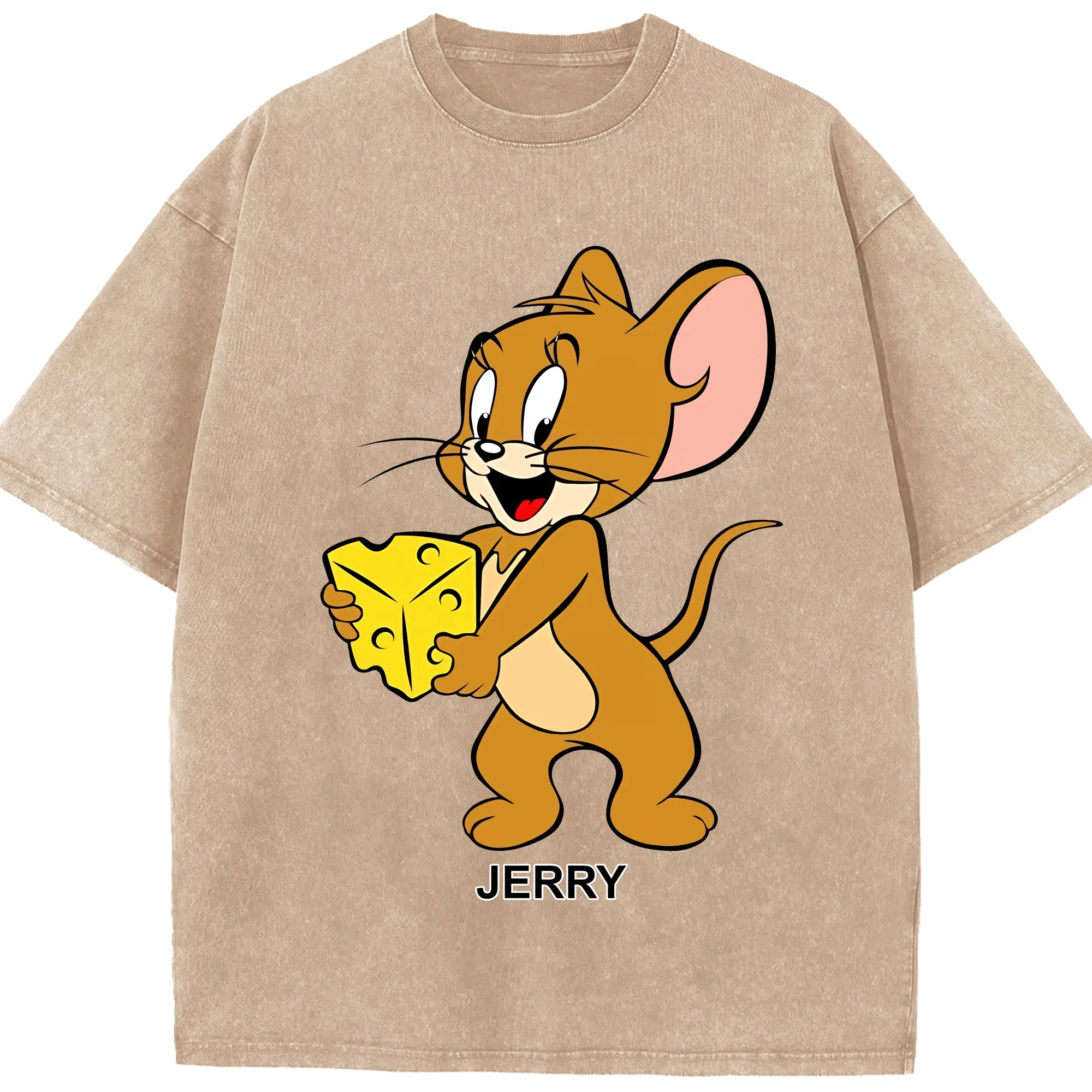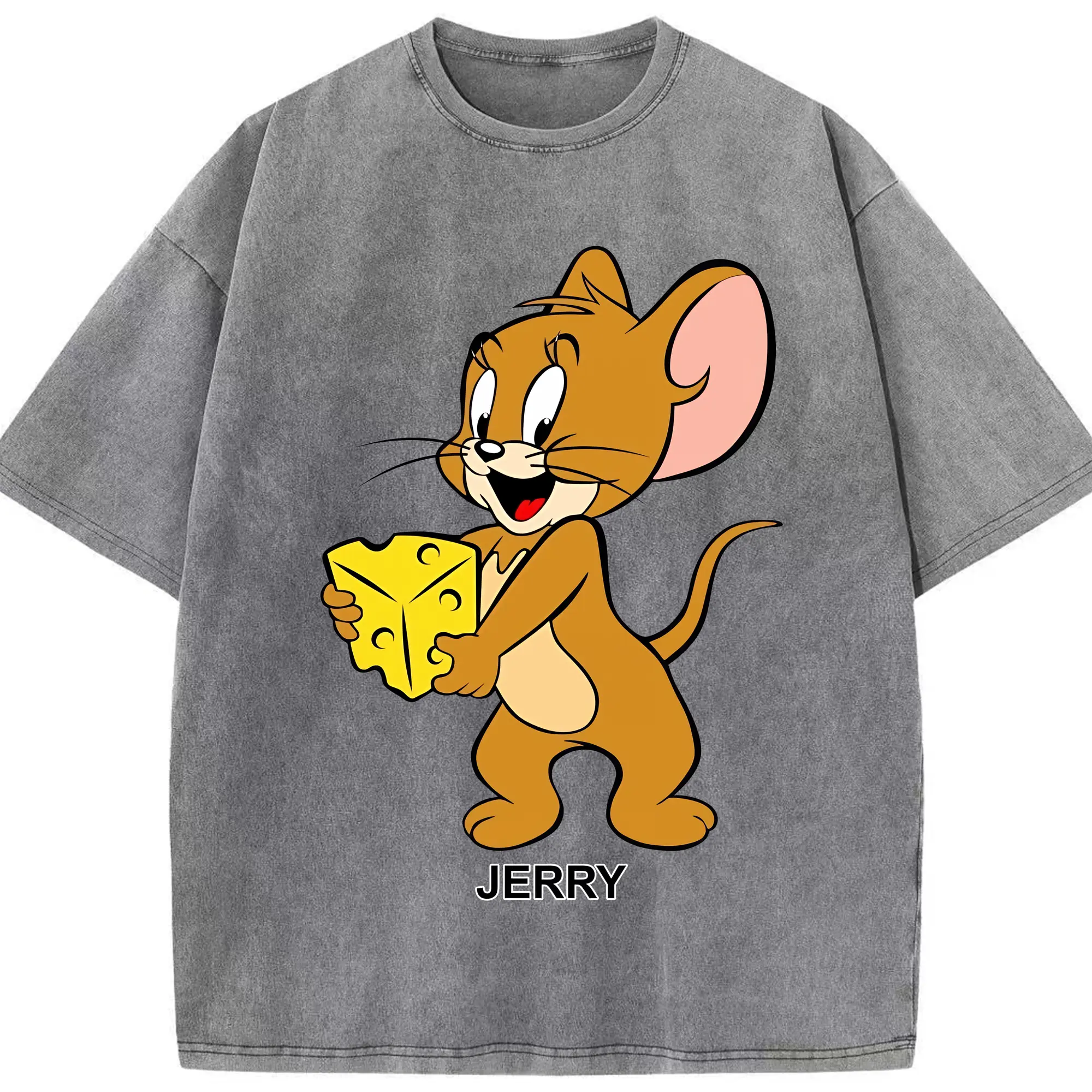 トムとジェリー グッズ ジェリー - 綿100% ヴィンテージ風 半袖Tシャツ ・ 背面プリント ・ 柔らか肌触り ・ 通気性 快適 ・ スポーツ カジュアル 外出用