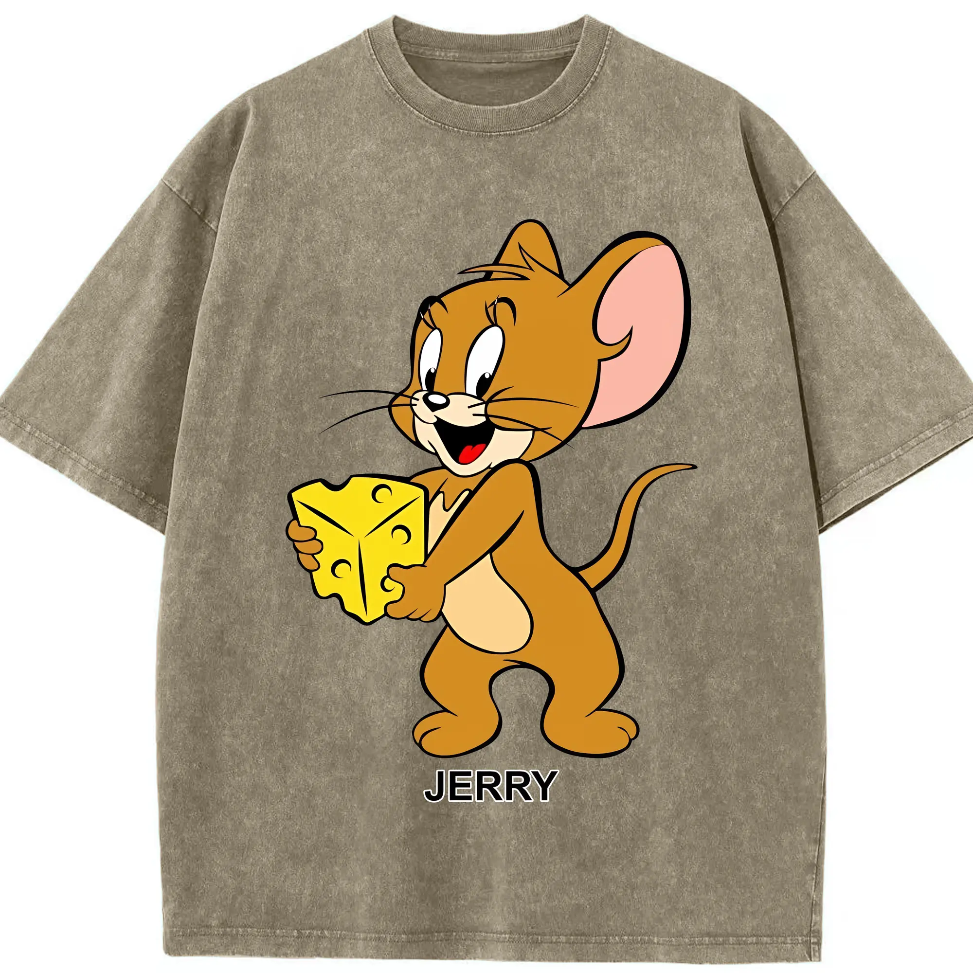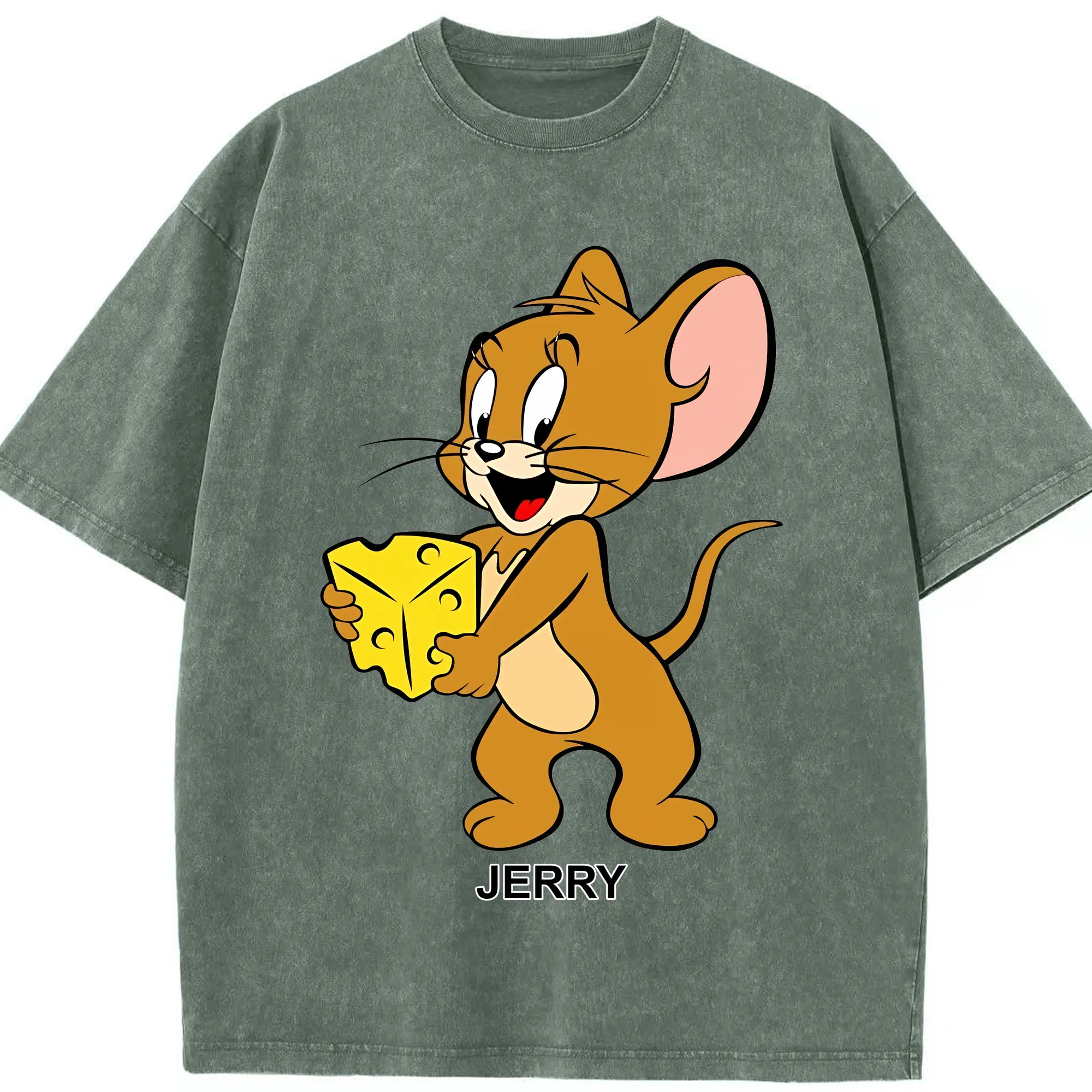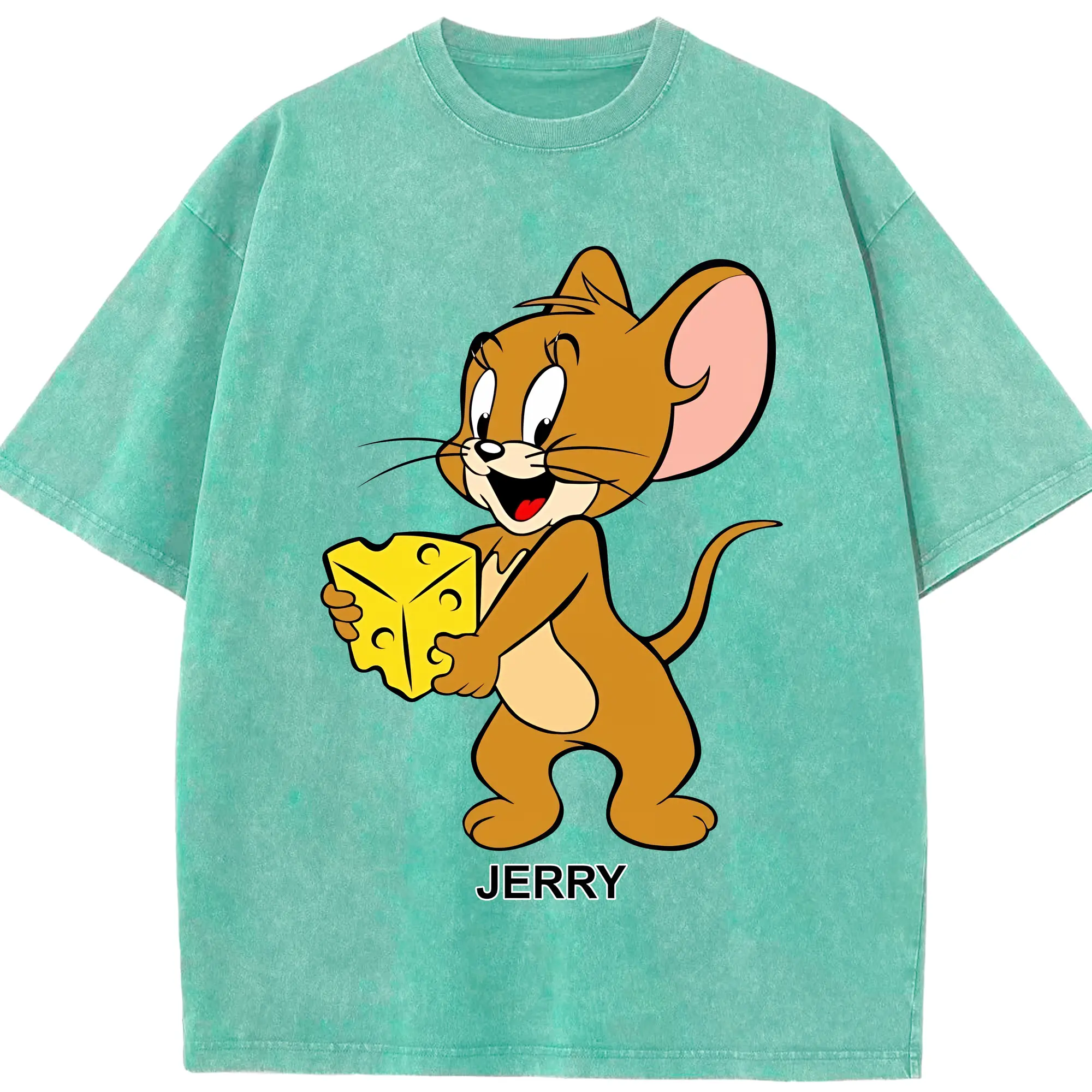 トムとジェリー グッズ ジェリー - 綿100% ヴィンテージ風 半袖Tシャツ ・ 背面プリント ・ 柔らか肌触り ・ 通気性 快適 ・ スポーツ カジュアル 外出用