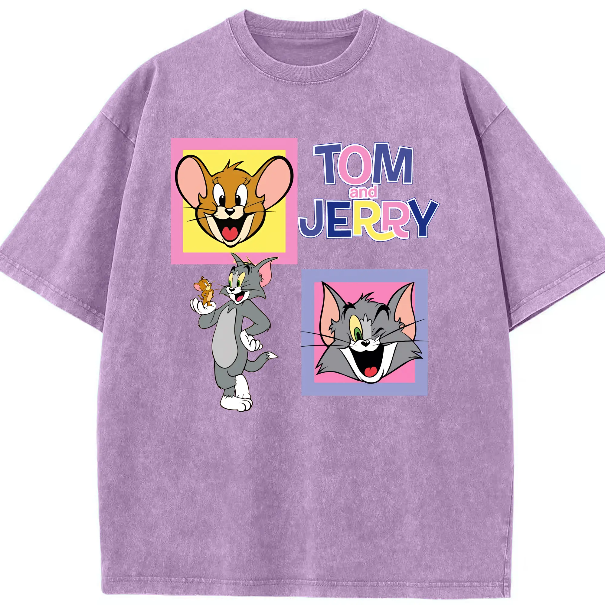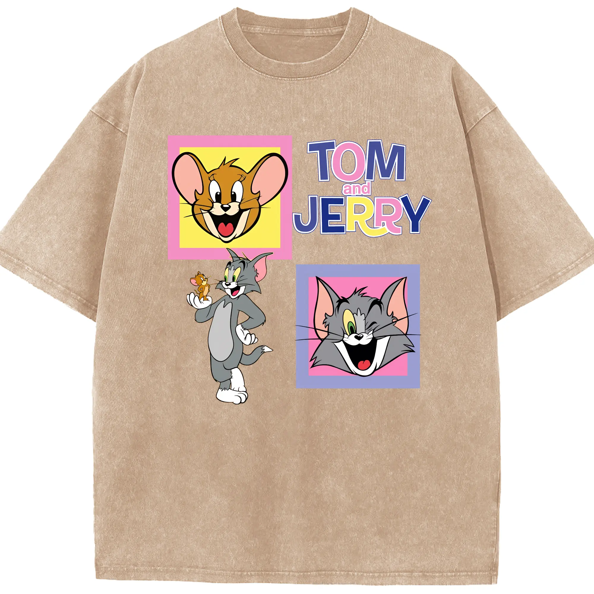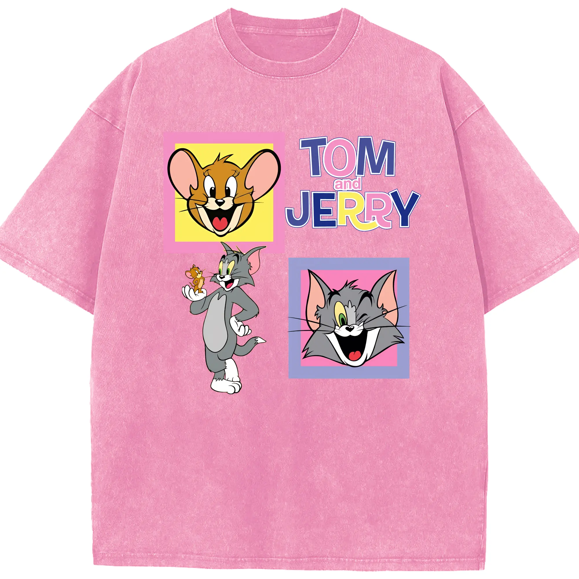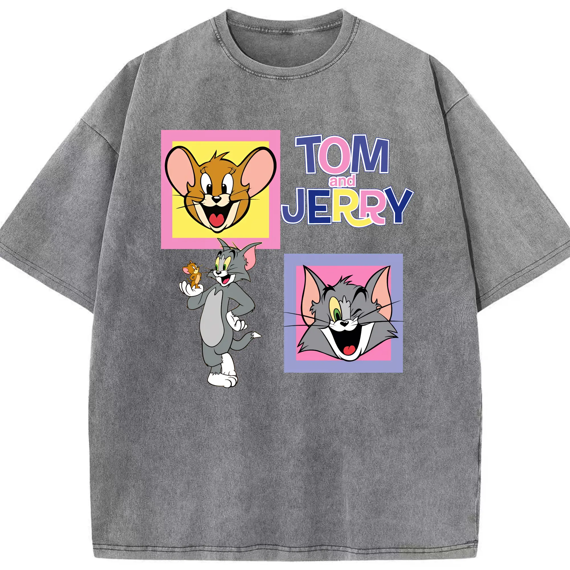 トムとジェリー グッズ ジェリー - 綿100% ヴィンテージ風 半袖Tシャツ ・ 背面プリント ・ 柔らか肌触り ・ 通気性 快適 ・ スポーツ カジュアル 外出用