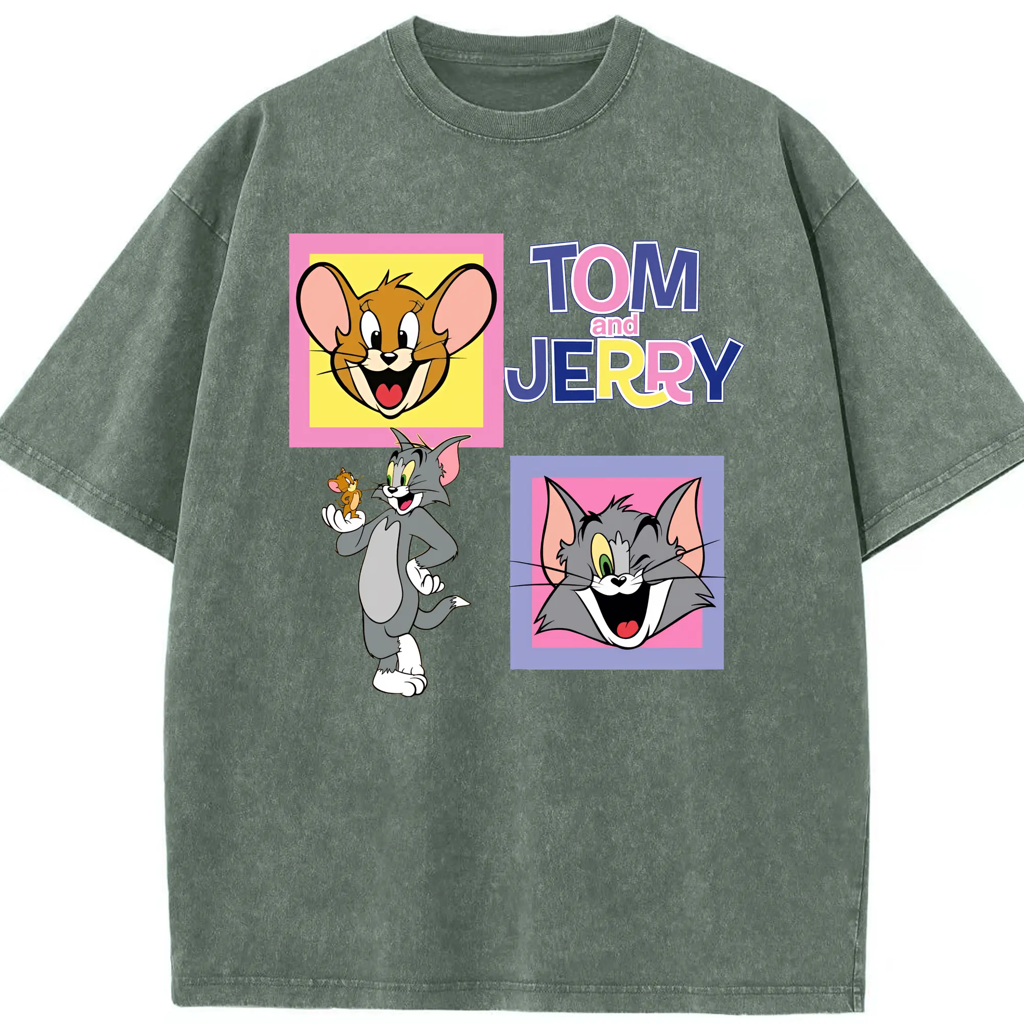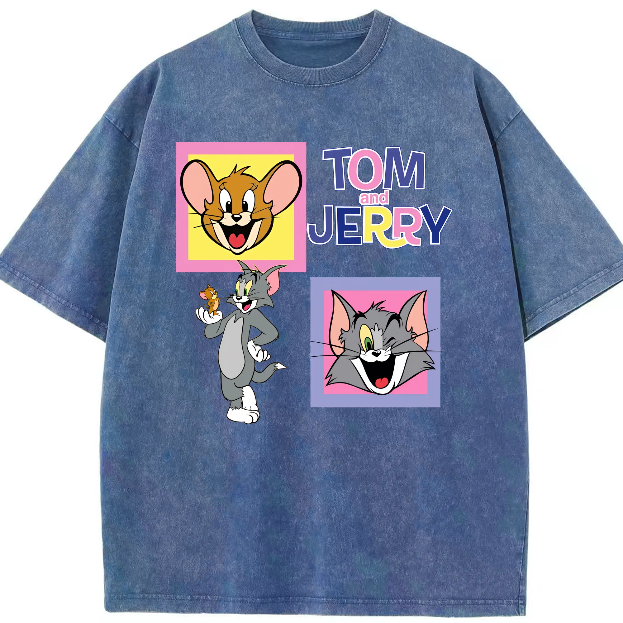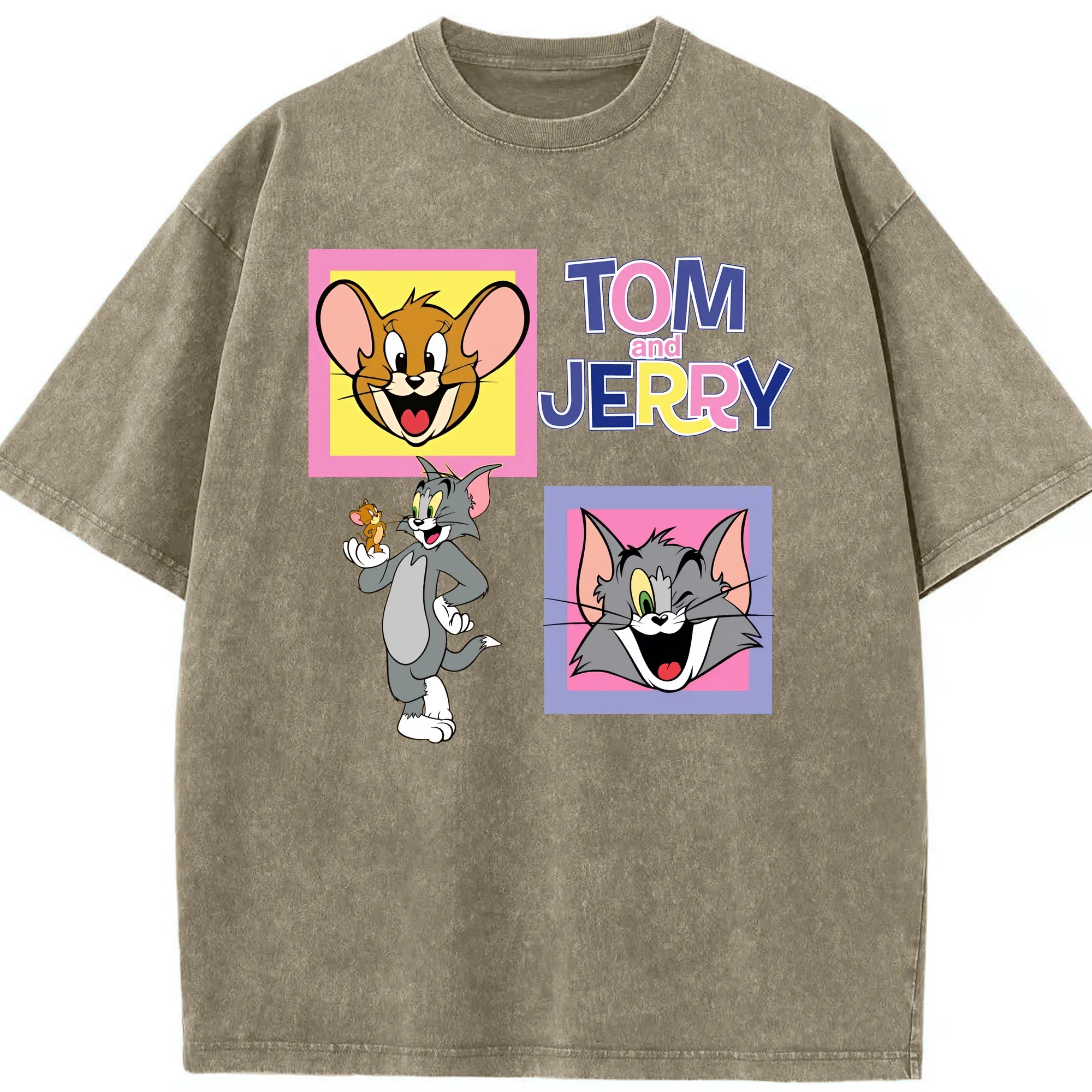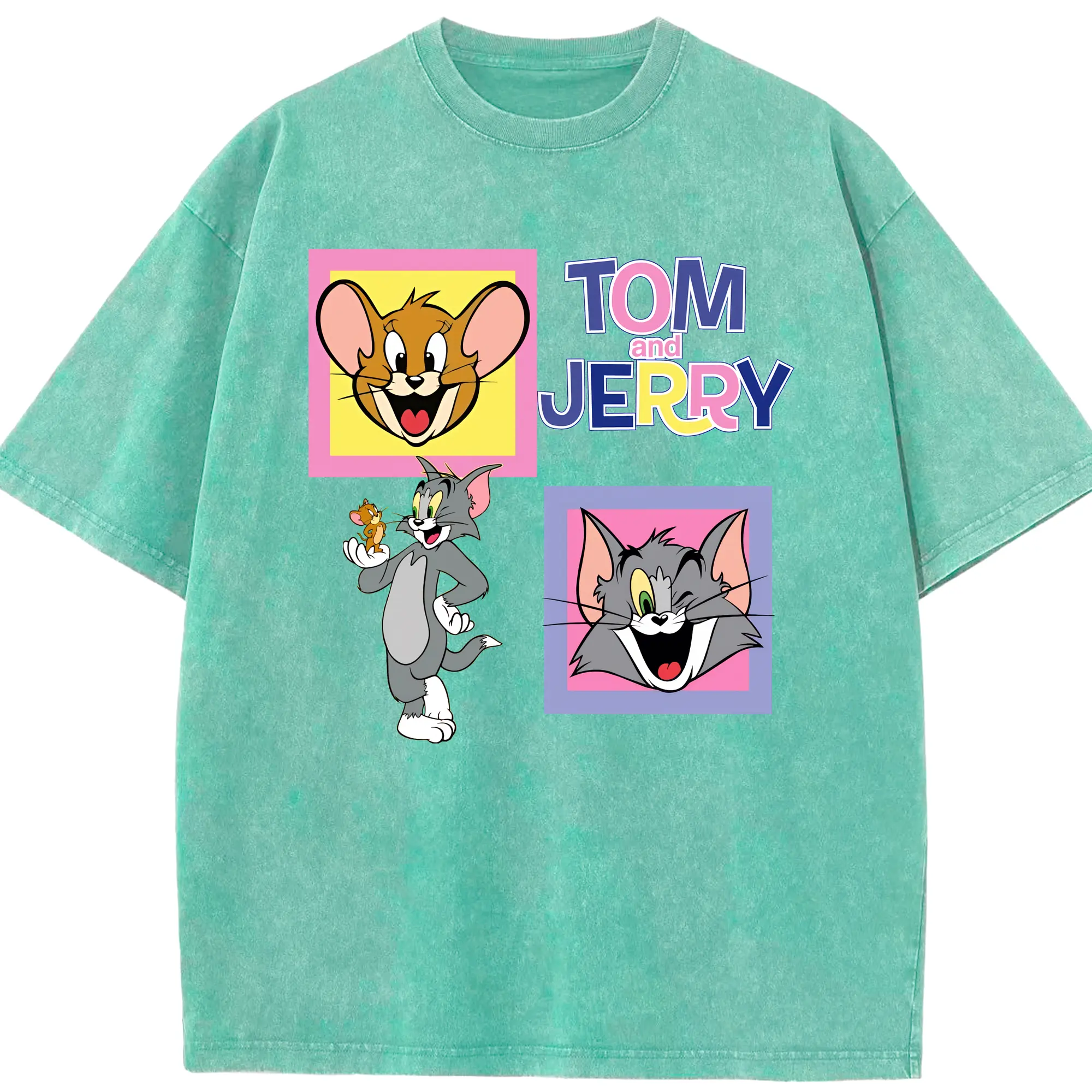 トムとジェリー グッズ ジェリー - 綿100% ヴィンテージ風 半袖Tシャツ ・ 背面プリント ・ 柔らか肌触り ・ 通気性 快適 ・ スポーツ カジュアル 外出用